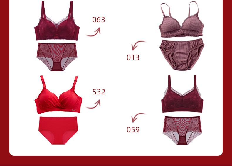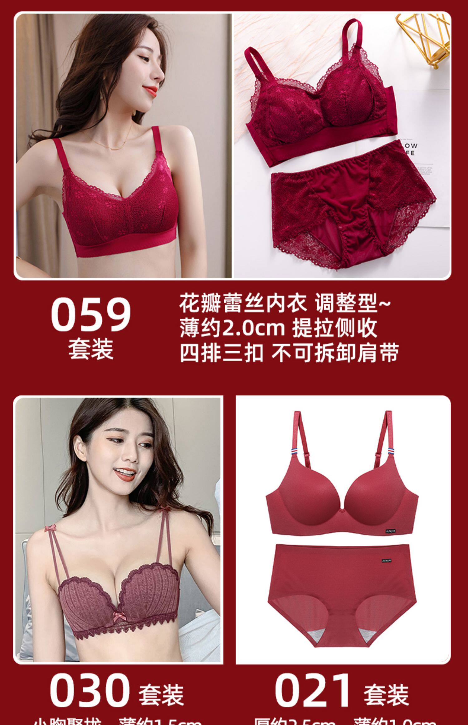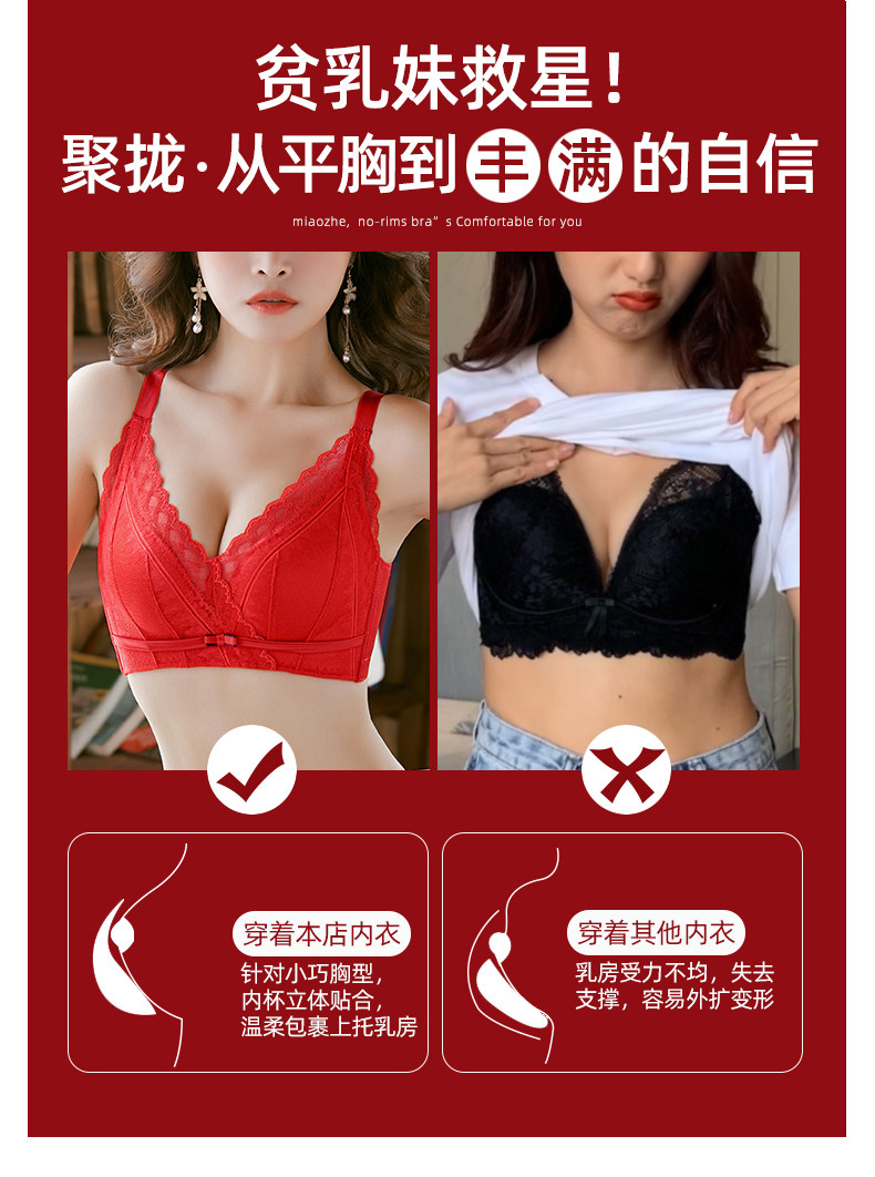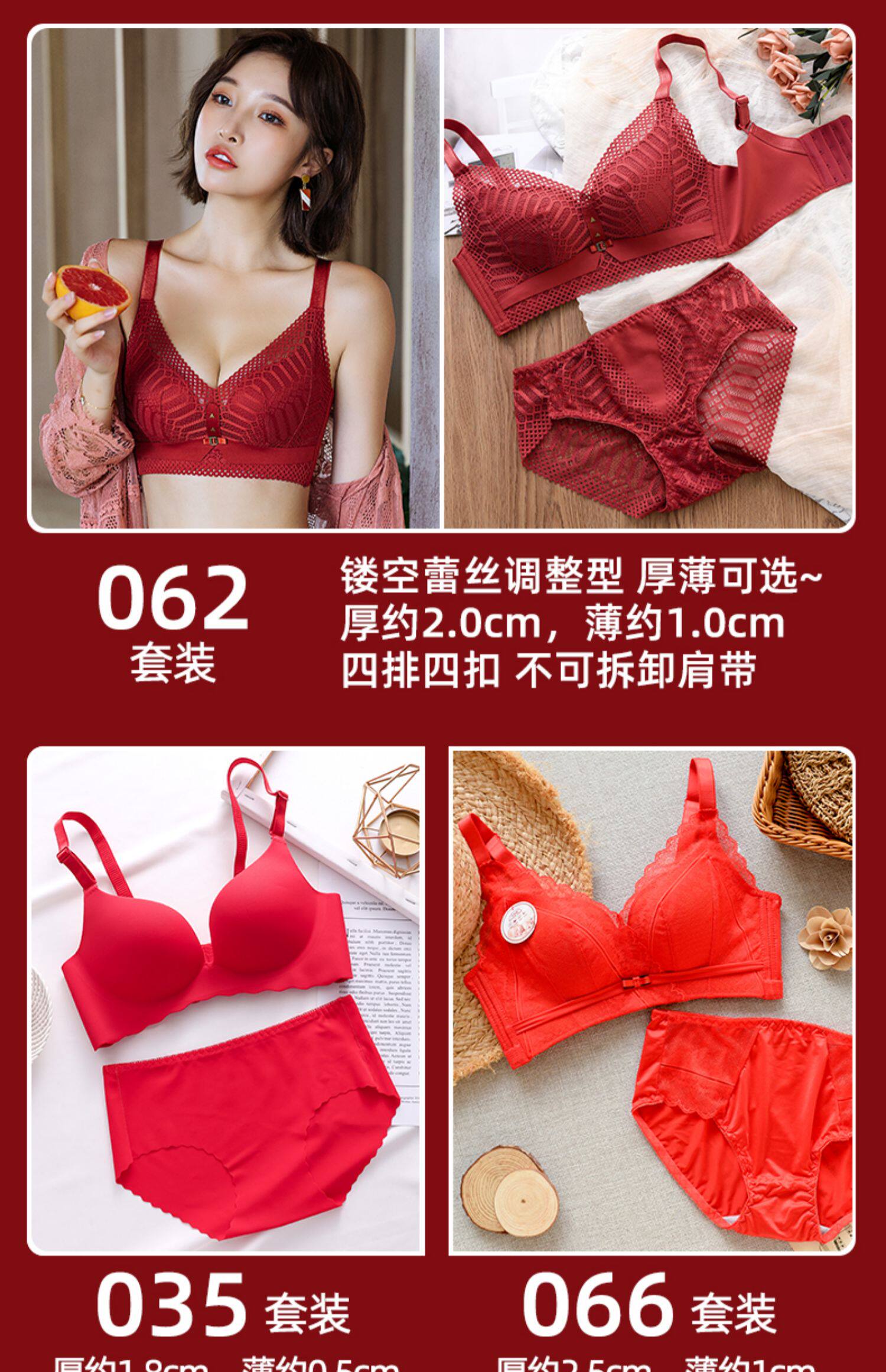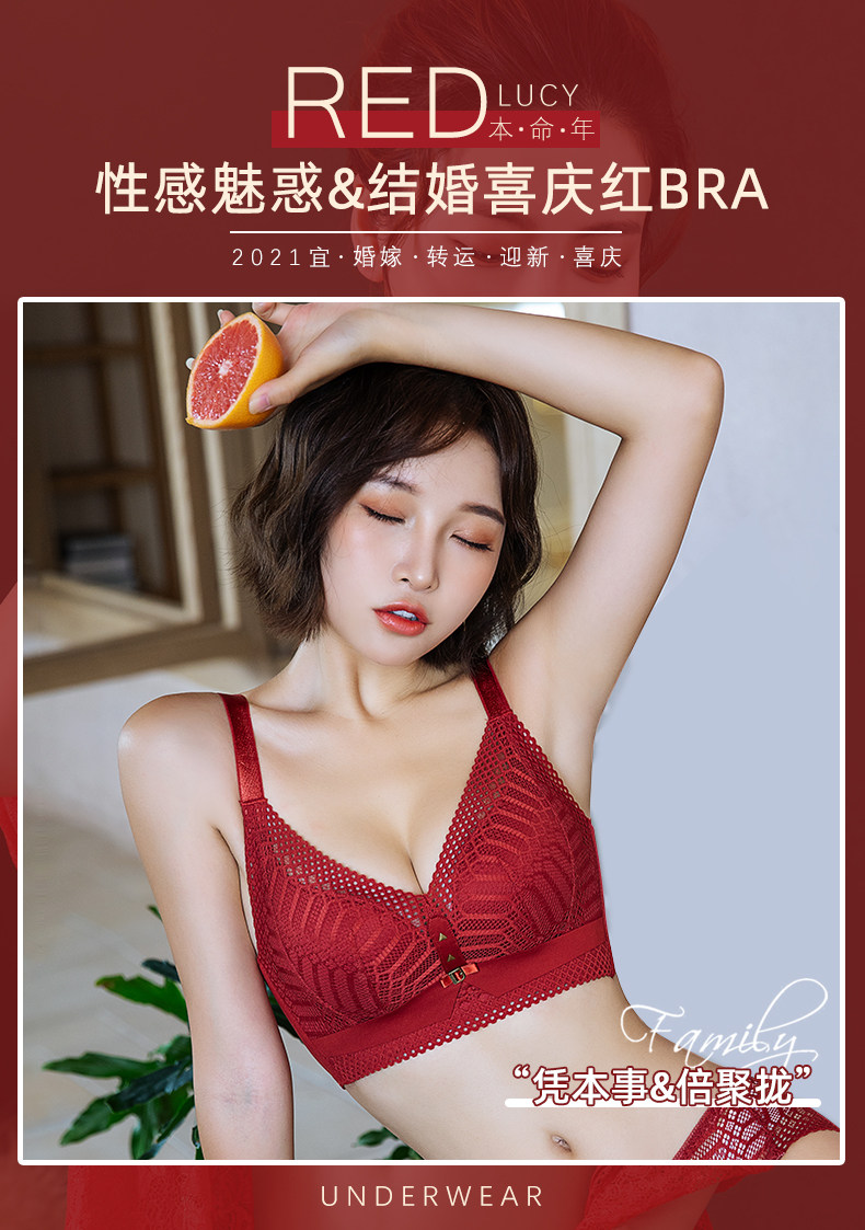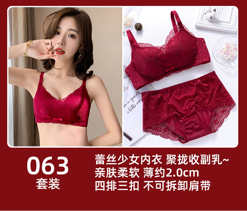 新年紅色內衣女小胸聚攏本命年兔胸罩結婚新娘無鋼圈文胸內褲套裝