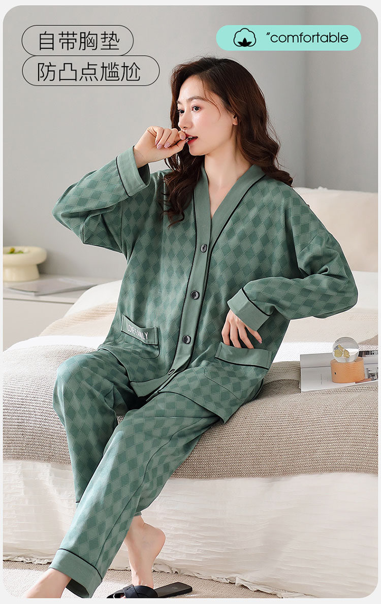 超大號長袖睡衣女200斤6XL胖MM免穿文胸有胸墊純棉加肥家居服秋季