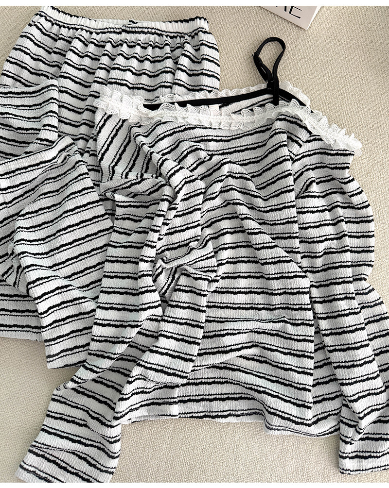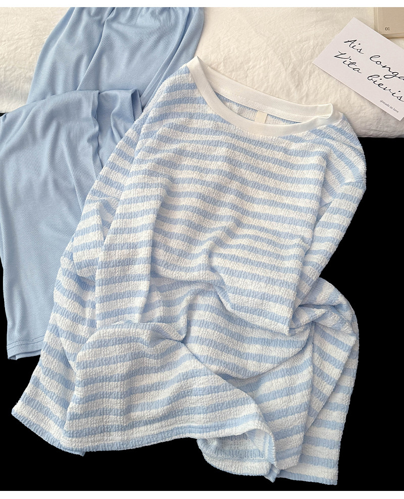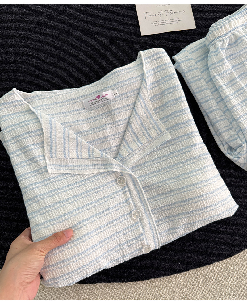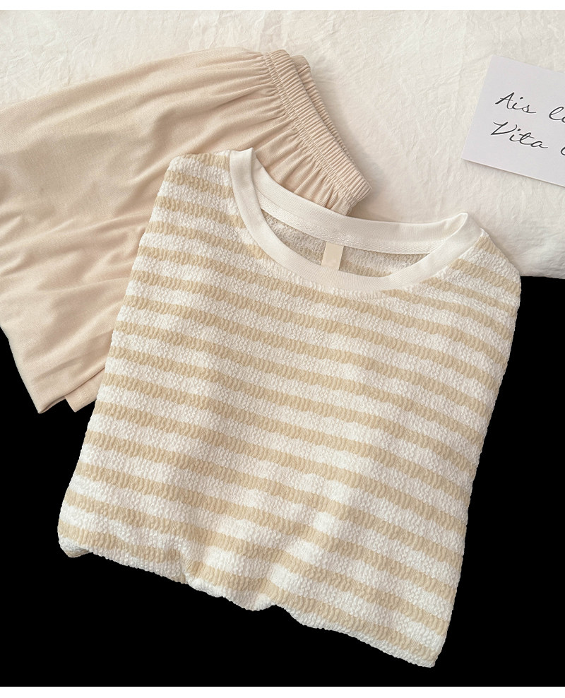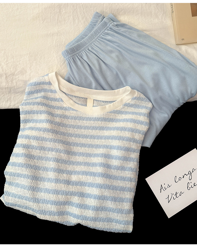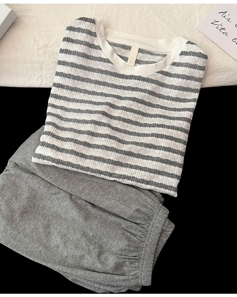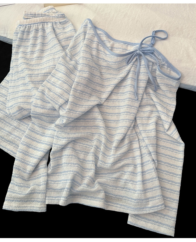 莫代爾棉睡衣女款春秋季韓系ins小清新條紋長袖長褲家居服可外穿