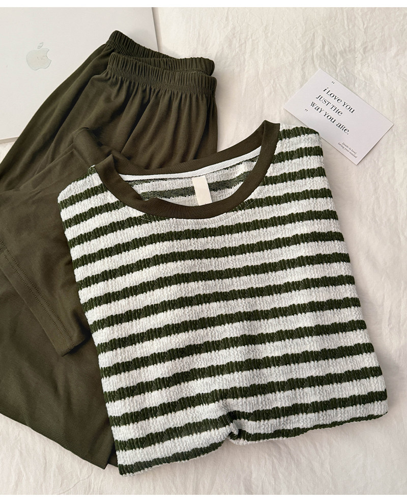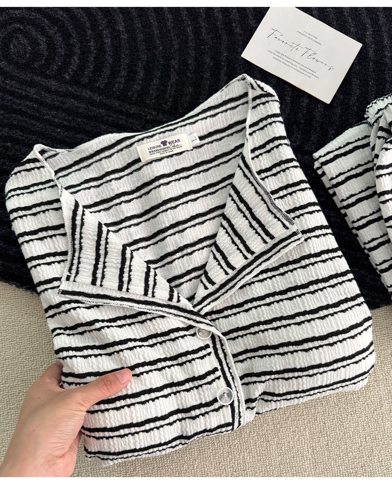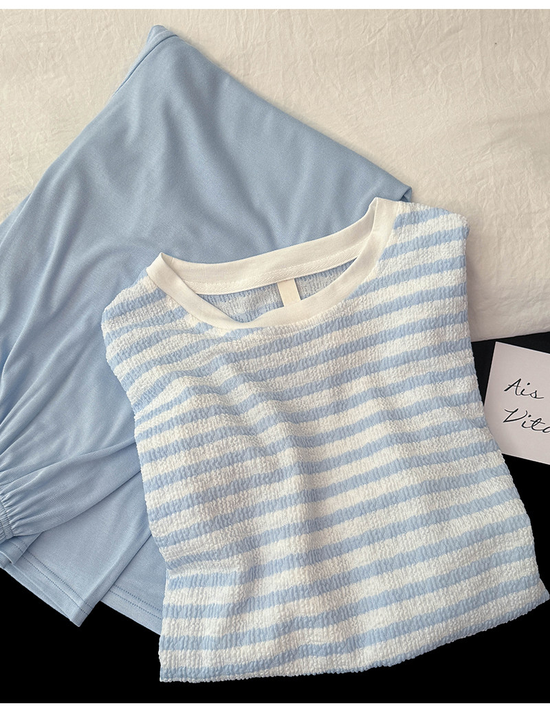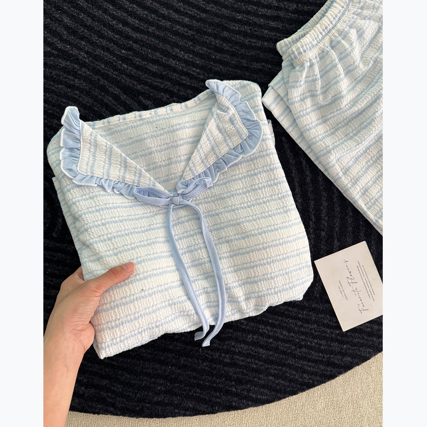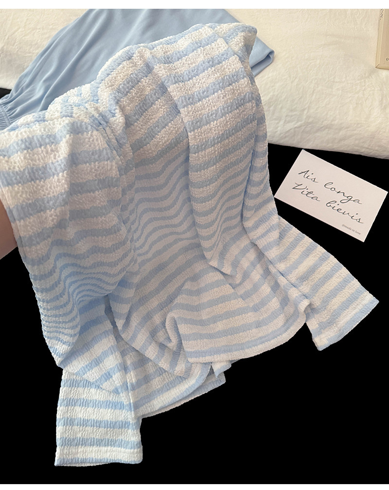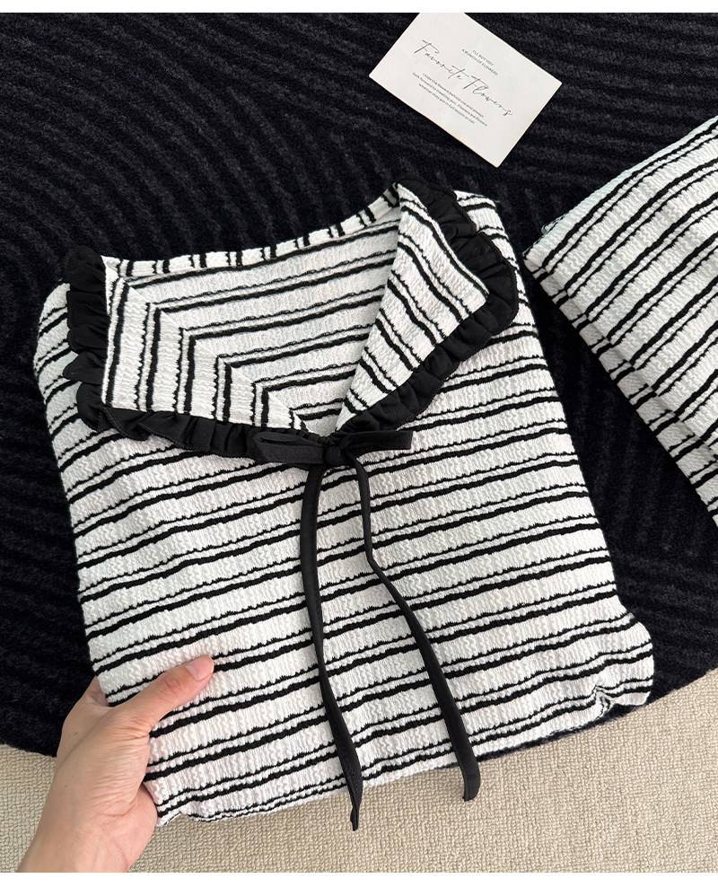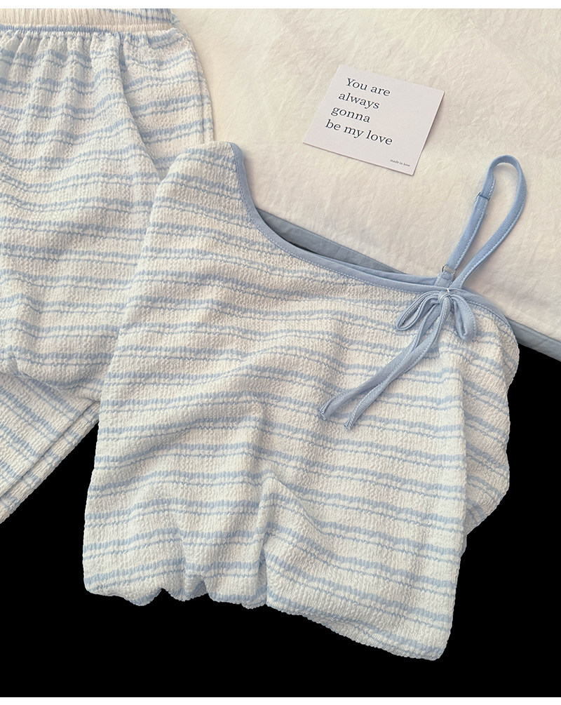 莫代爾棉睡衣女款春秋季韓系ins小清新條紋長袖長褲家居服可外穿