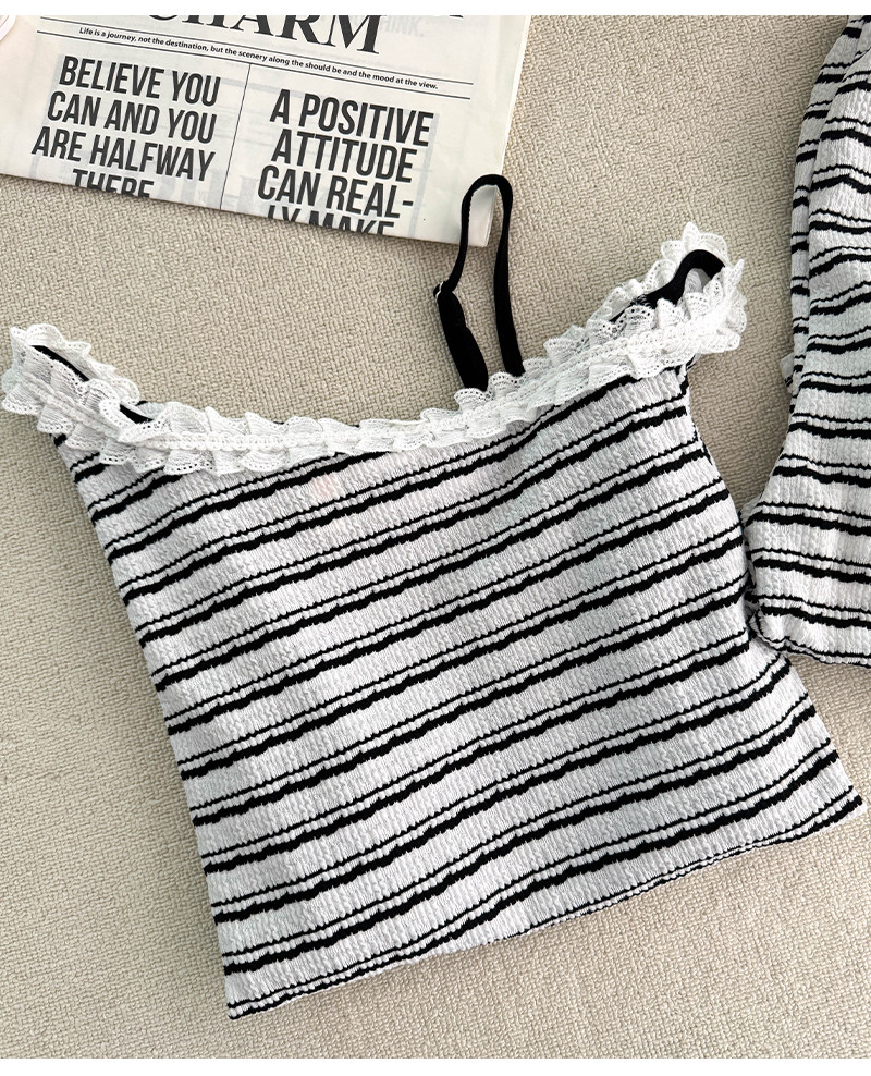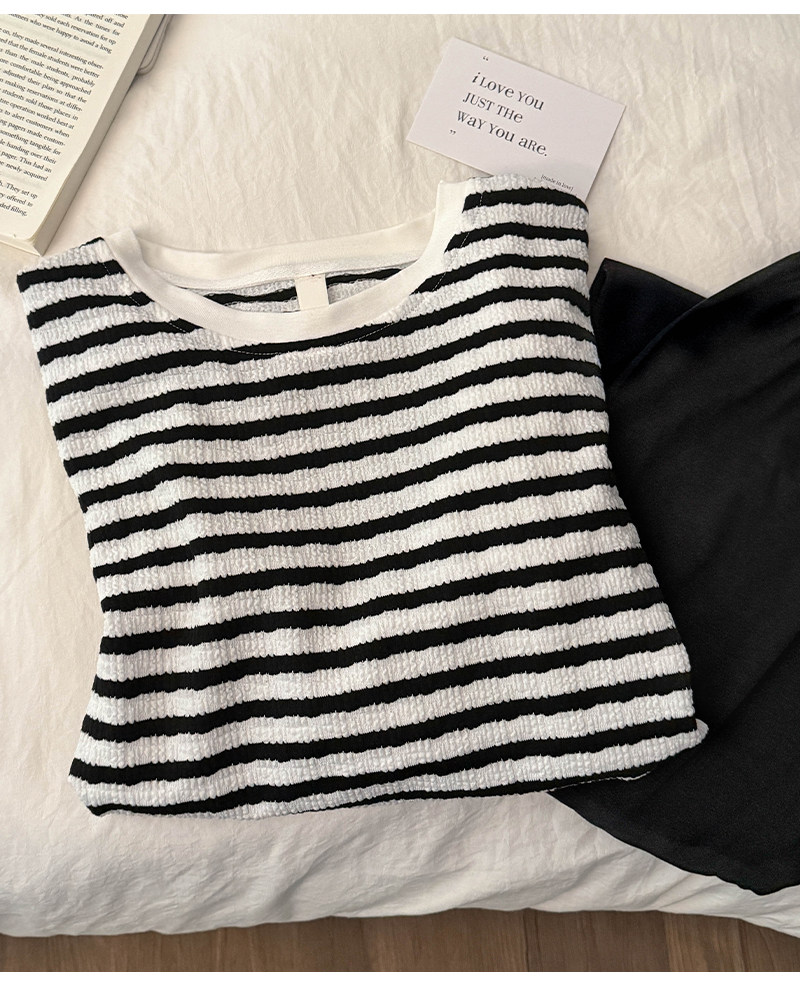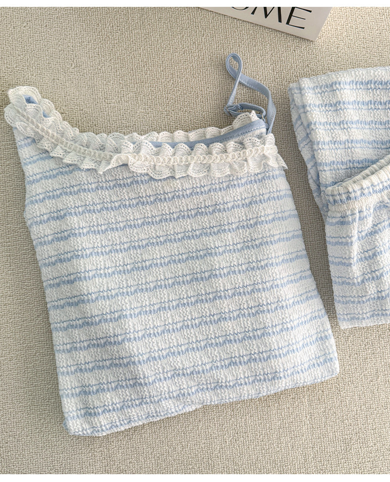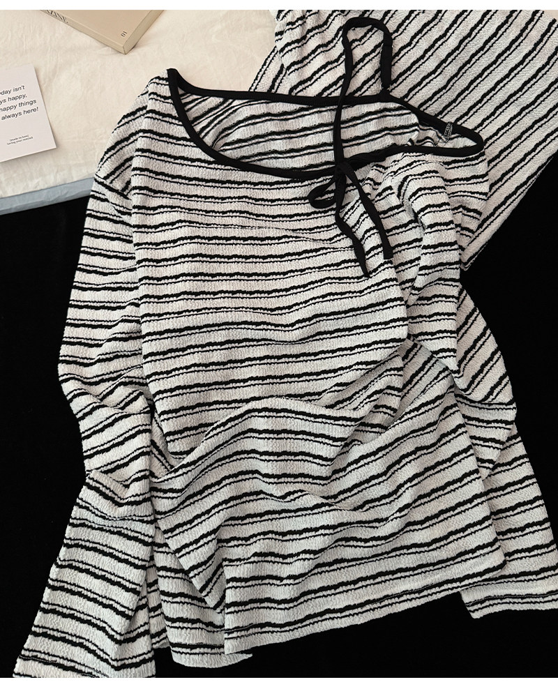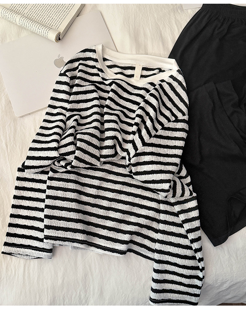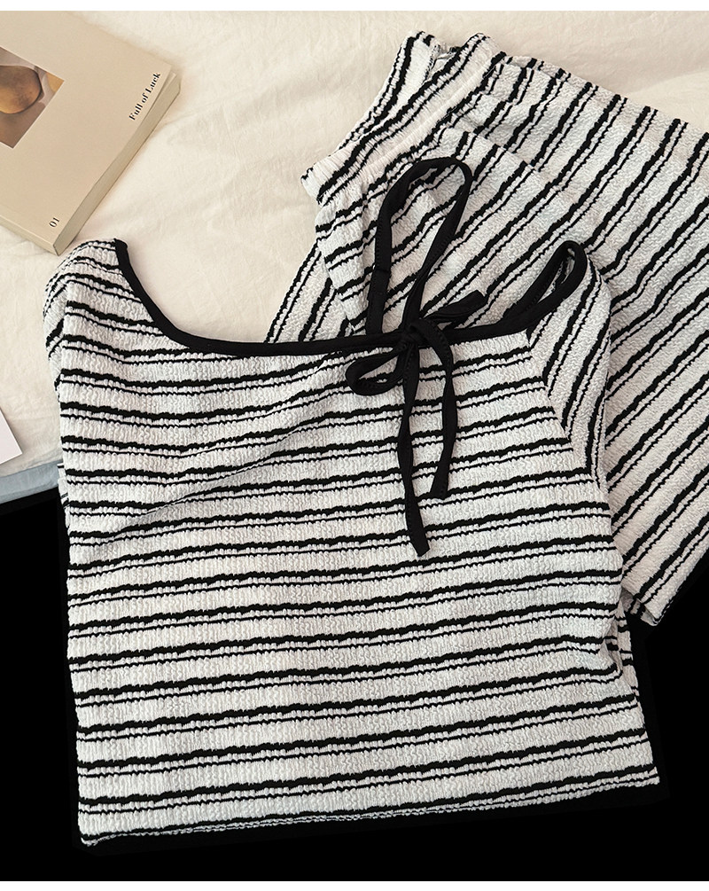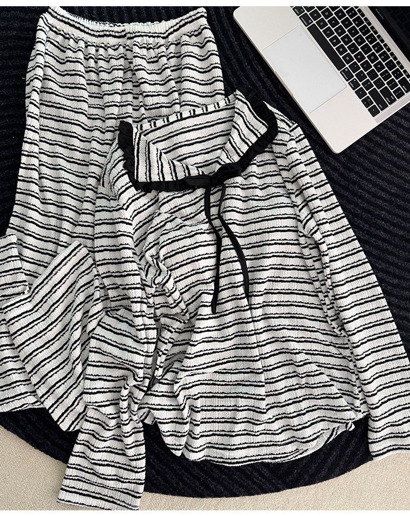 莫代爾棉睡衣女款春秋季韓系ins小清新條紋長袖長褲家居服可外穿