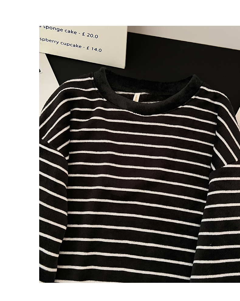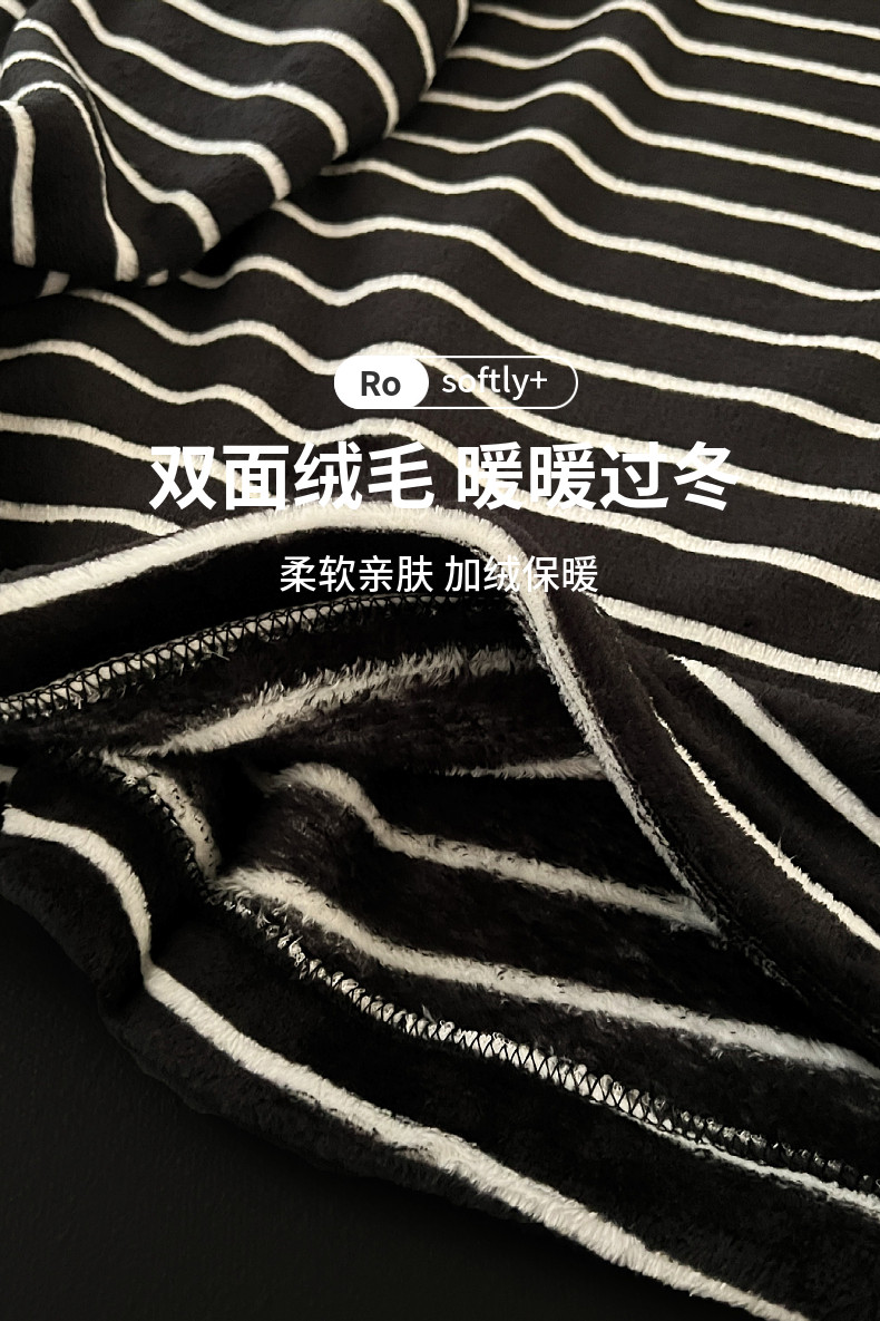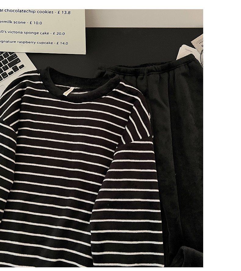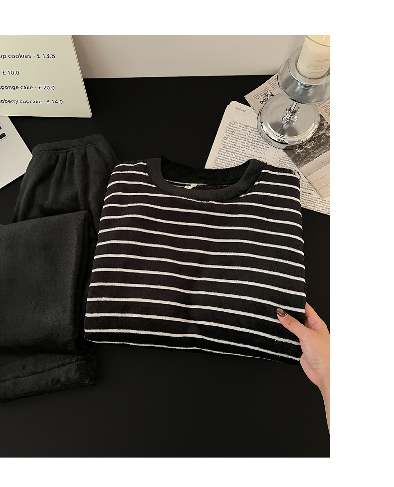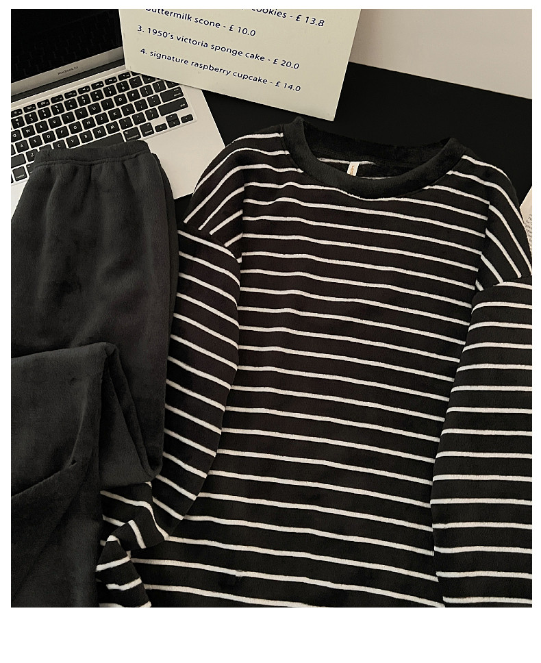 珊瑚絨情侶睡衣秋冬季加絨保暖男士女條紋可外穿法蘭絨家居服套裝