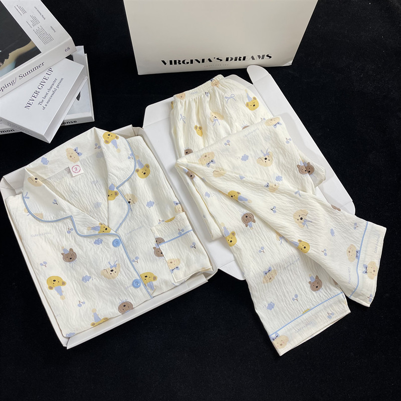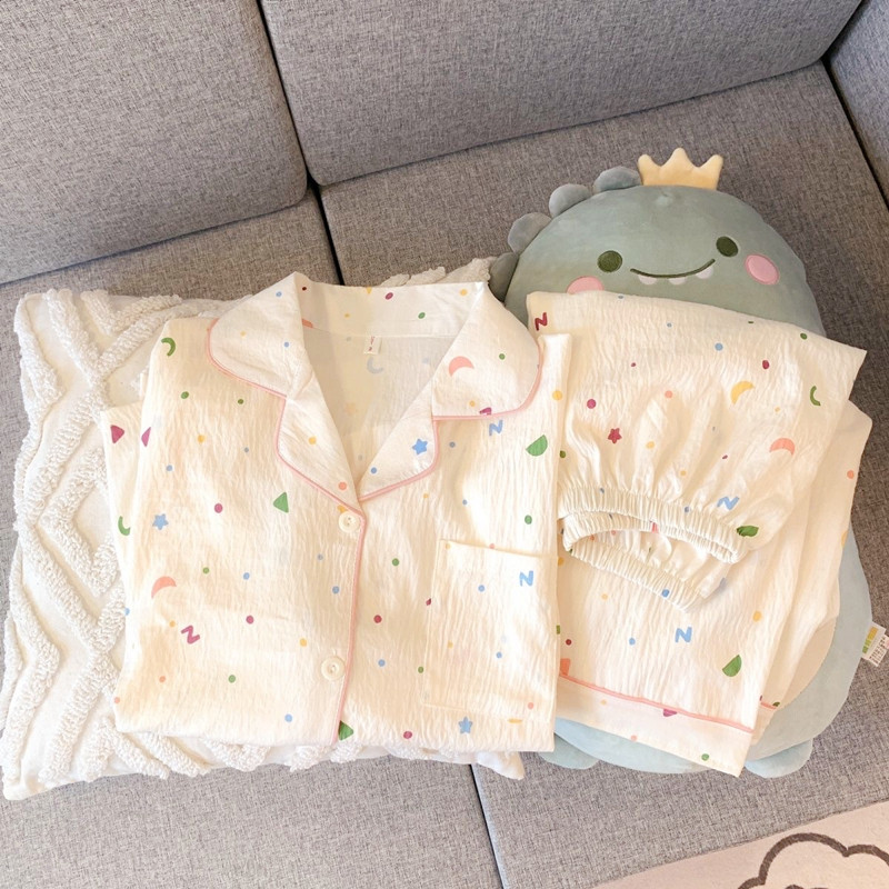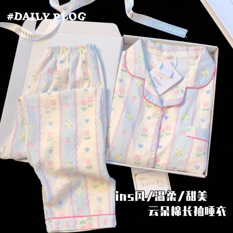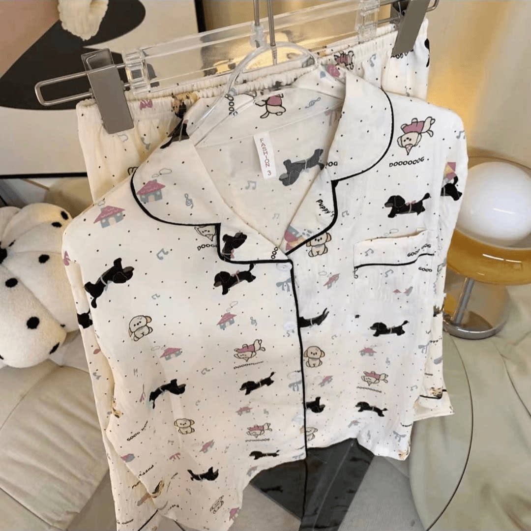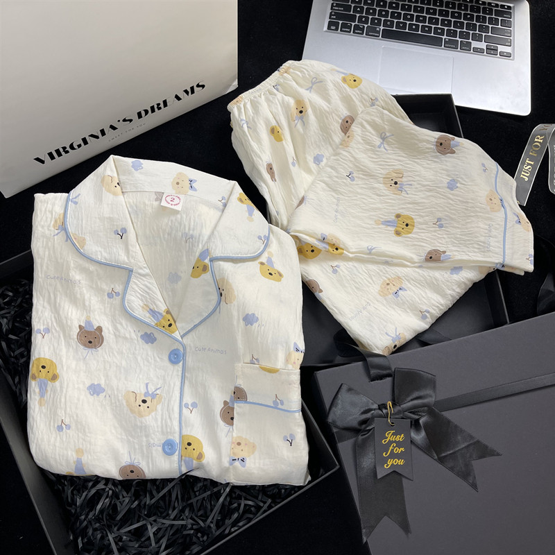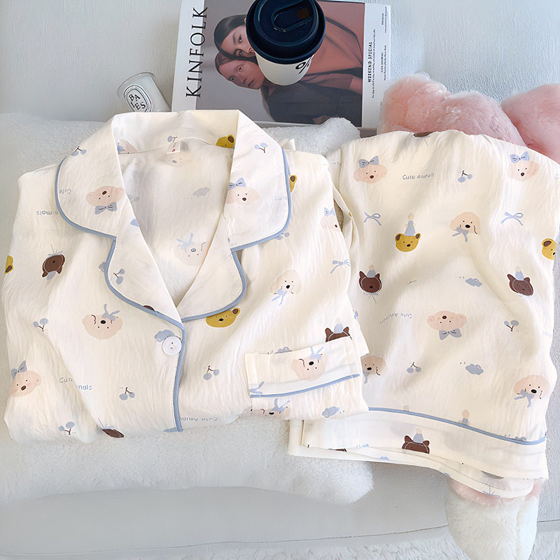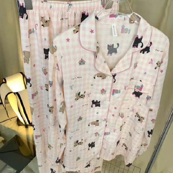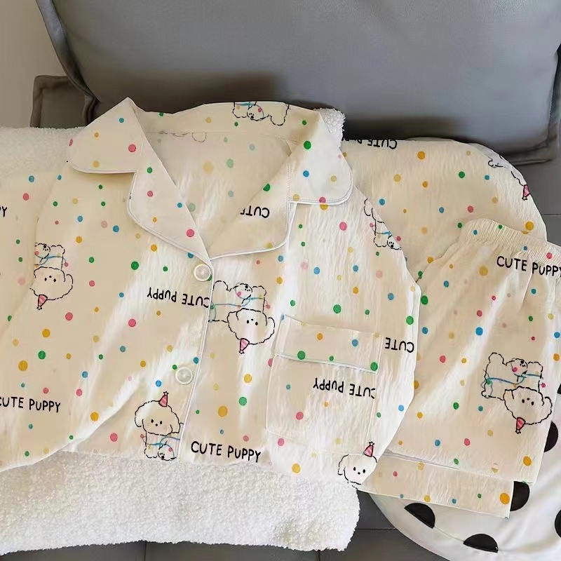 2025年新款睡衣女款春秋季純棉紗布長袖長褲日系ins小狗家居服夏