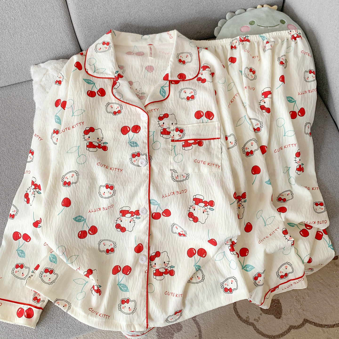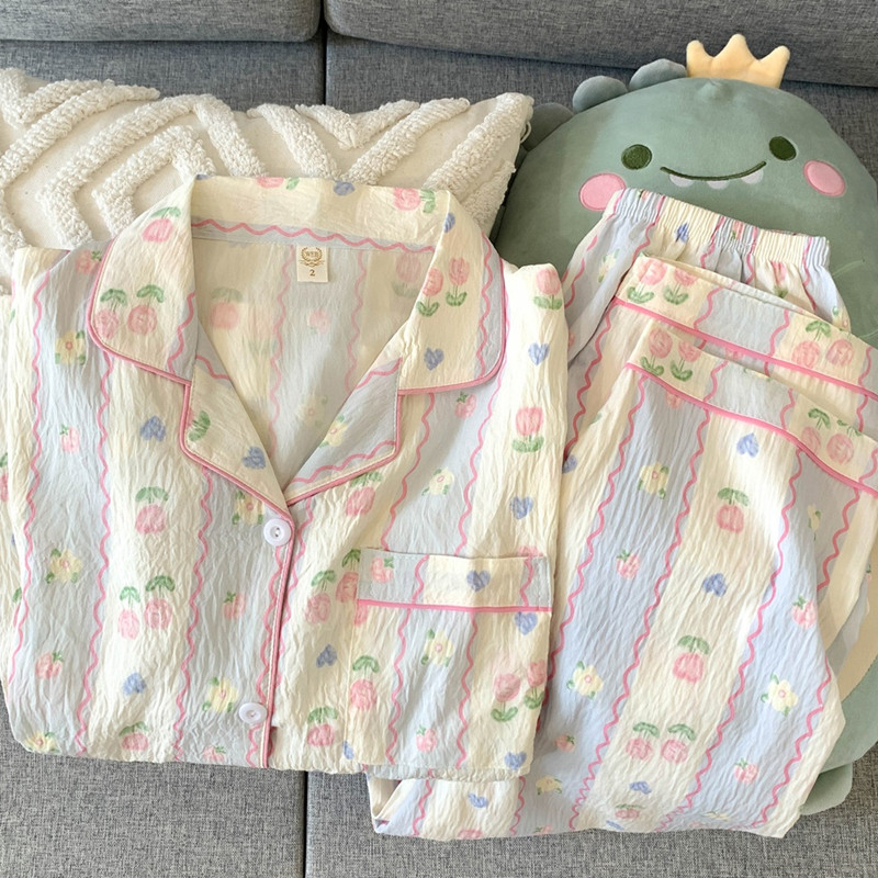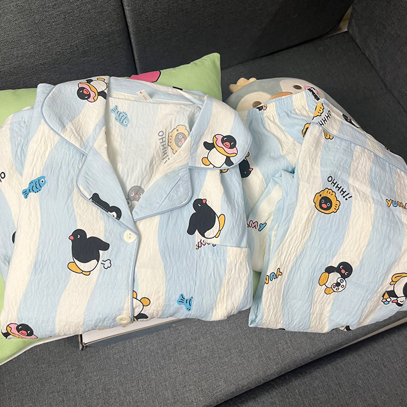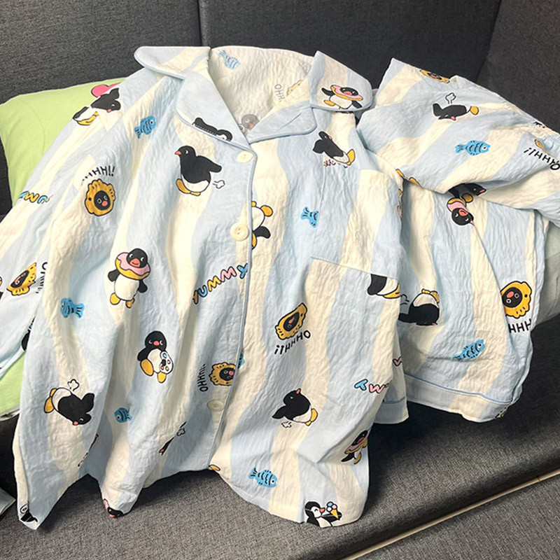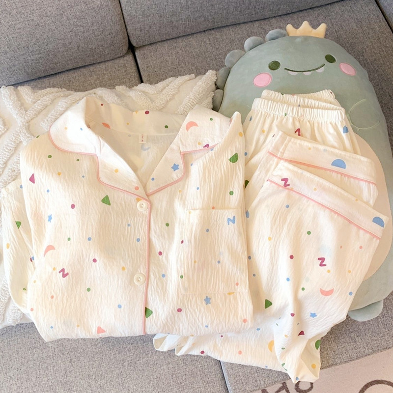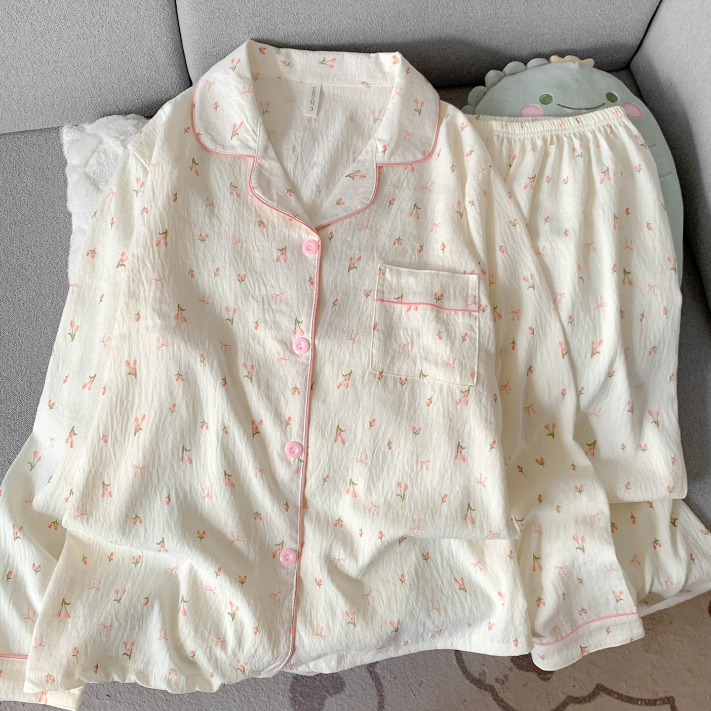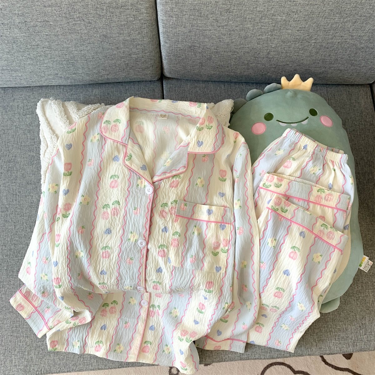 2025年新款睡衣女款春秋季純棉紗布長袖長褲日系ins小狗家居服夏