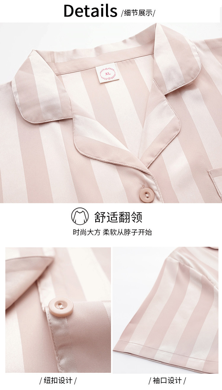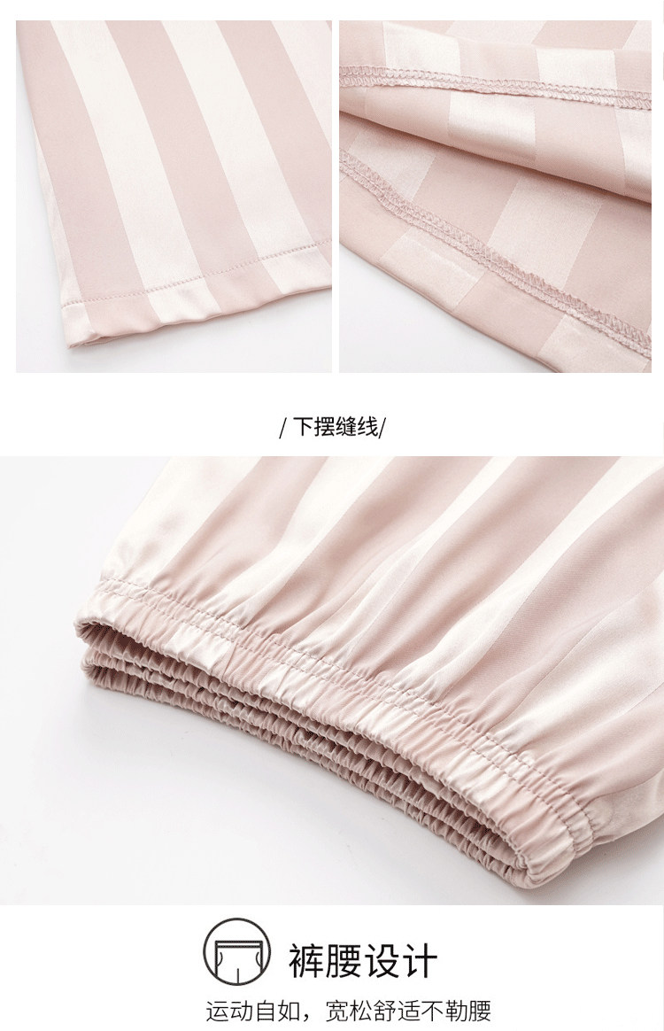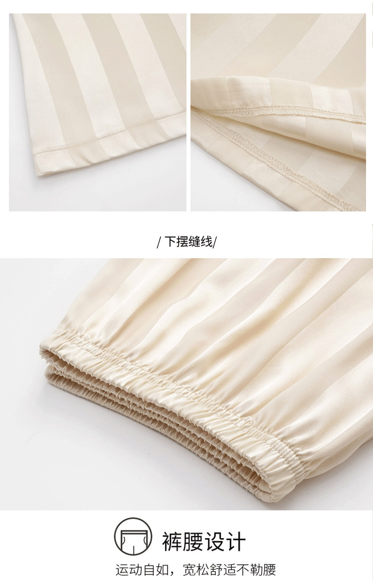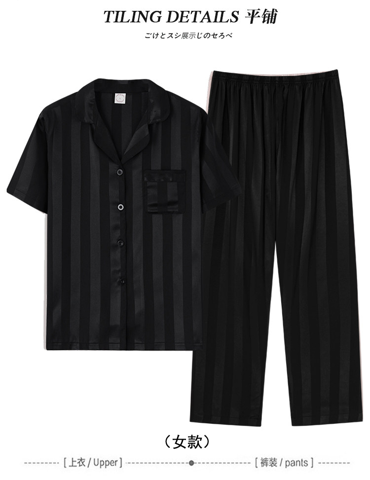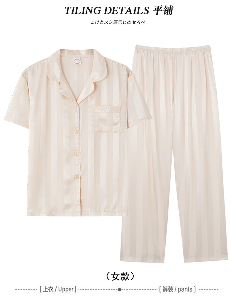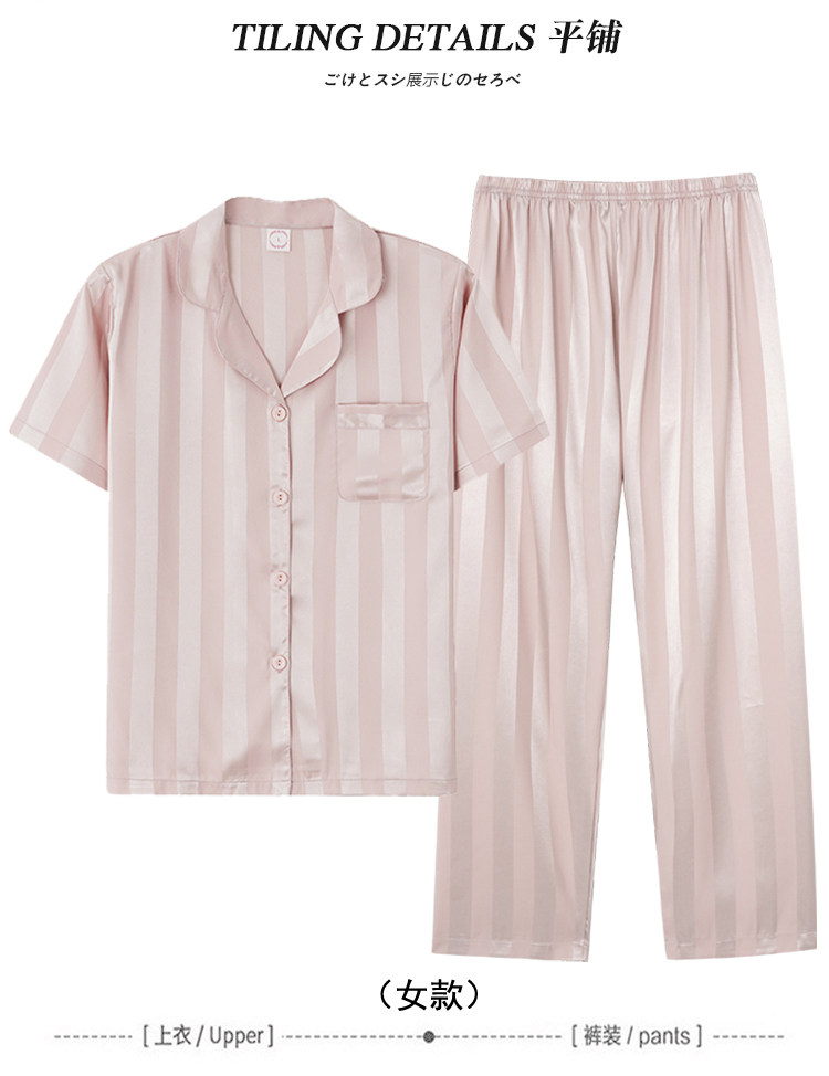 芝桃鳥2026新款冰絲短袖長褲情侶睡衣男士條紋絲綢女款家居服夏季