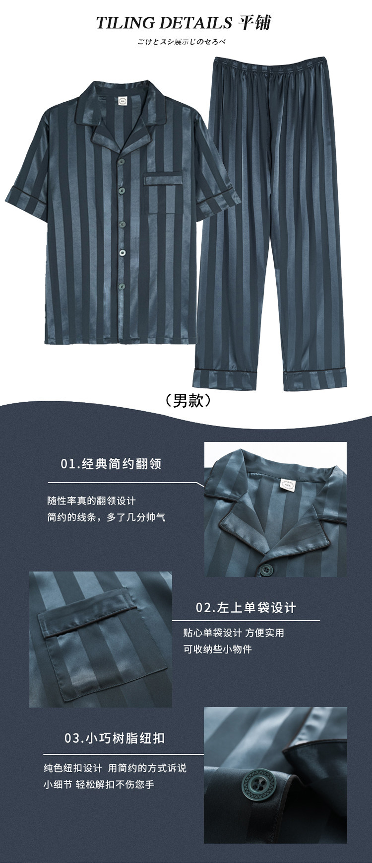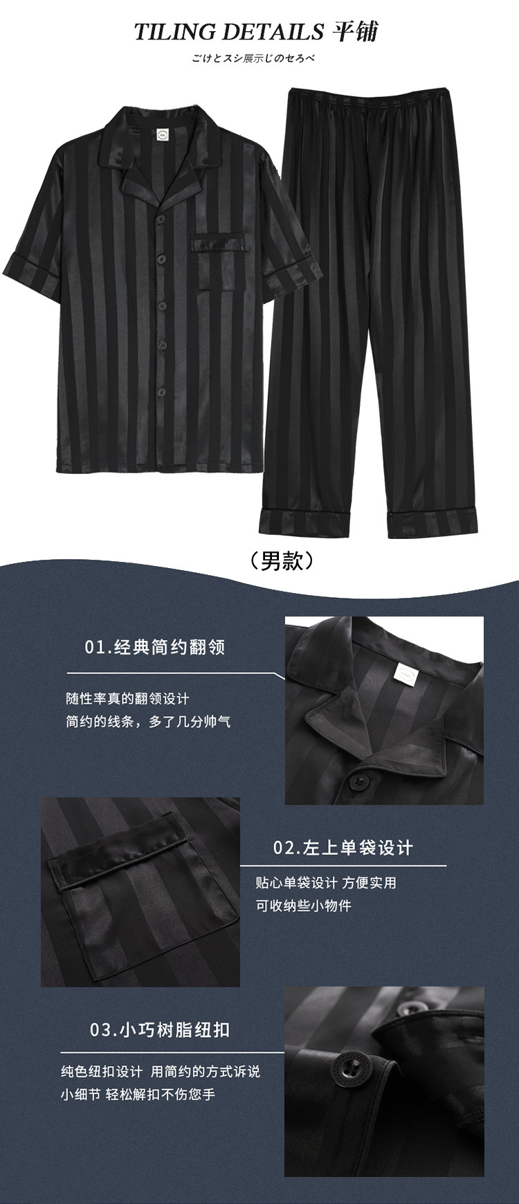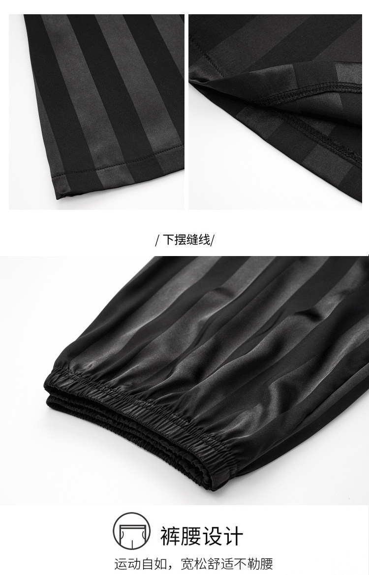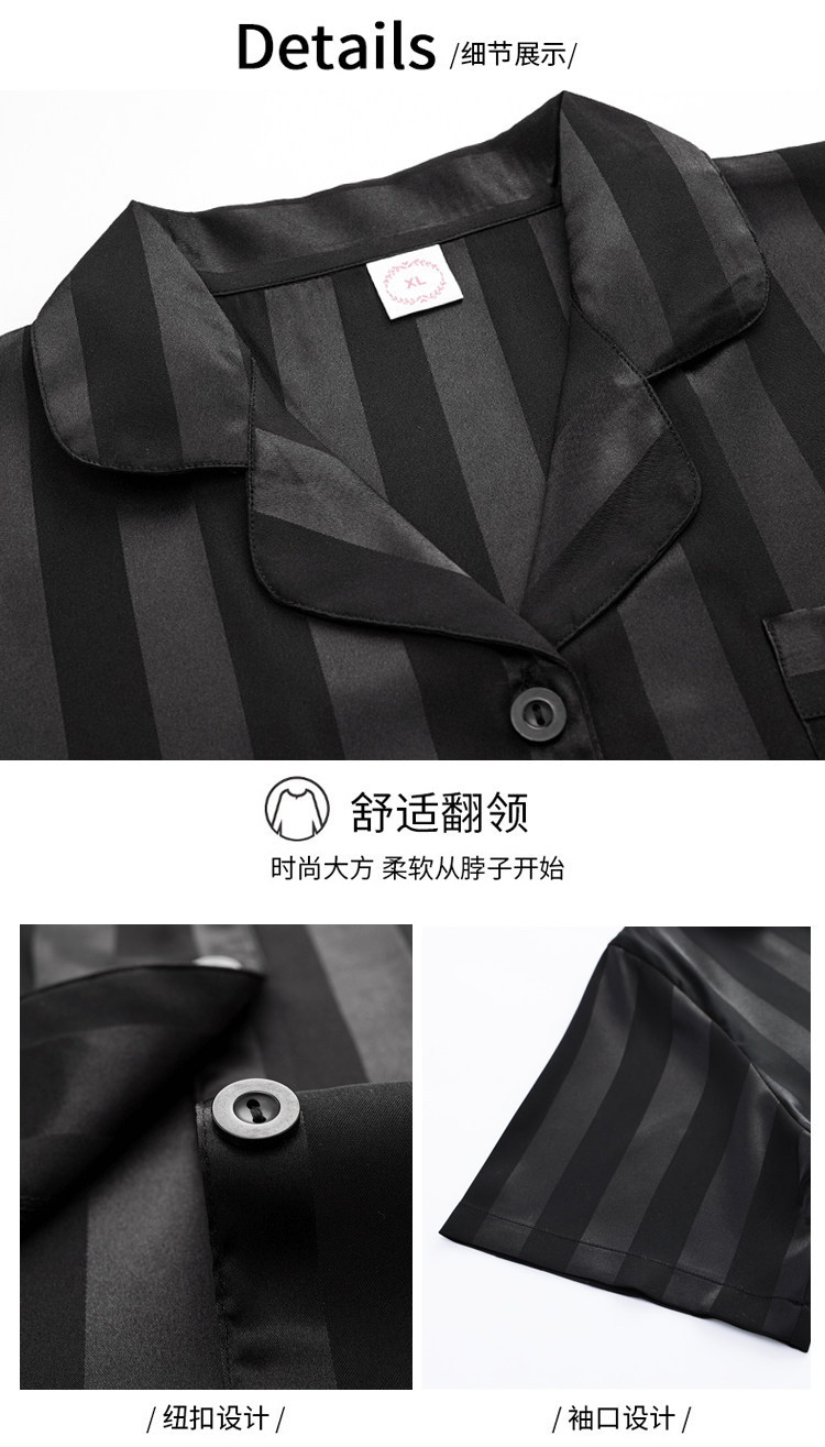 芝桃鳥2026新款冰絲短袖長褲情侶睡衣男士條紋絲綢女款家居服夏季