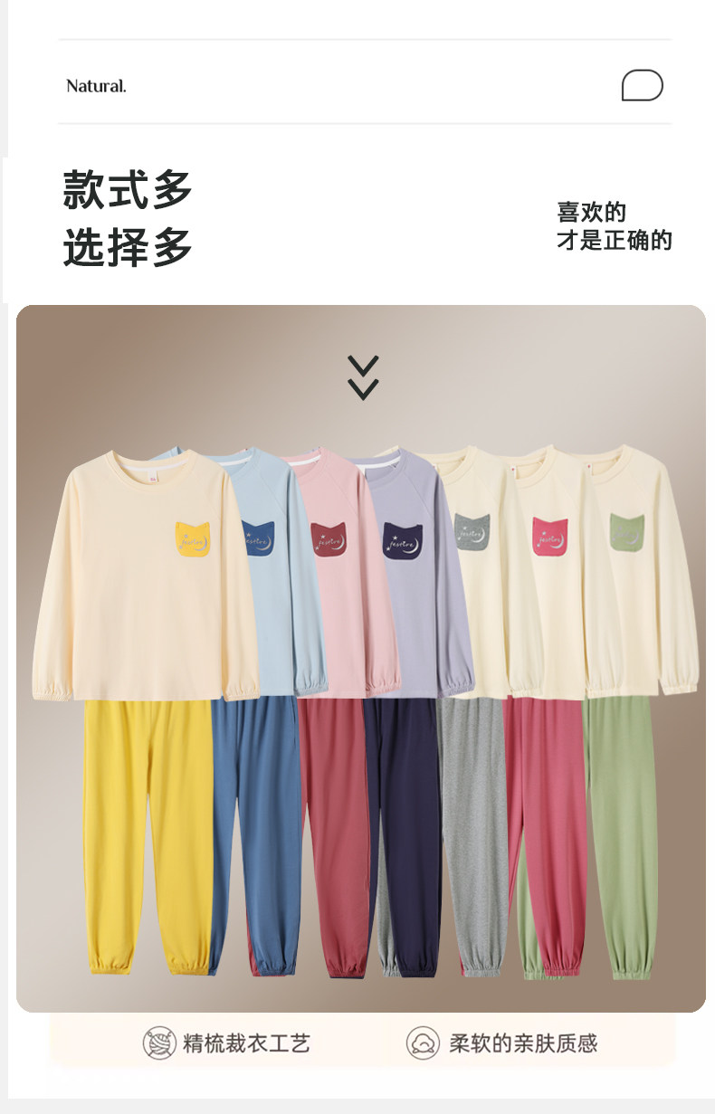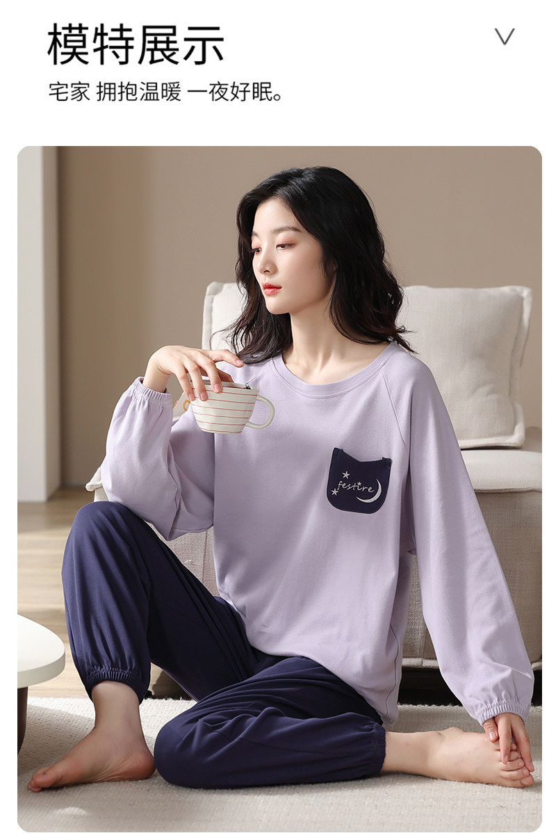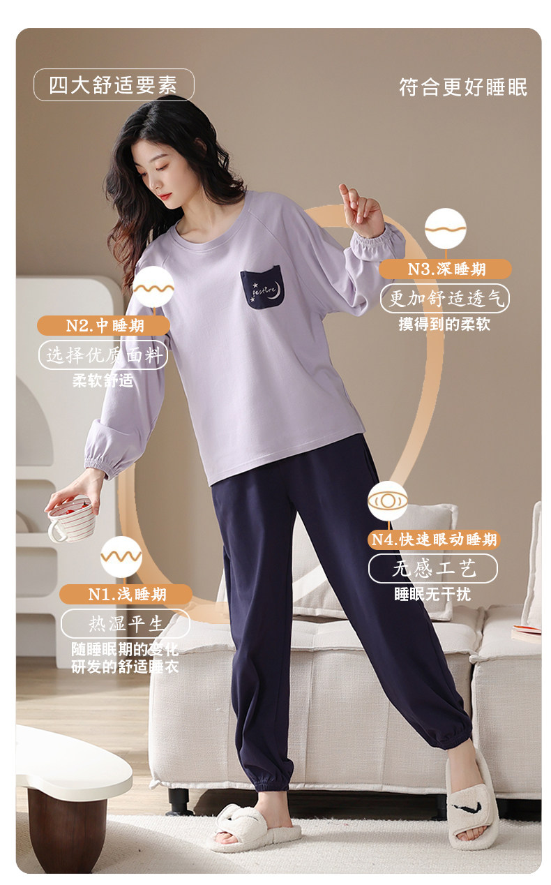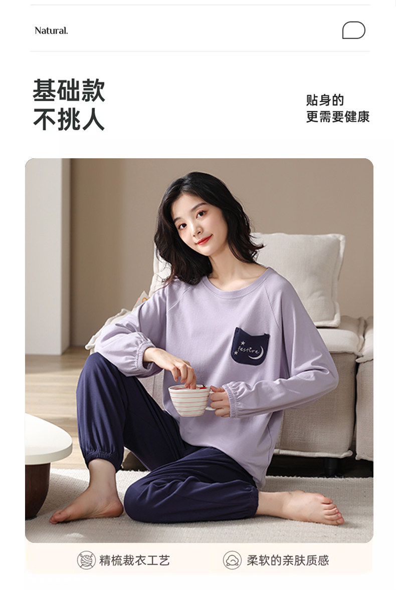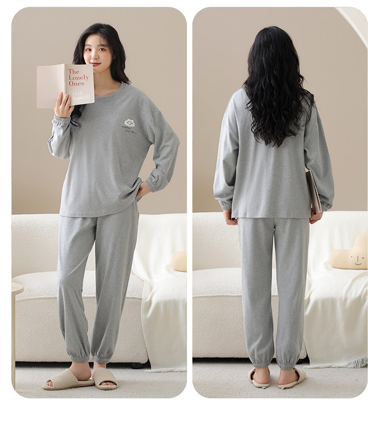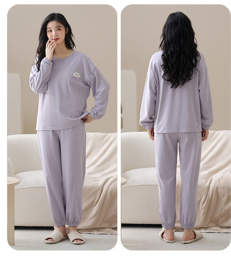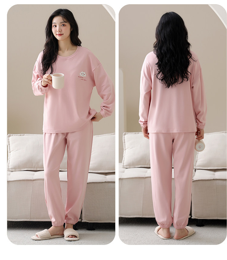 帕蘭朵純棉睡衣女春秋季2025新款全棉長袖圓領束口休閒家居服套裝