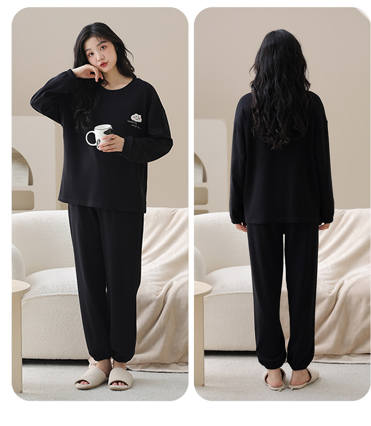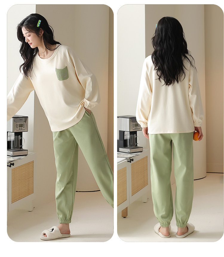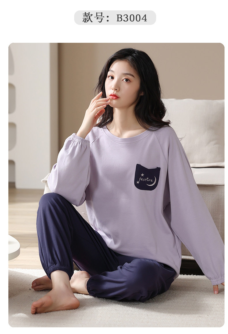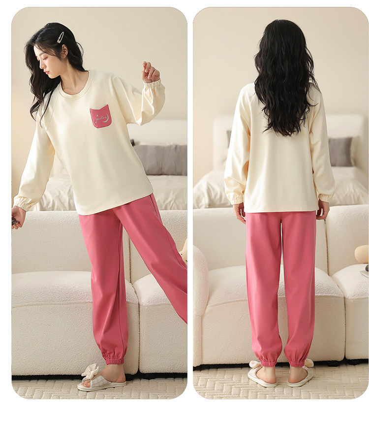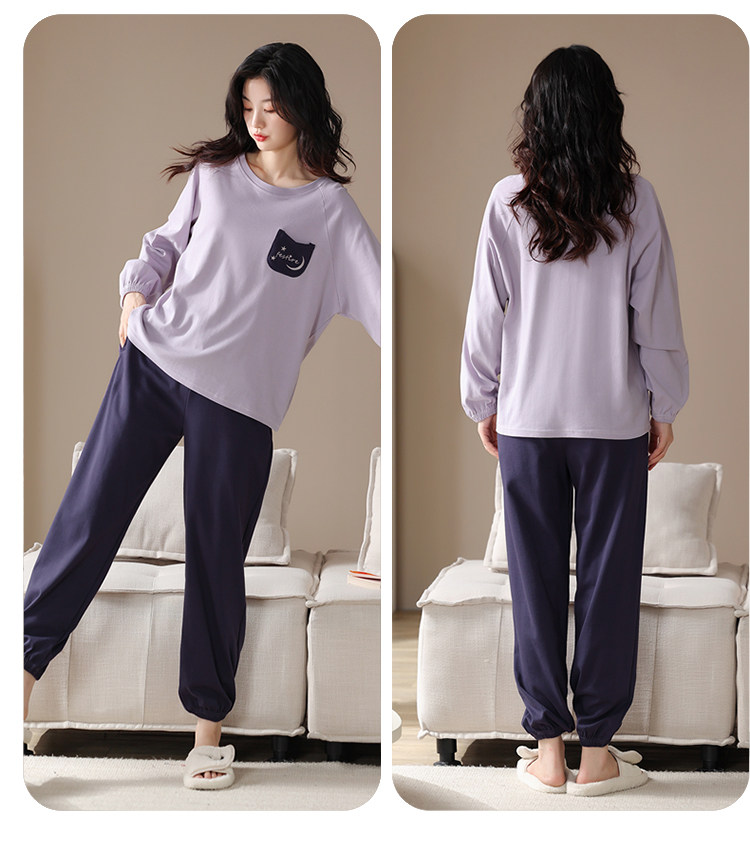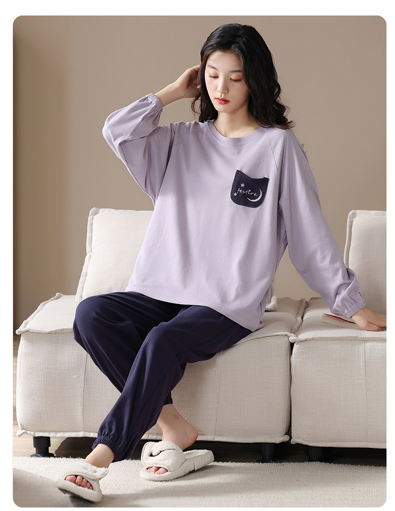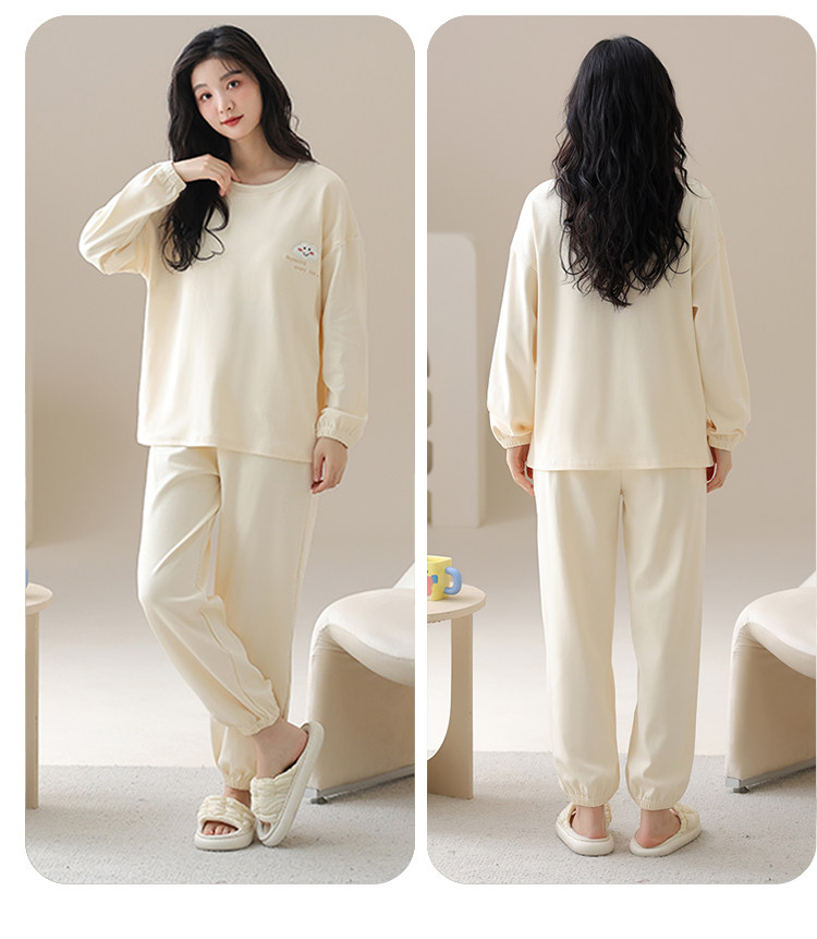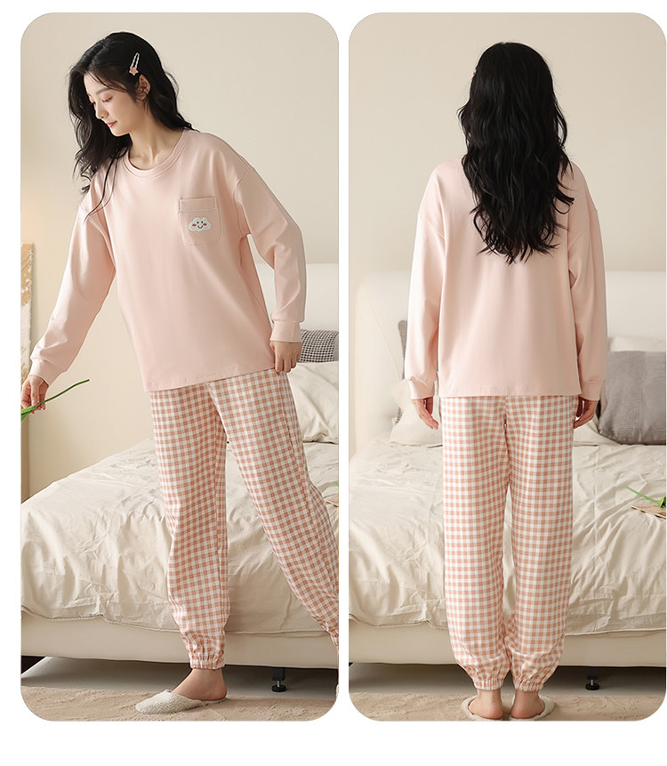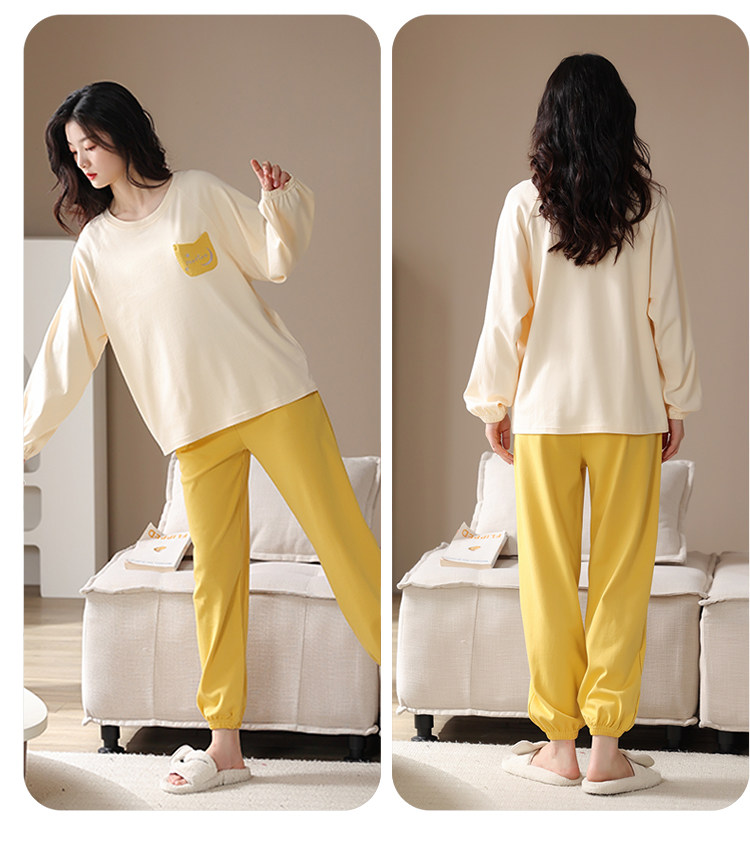 帕蘭朵純棉睡衣女春秋季2025新款全棉長袖圓領束口休閒家居服套裝