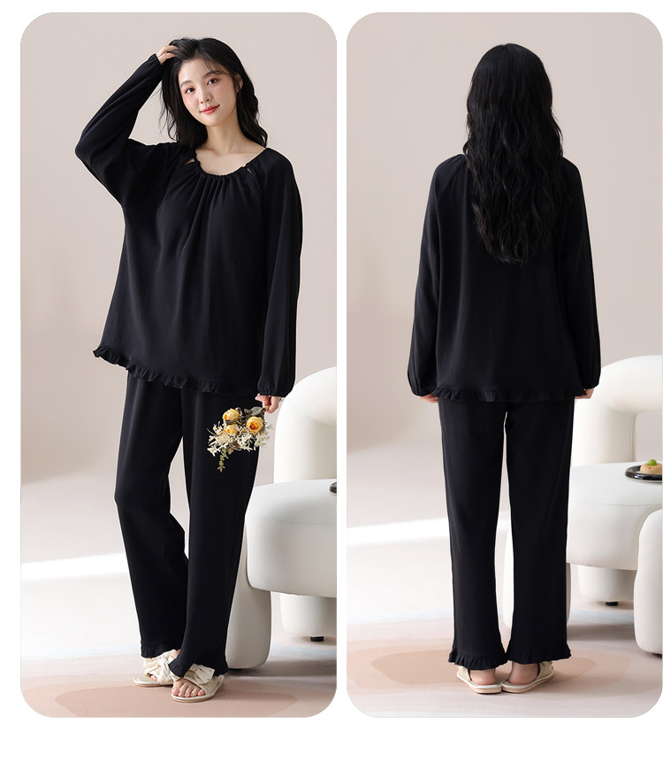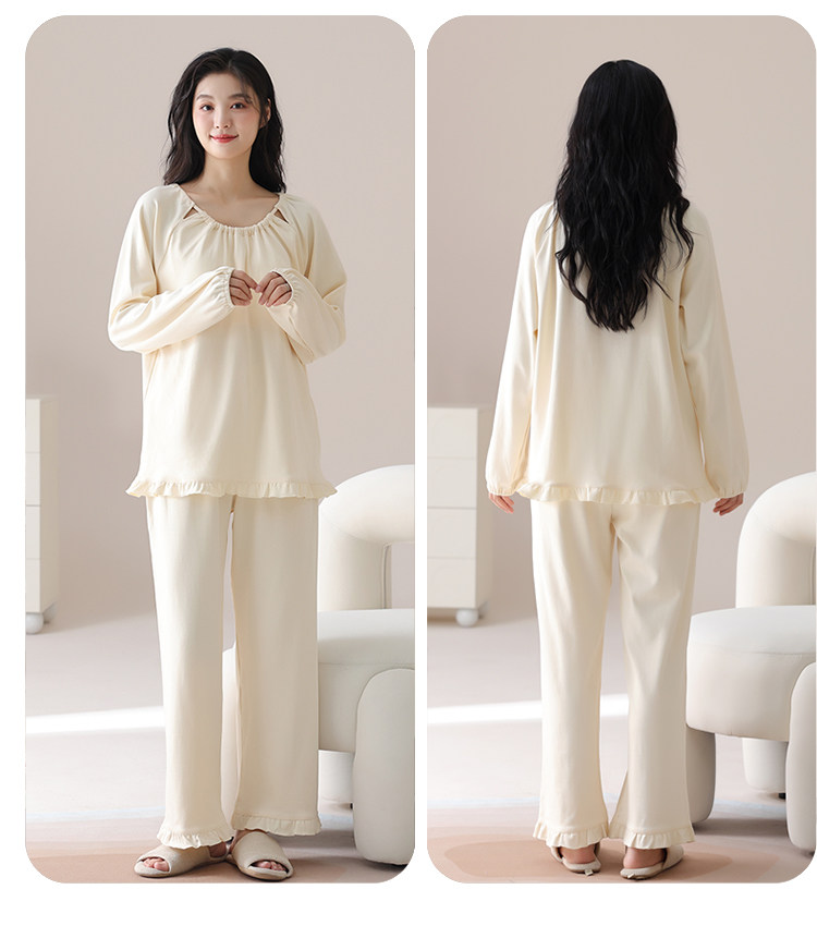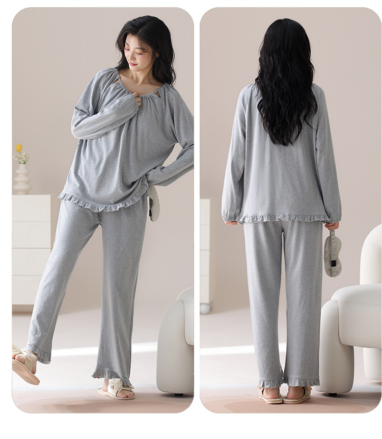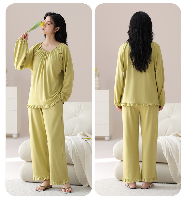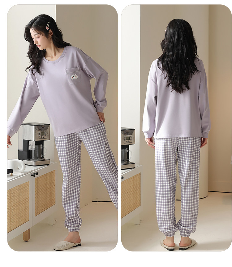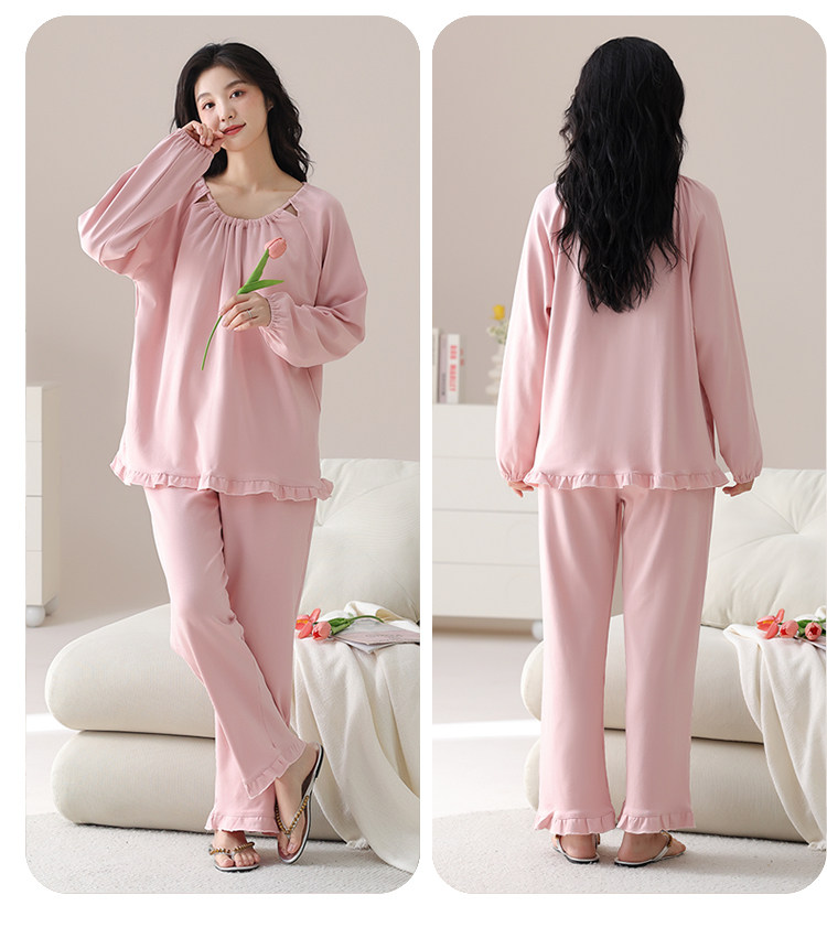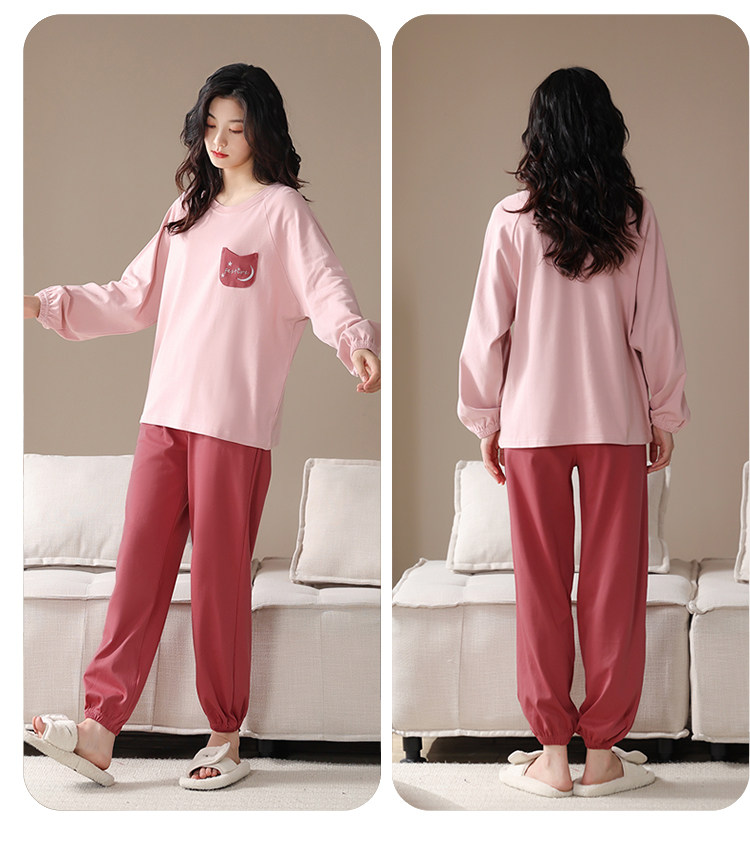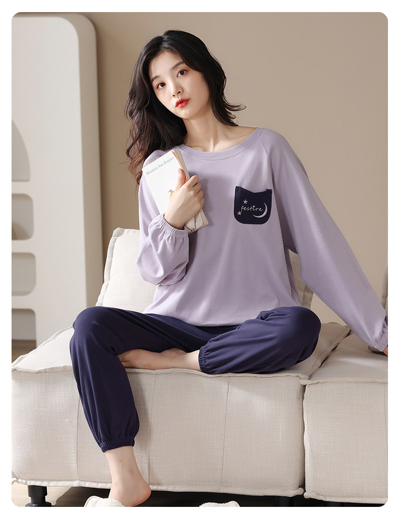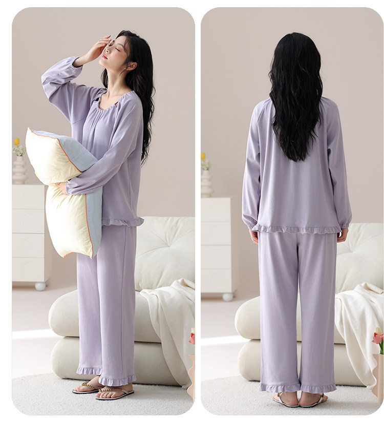 帕蘭朵純棉睡衣女春秋季2025新款全棉長袖圓領束口休閒家居服套裝