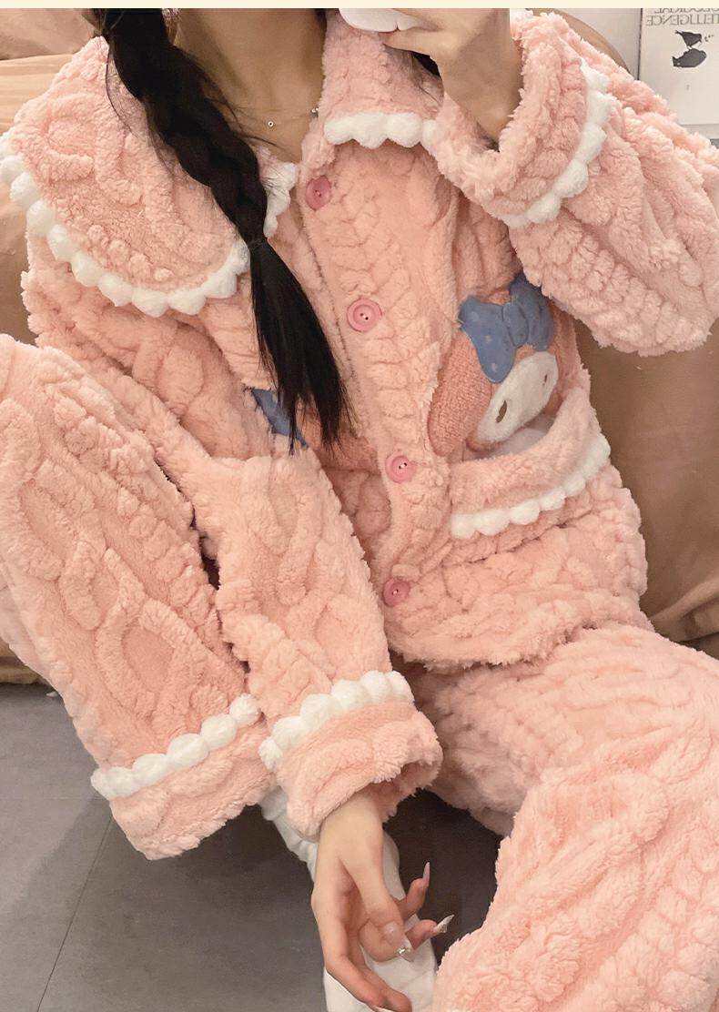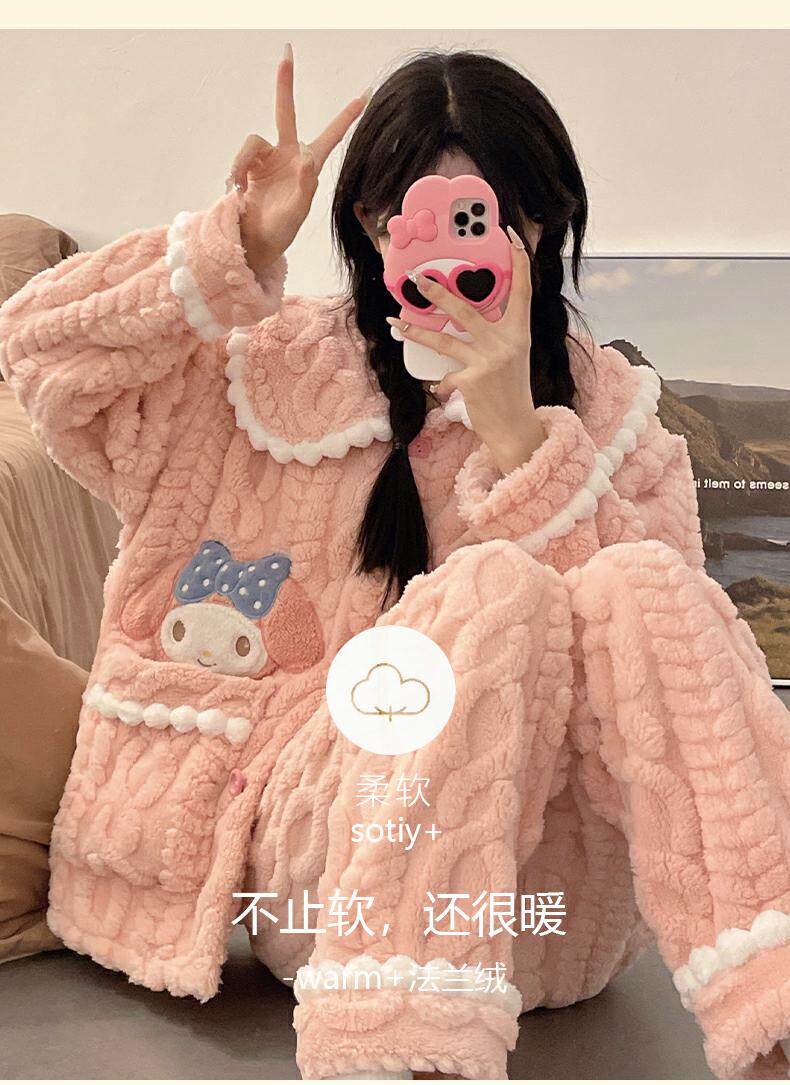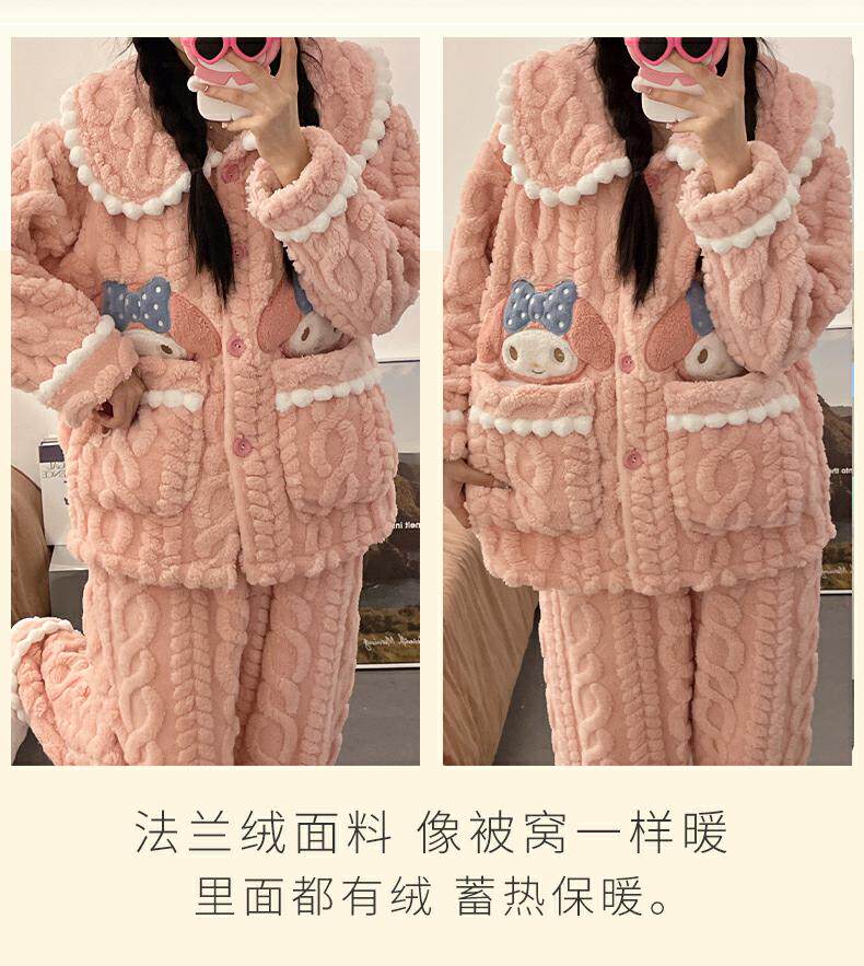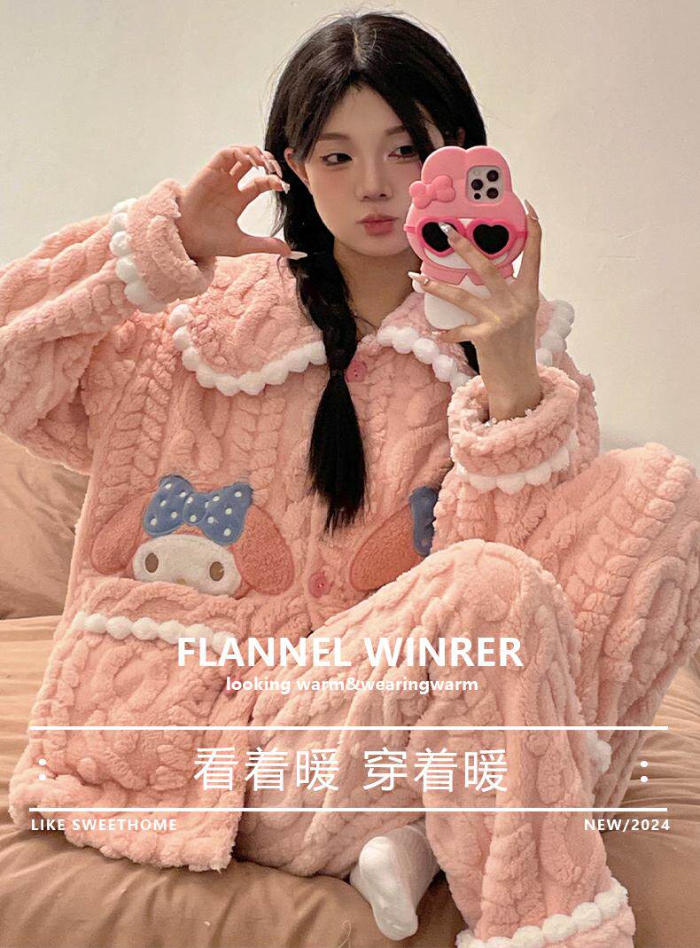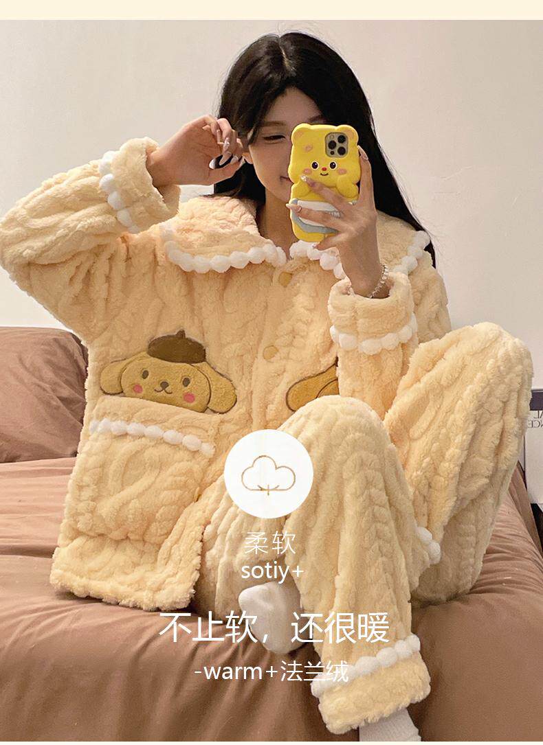 睡衣女秋冬季款珊瑚絨加絨加厚可愛卡通少女大碼法蘭絨家居服套裝
