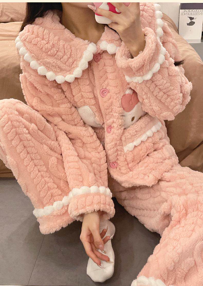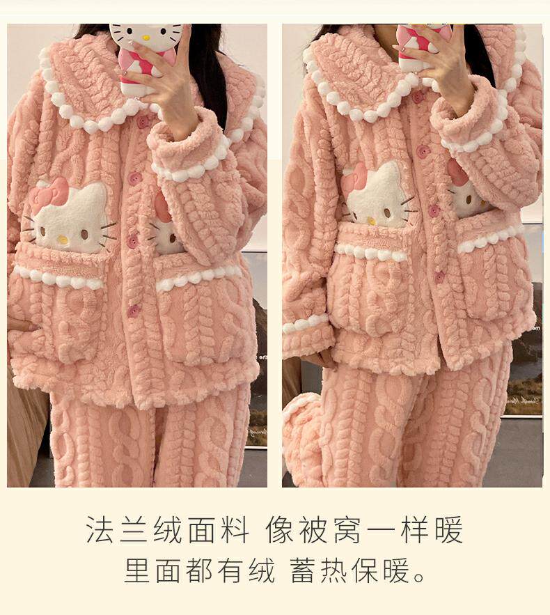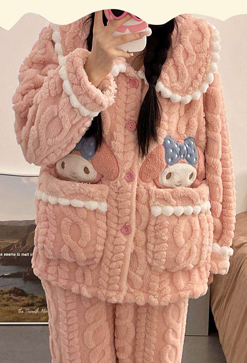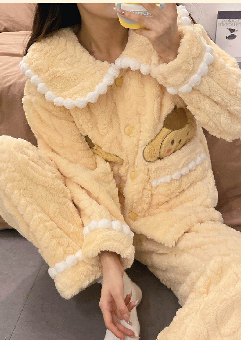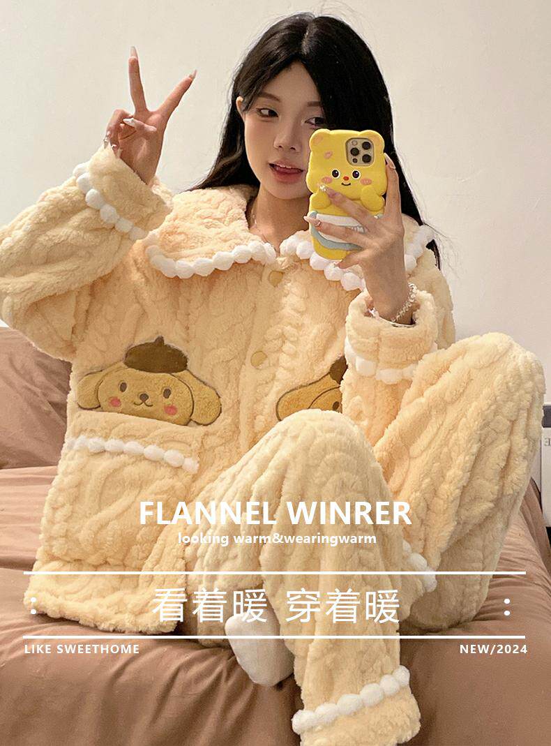 睡衣女秋冬季款珊瑚絨加絨加厚可愛卡通少女大碼法蘭絨家居服套裝