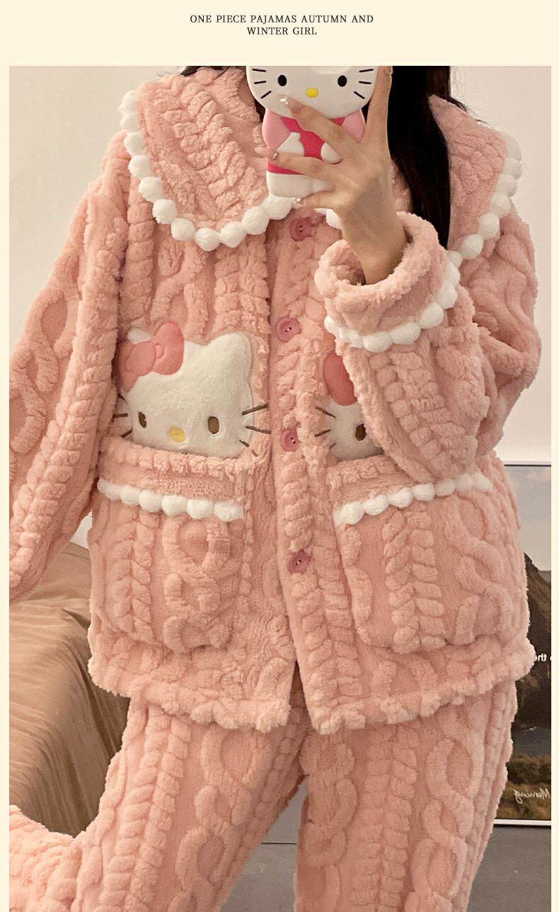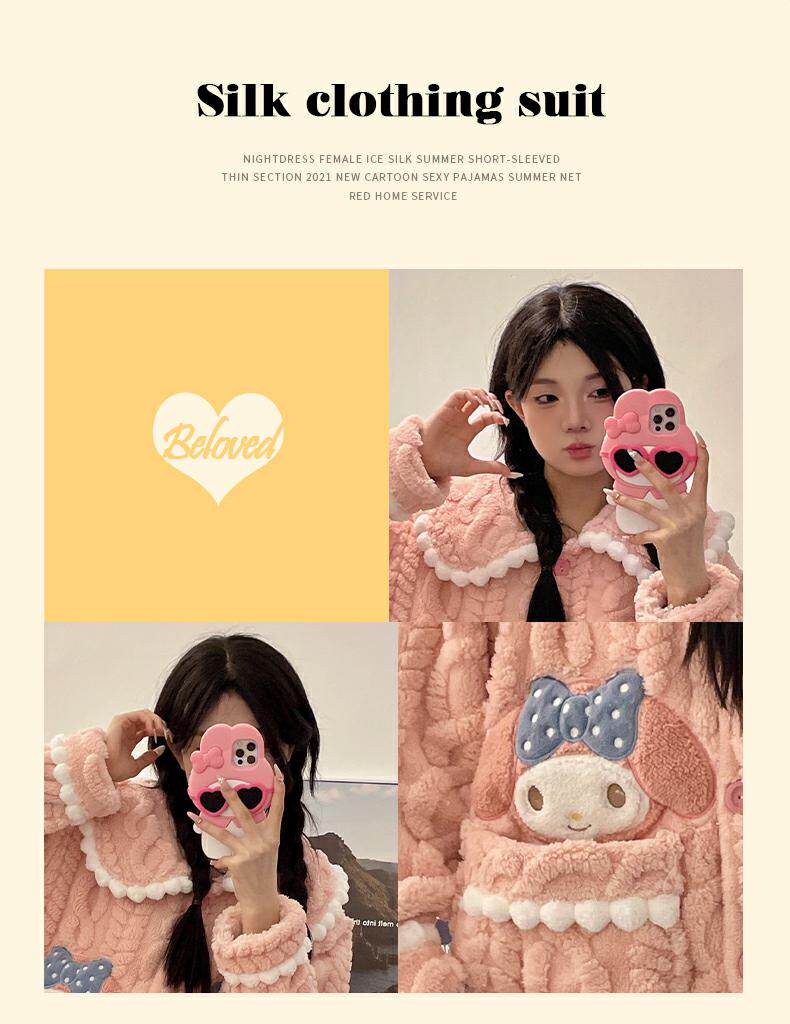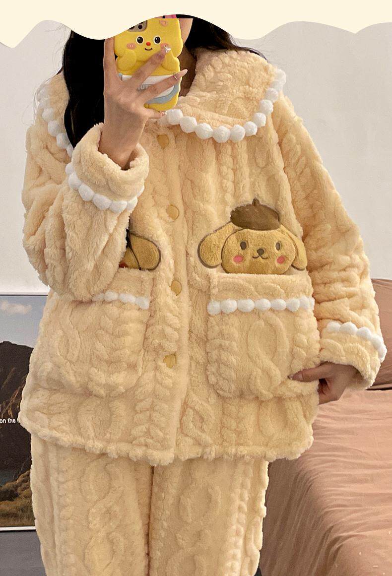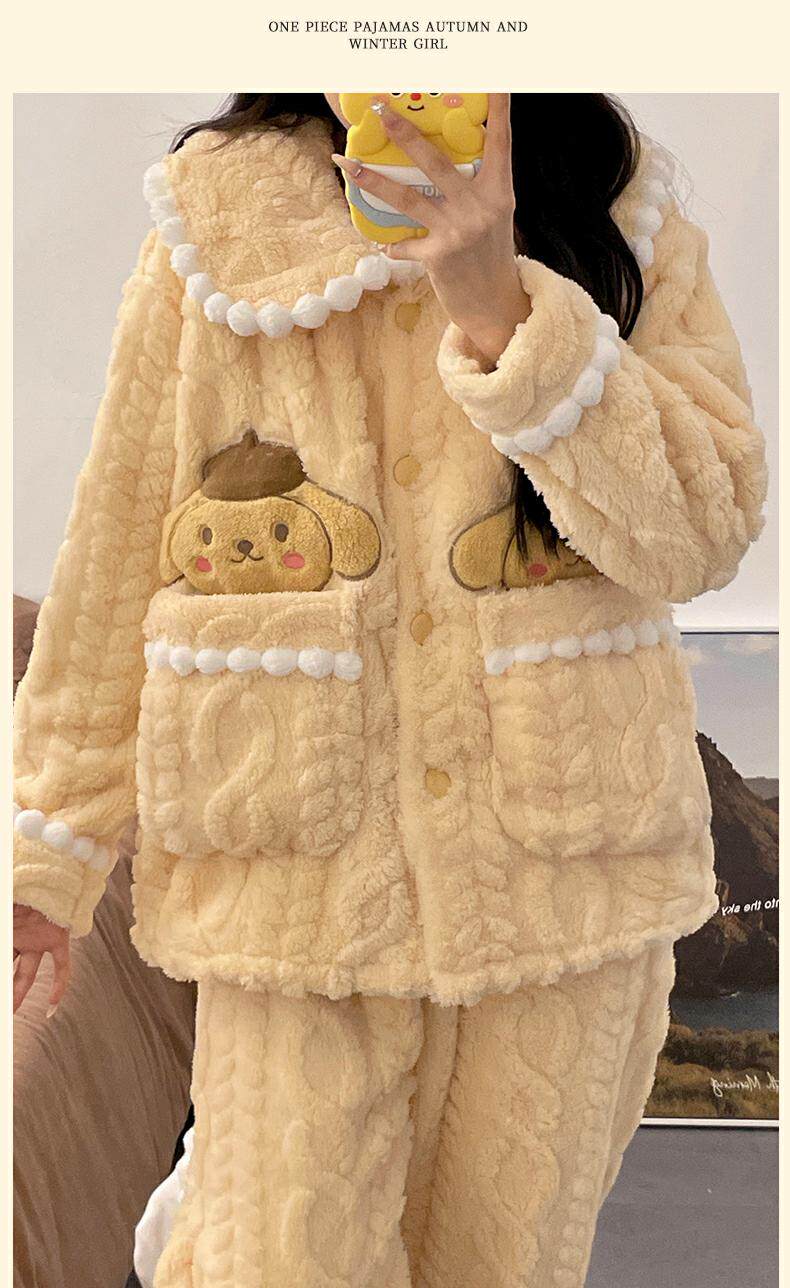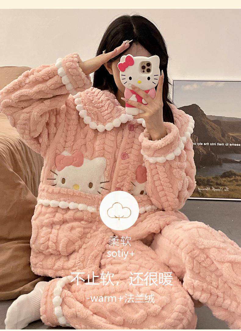 睡衣女秋冬季款珊瑚絨加絨加厚可愛卡通少女大碼法蘭絨家居服套裝