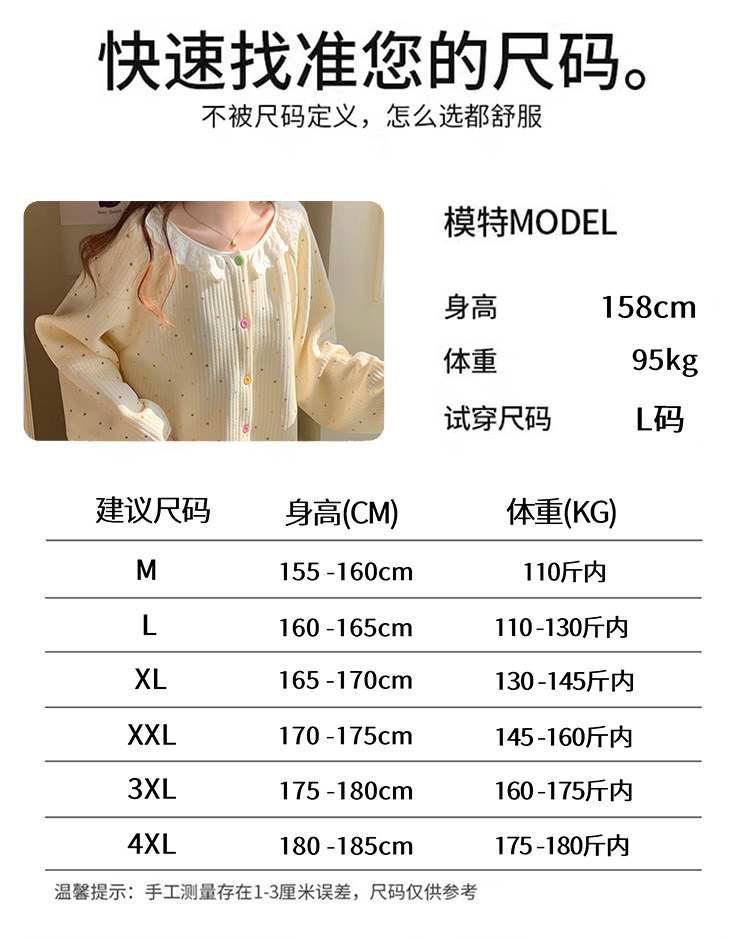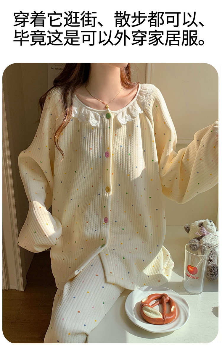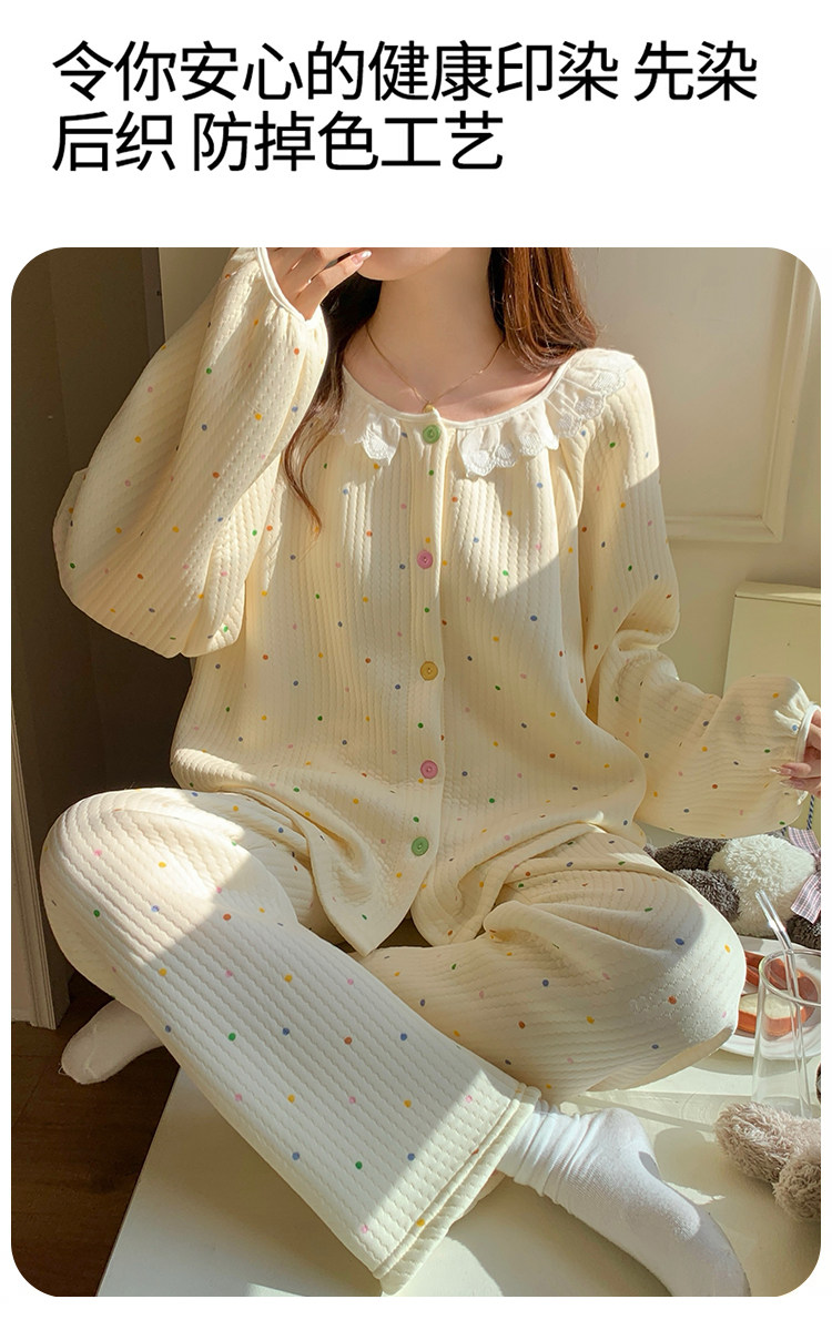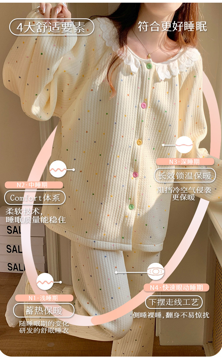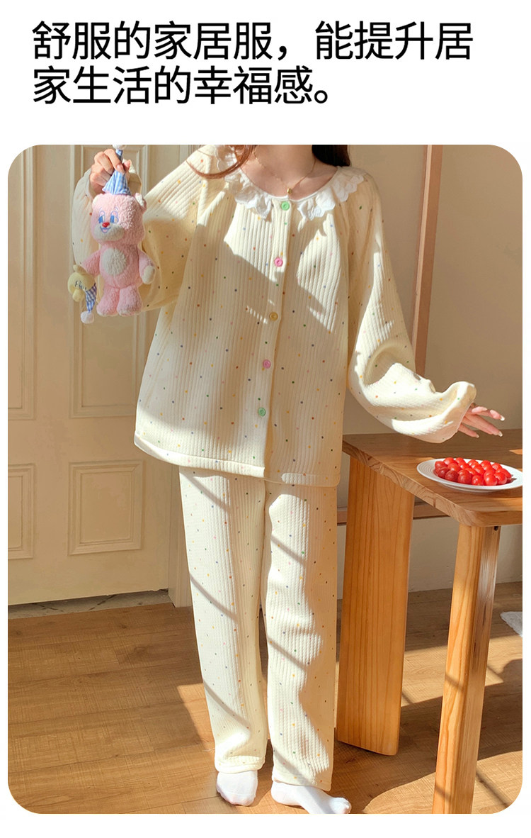 甜美波點睡衣女款秋冬季空氣棉夾層加厚保暖高級感家居服套裝大碼