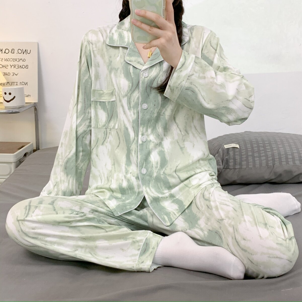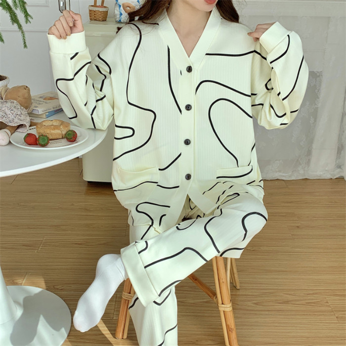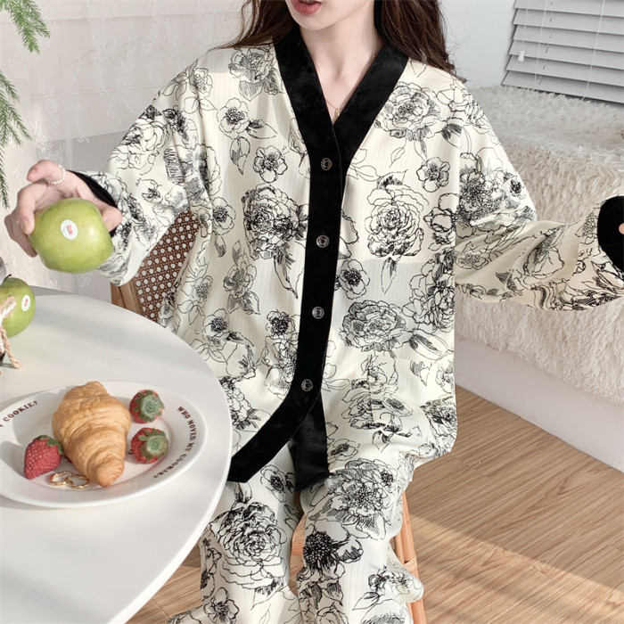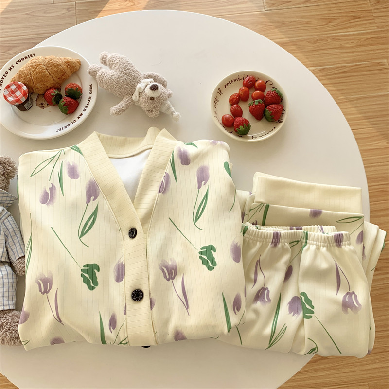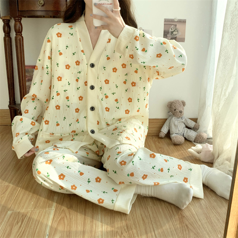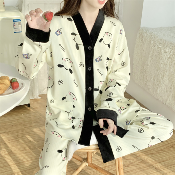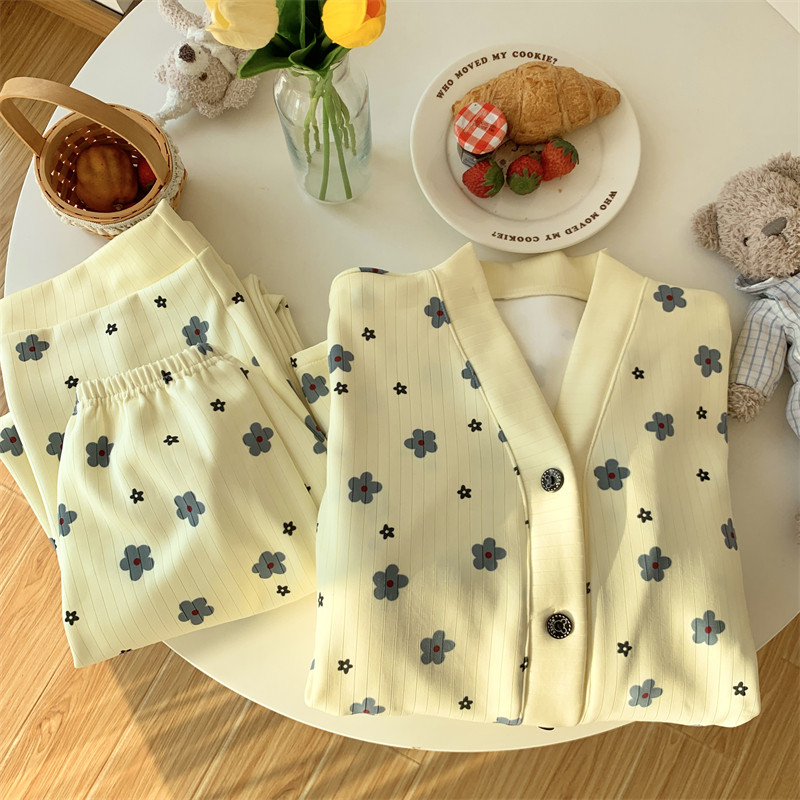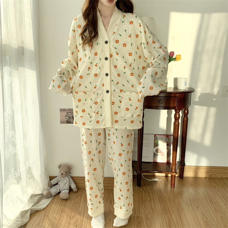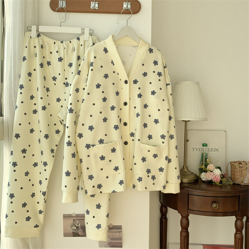 春秋睡衣女大碼200斤帶胸墊防凸點薄款開衫兔子長袖寬鬆家居服