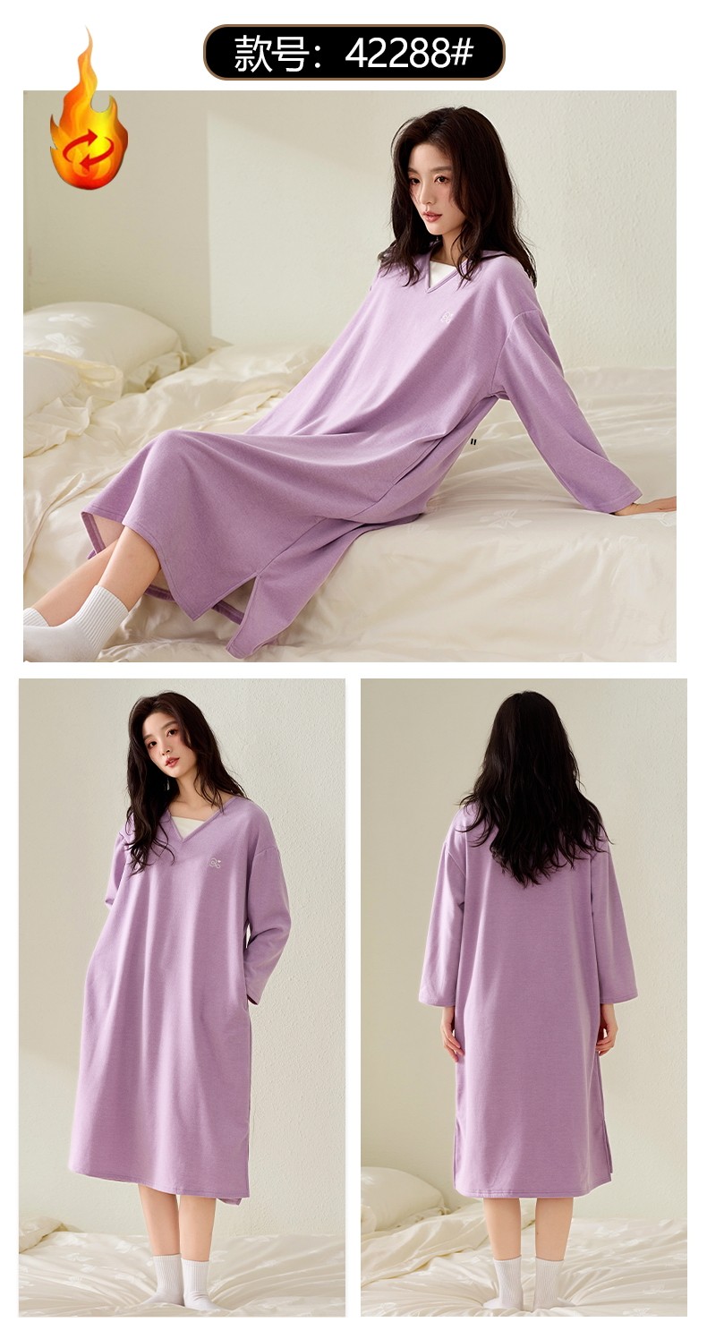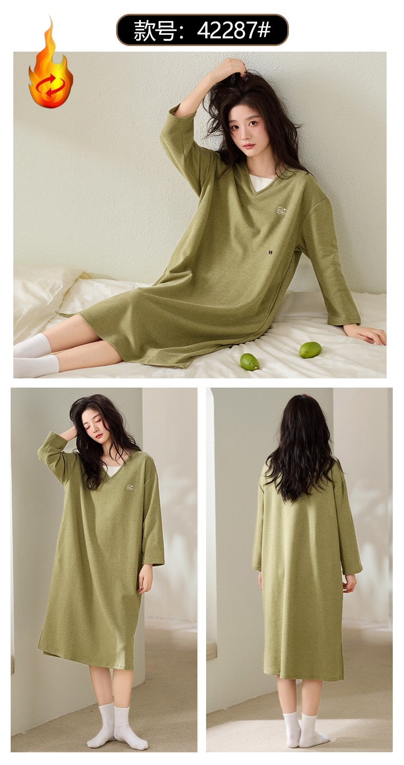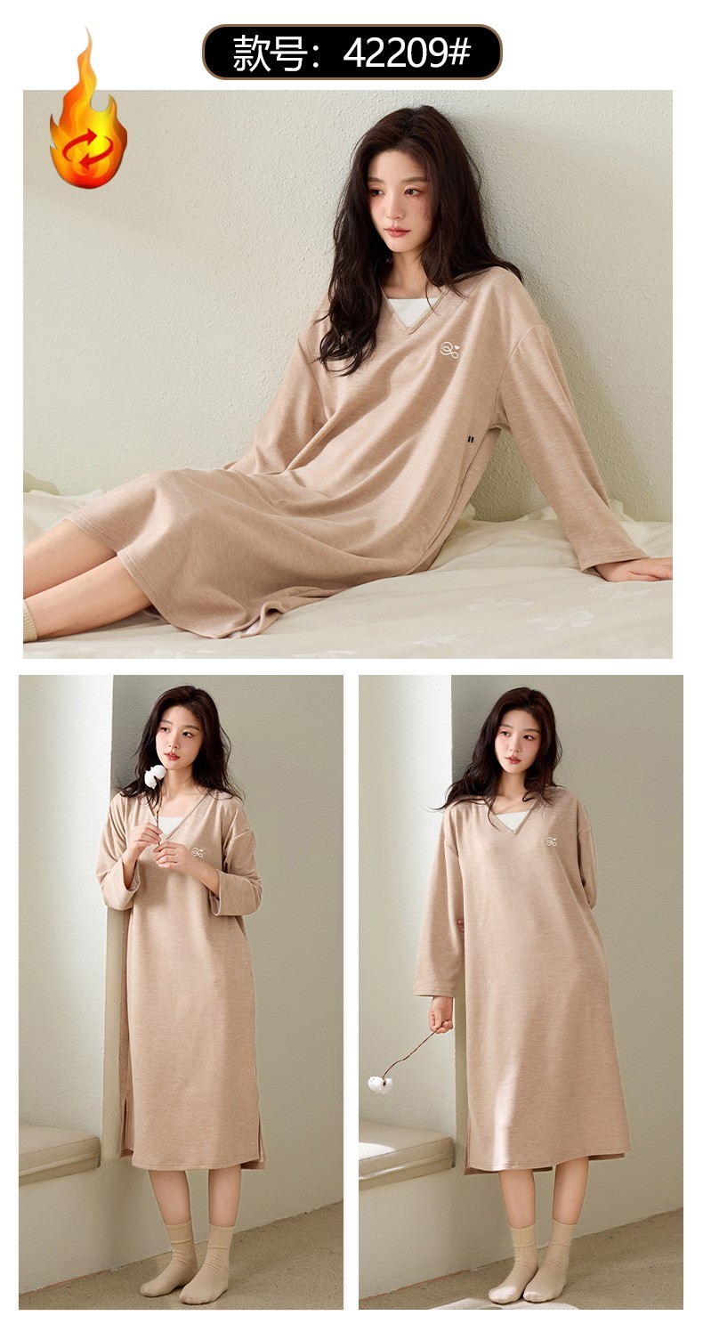 磨毛德絨睡衣女士睡裙秋冬季羊絨蠶絲保暖時尚中長款連衣裙家居服