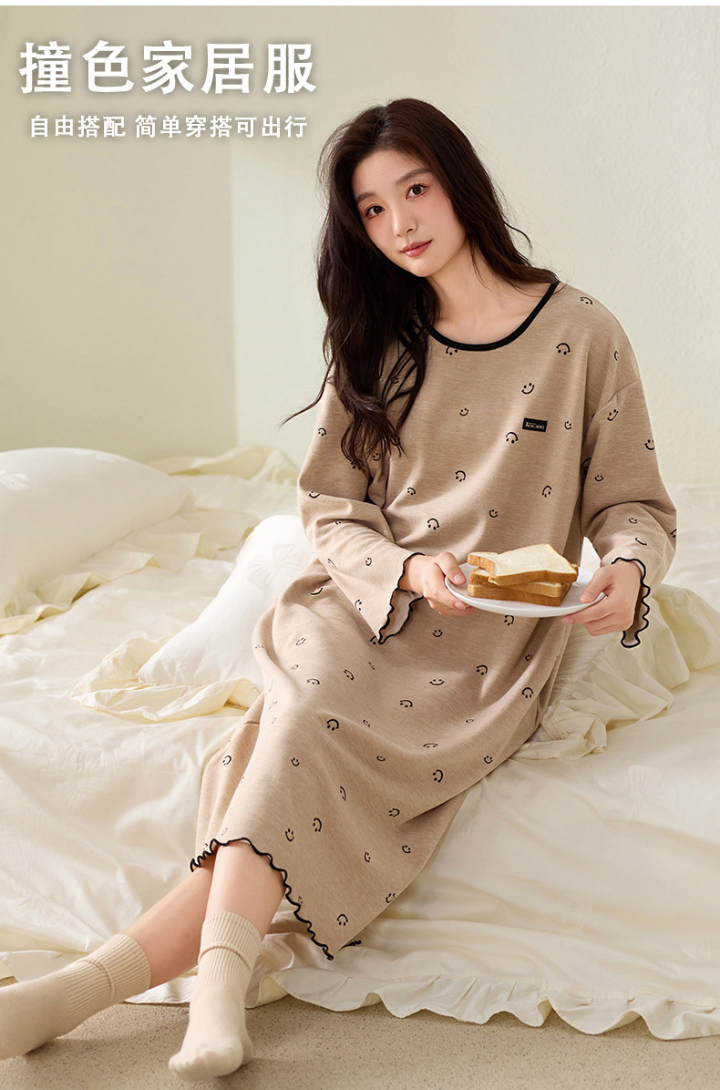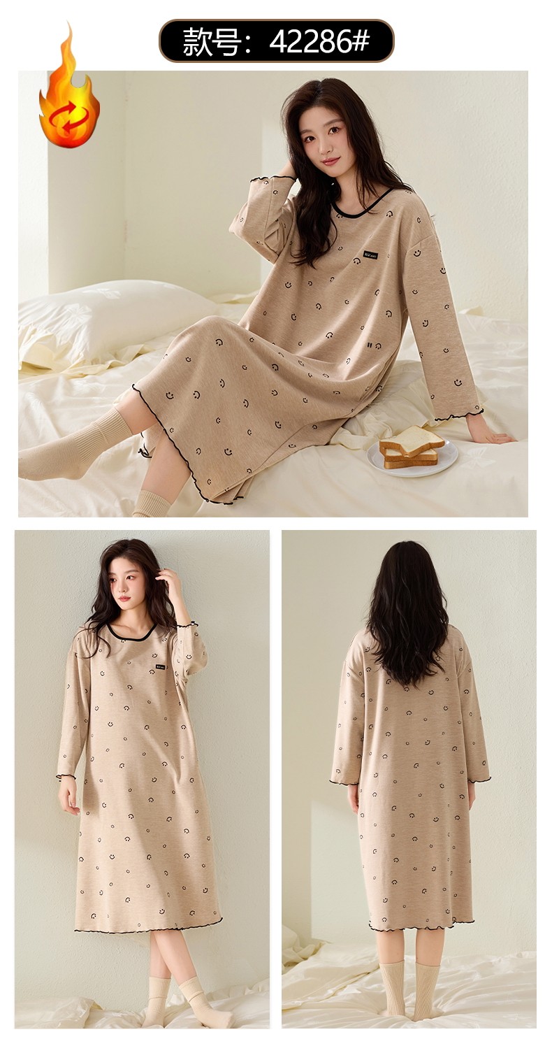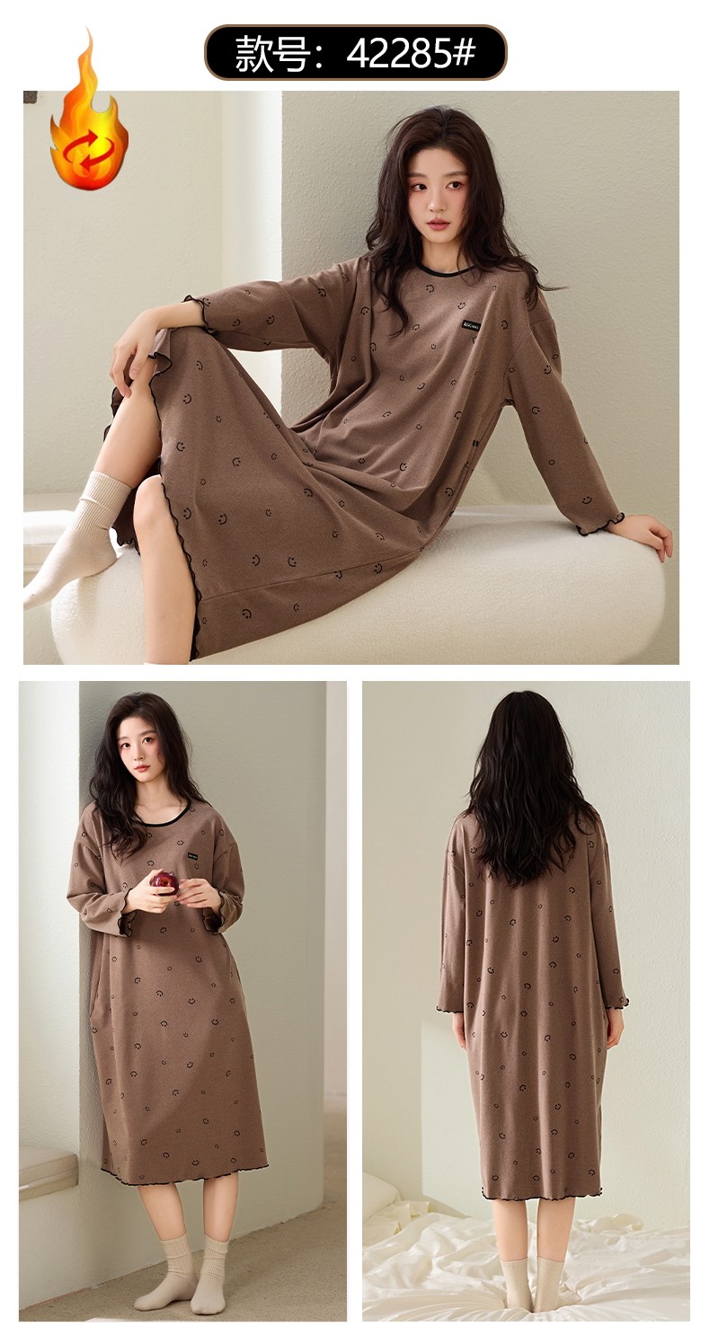 磨毛德絨睡衣女士睡裙秋冬季羊絨蠶絲保暖時尚中長款連衣裙家居服