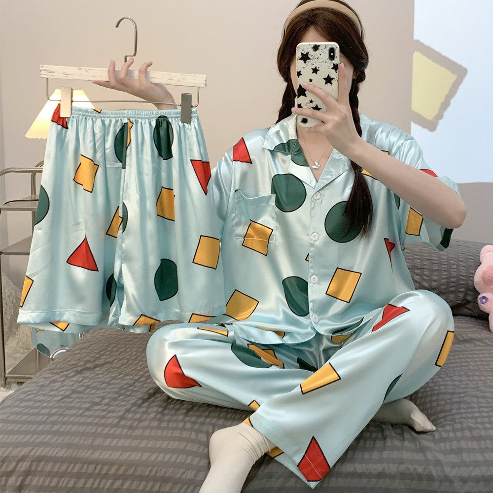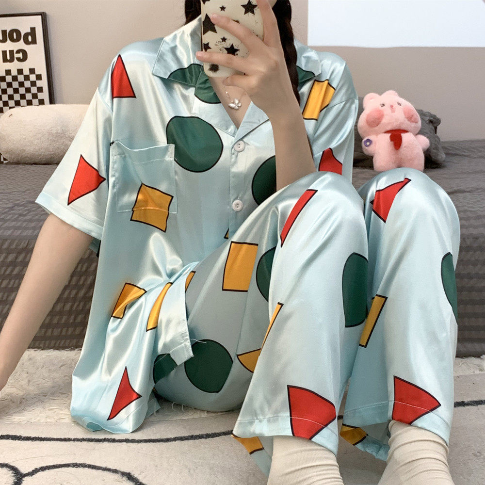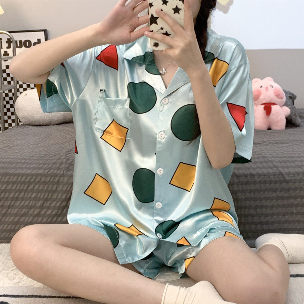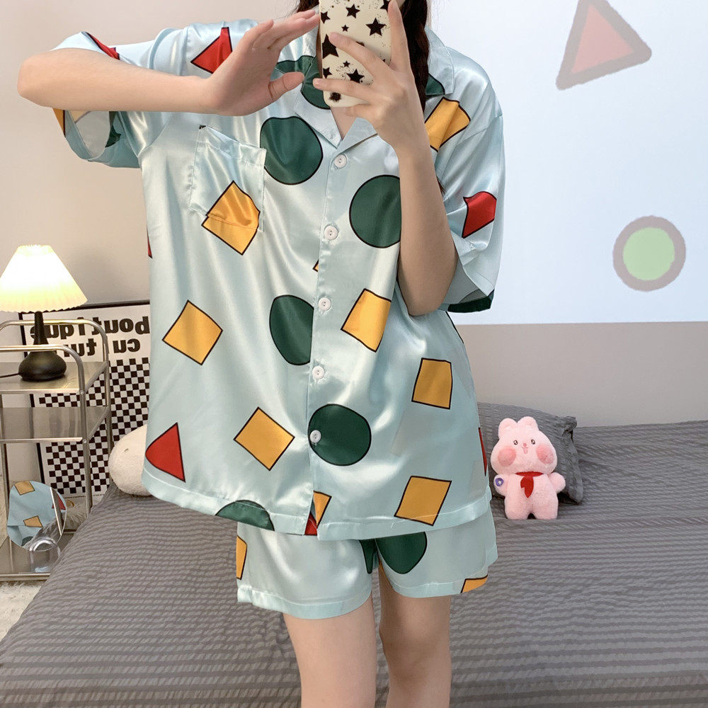 蠟筆小新同款睡衣女夏季冰絲短袖短褲學生寬鬆大碼夏季家居服套裝