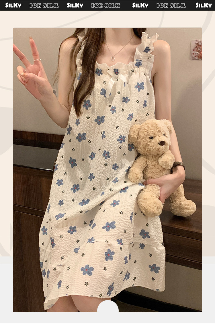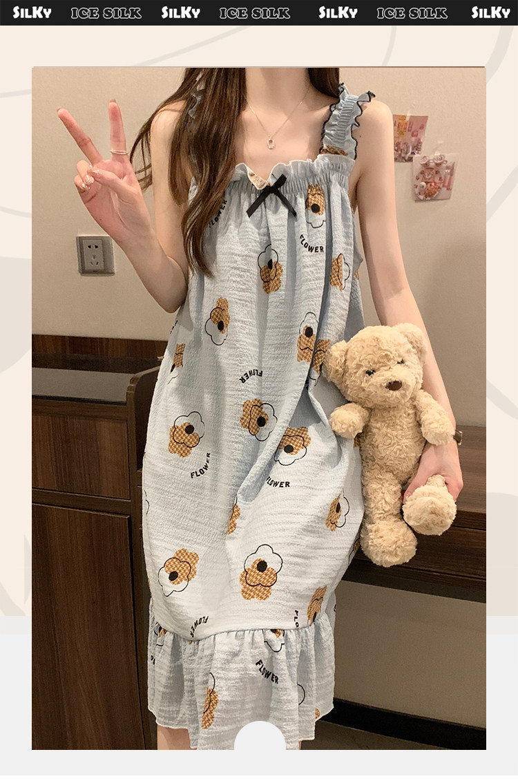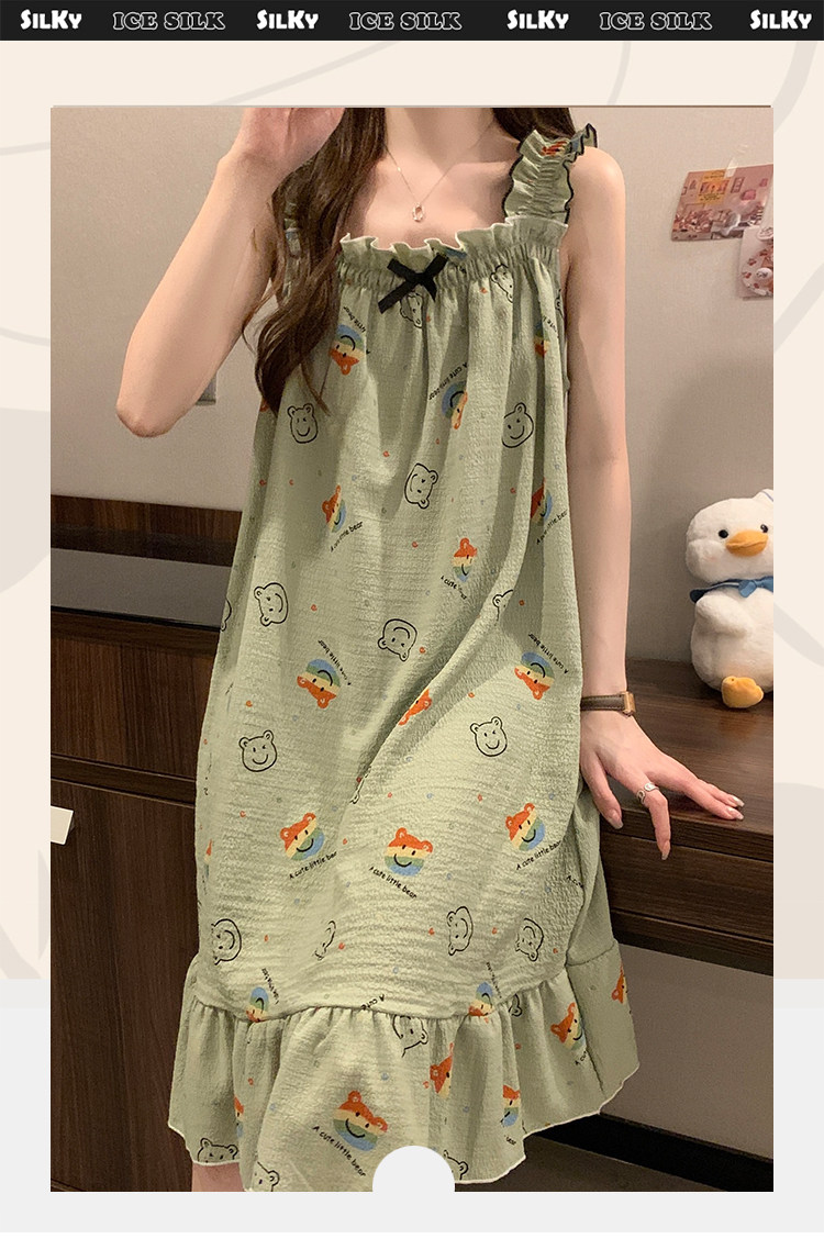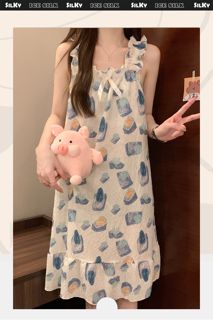 2025新款吊帶睡裙夏季帶胸墊睡衣女士夏天大碼200斤可外穿家居服