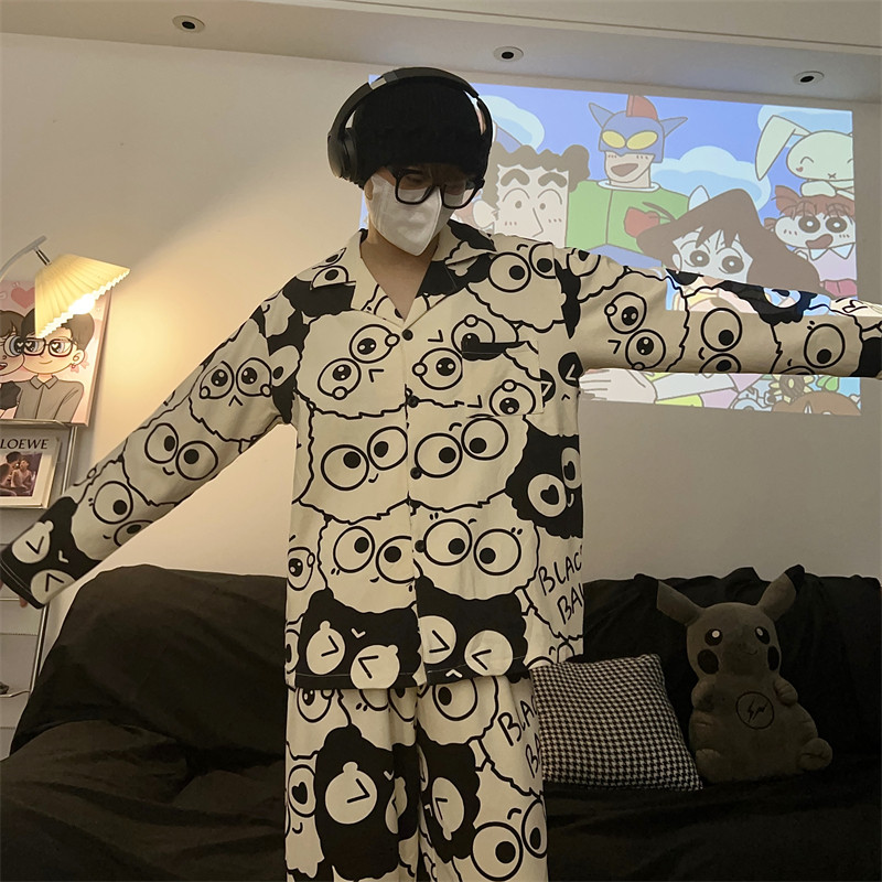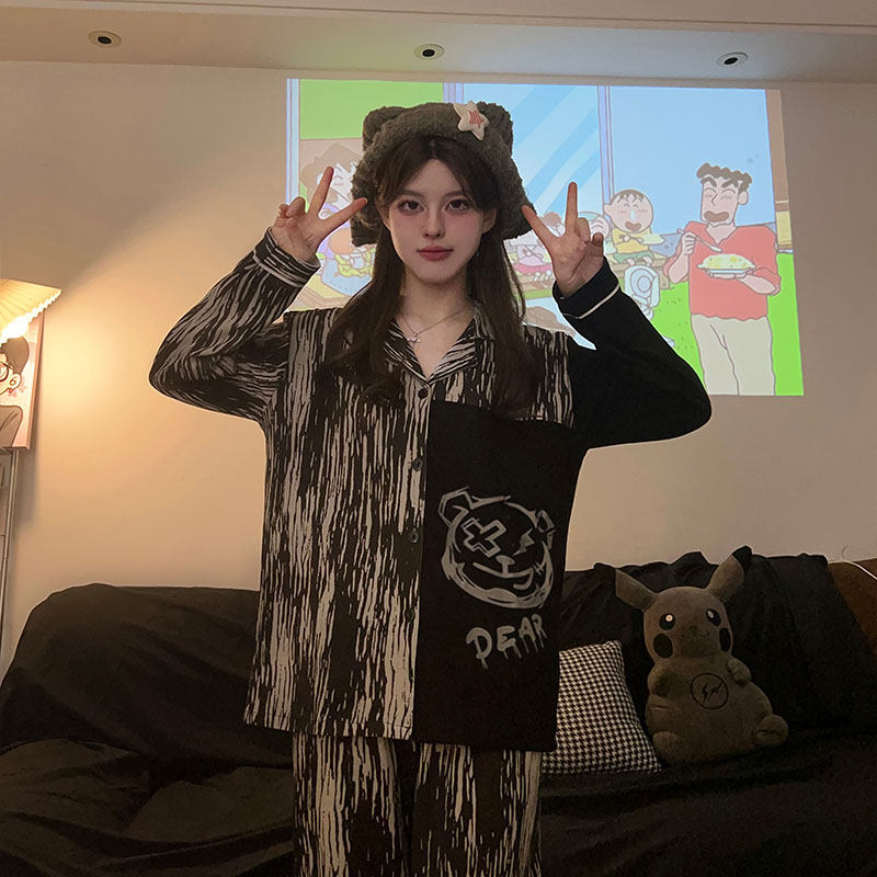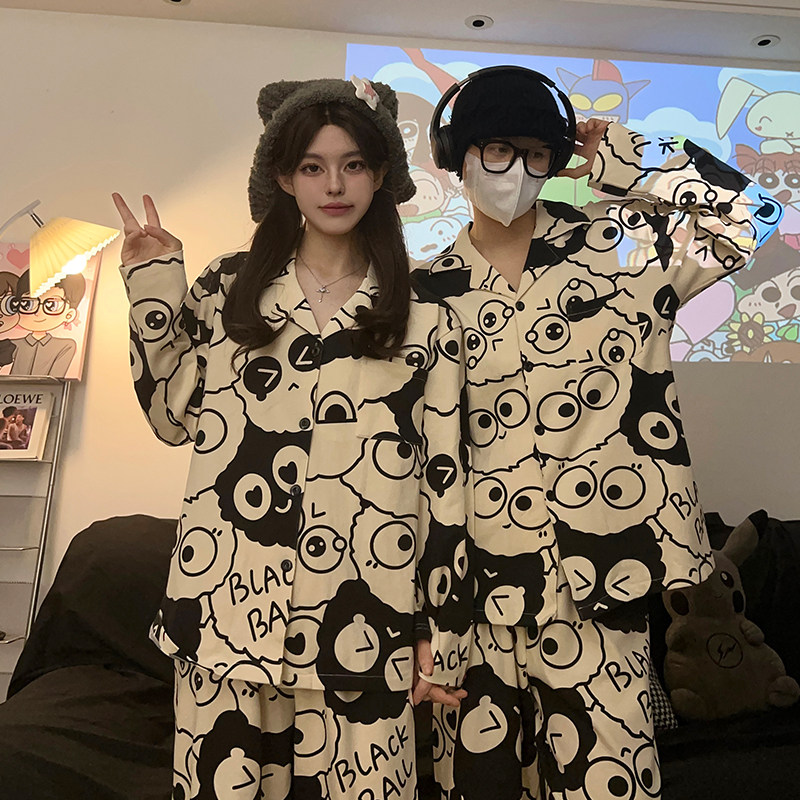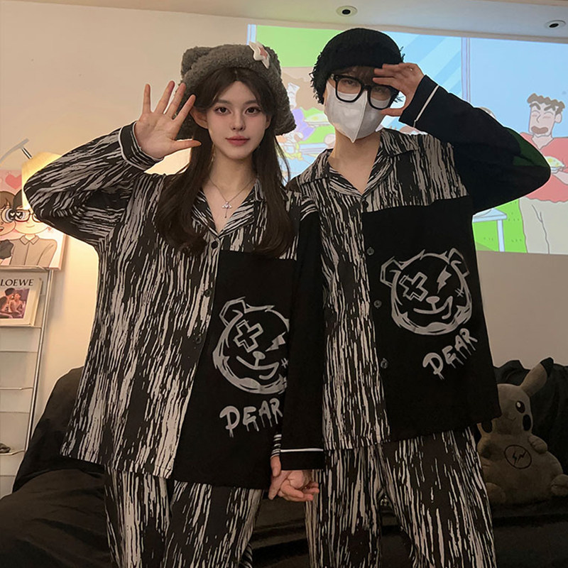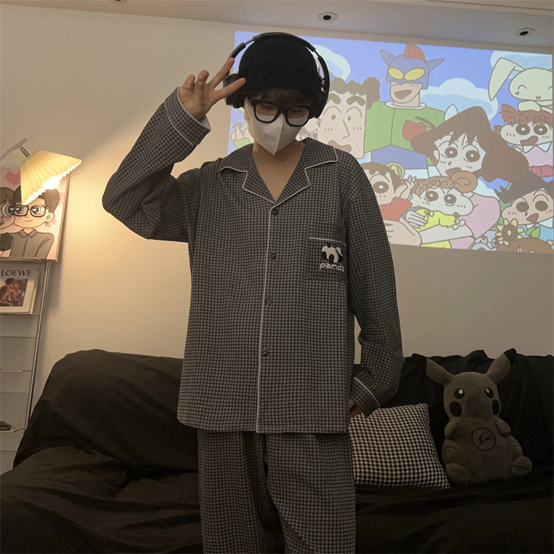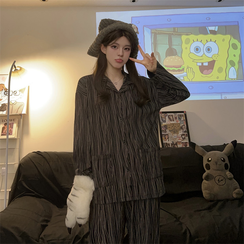 情侶睡衣女春秋款韓版高級感條紋純棉長袖男士大碼簡約家居服套裝