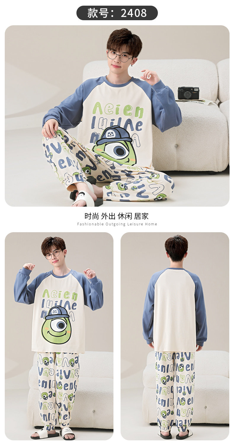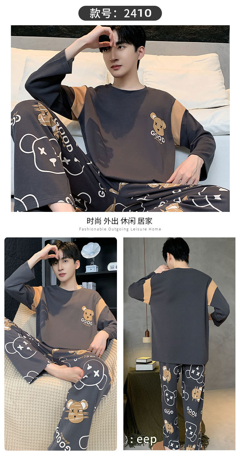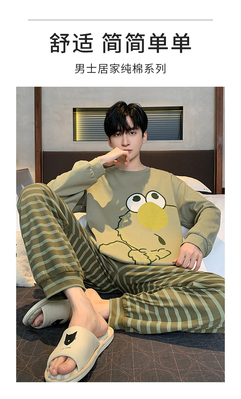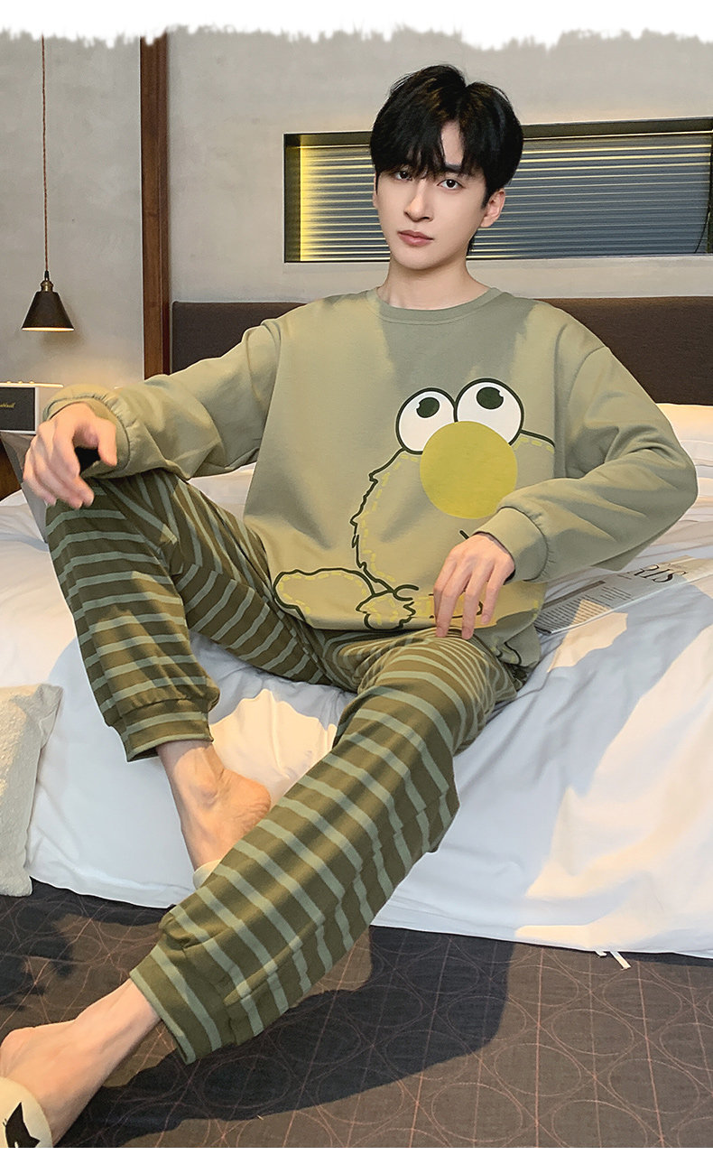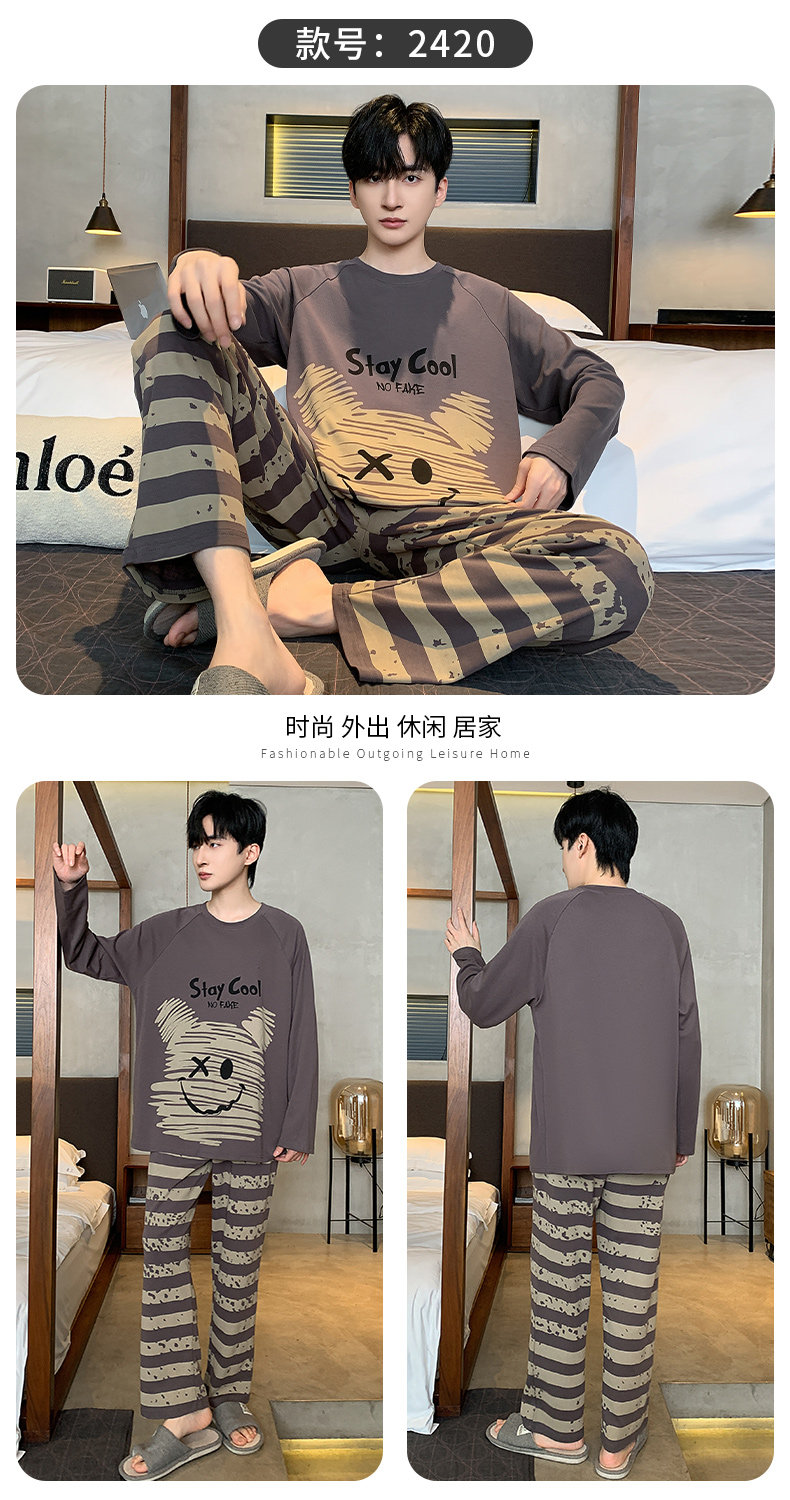 秋冬季男士純棉長袖睡衣青少年加肥加大碼卡通學生中大童兩件套裝