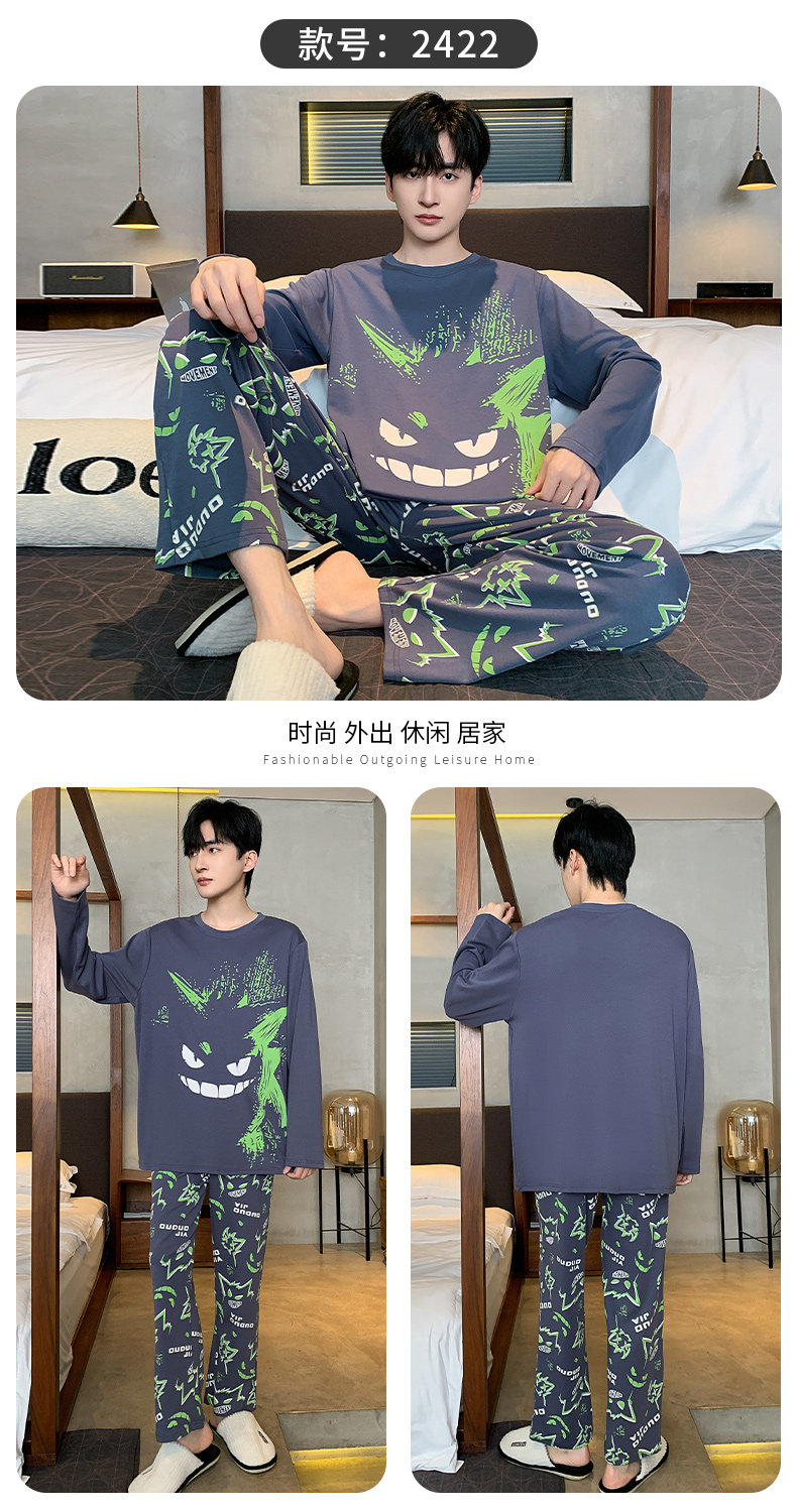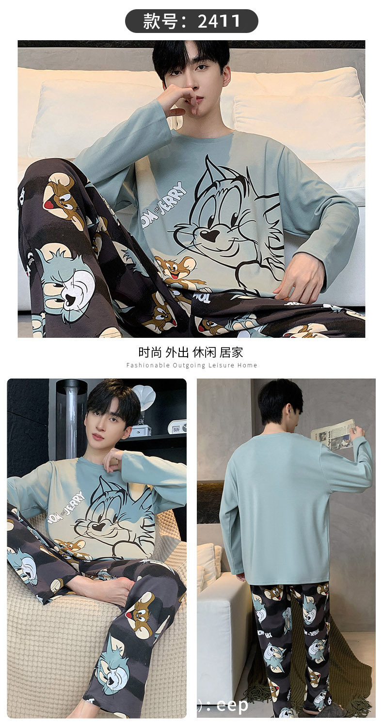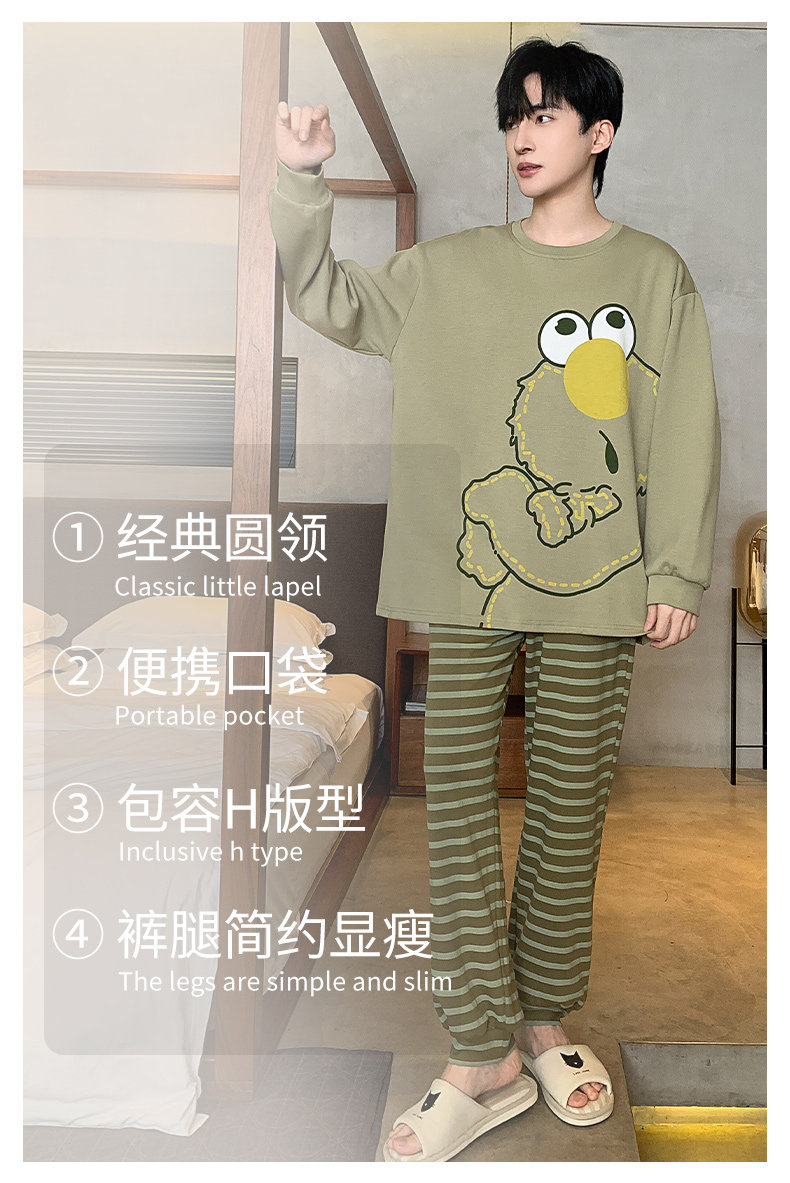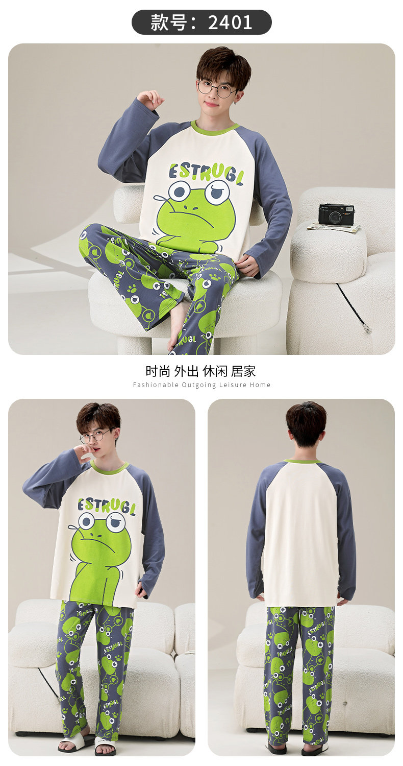 秋冬季男士純棉長袖睡衣青少年加肥加大碼卡通學生中大童兩件套裝