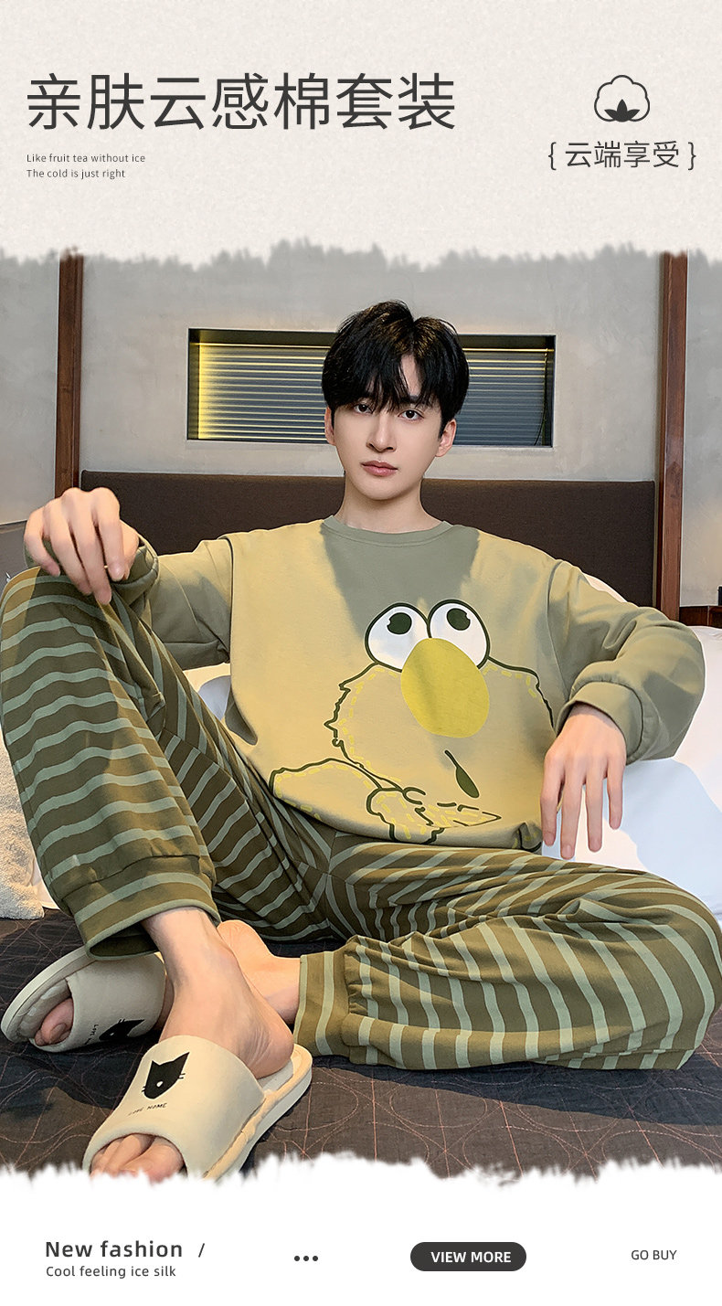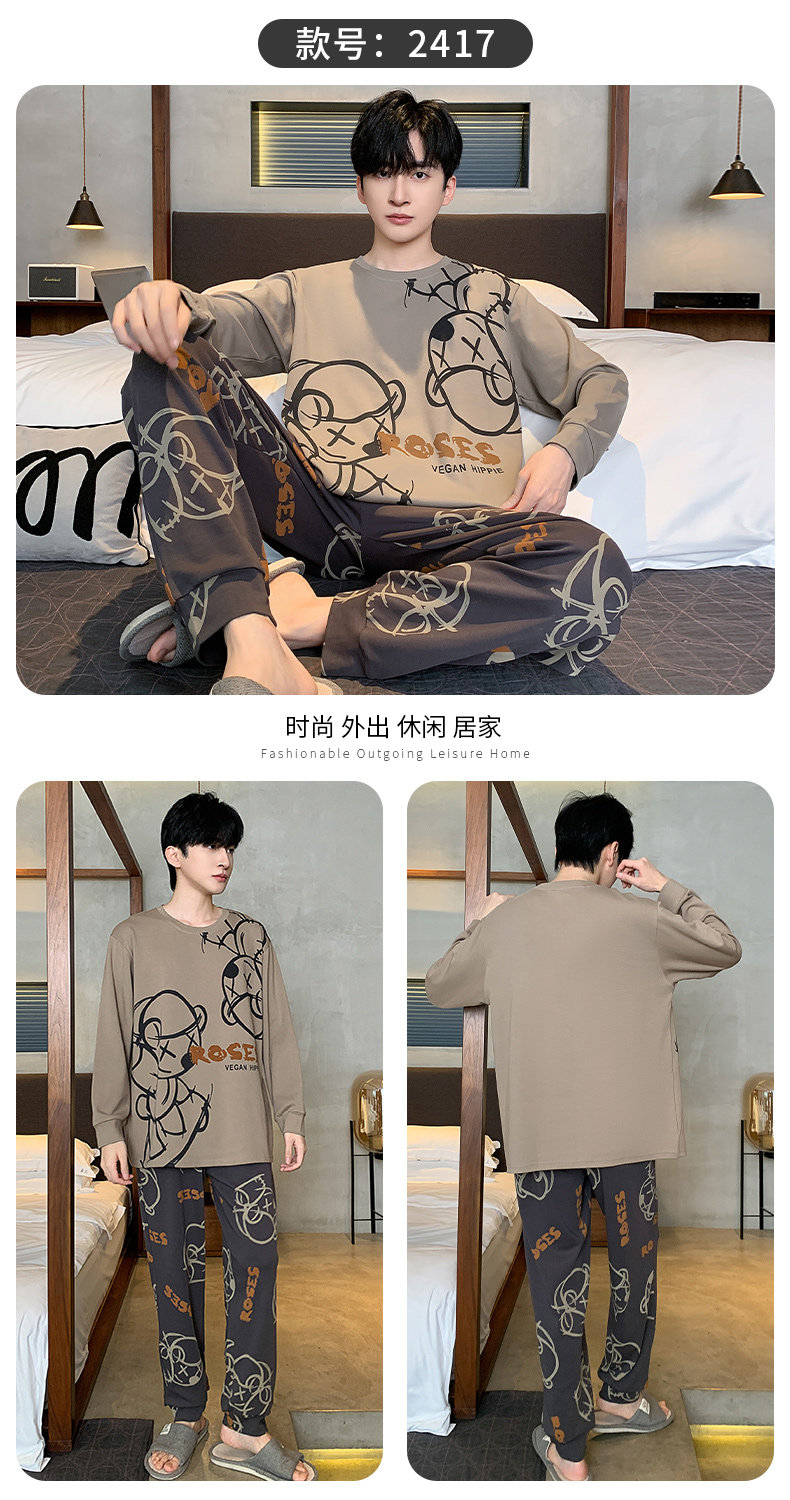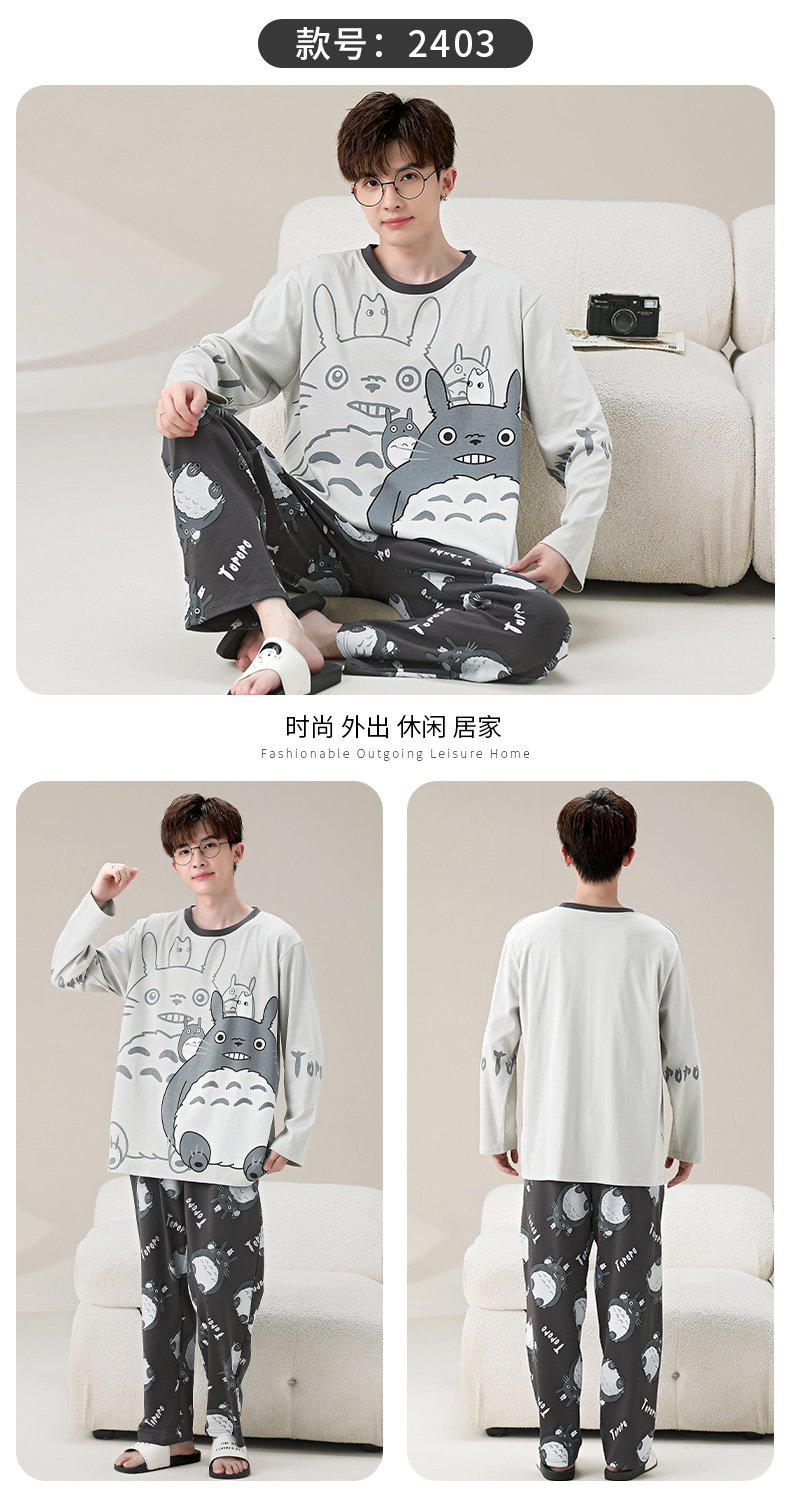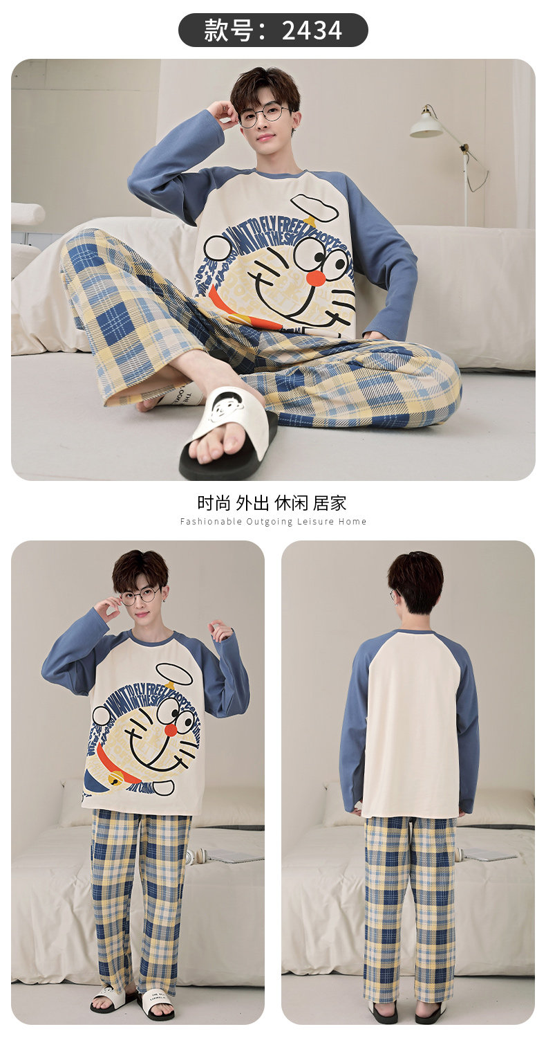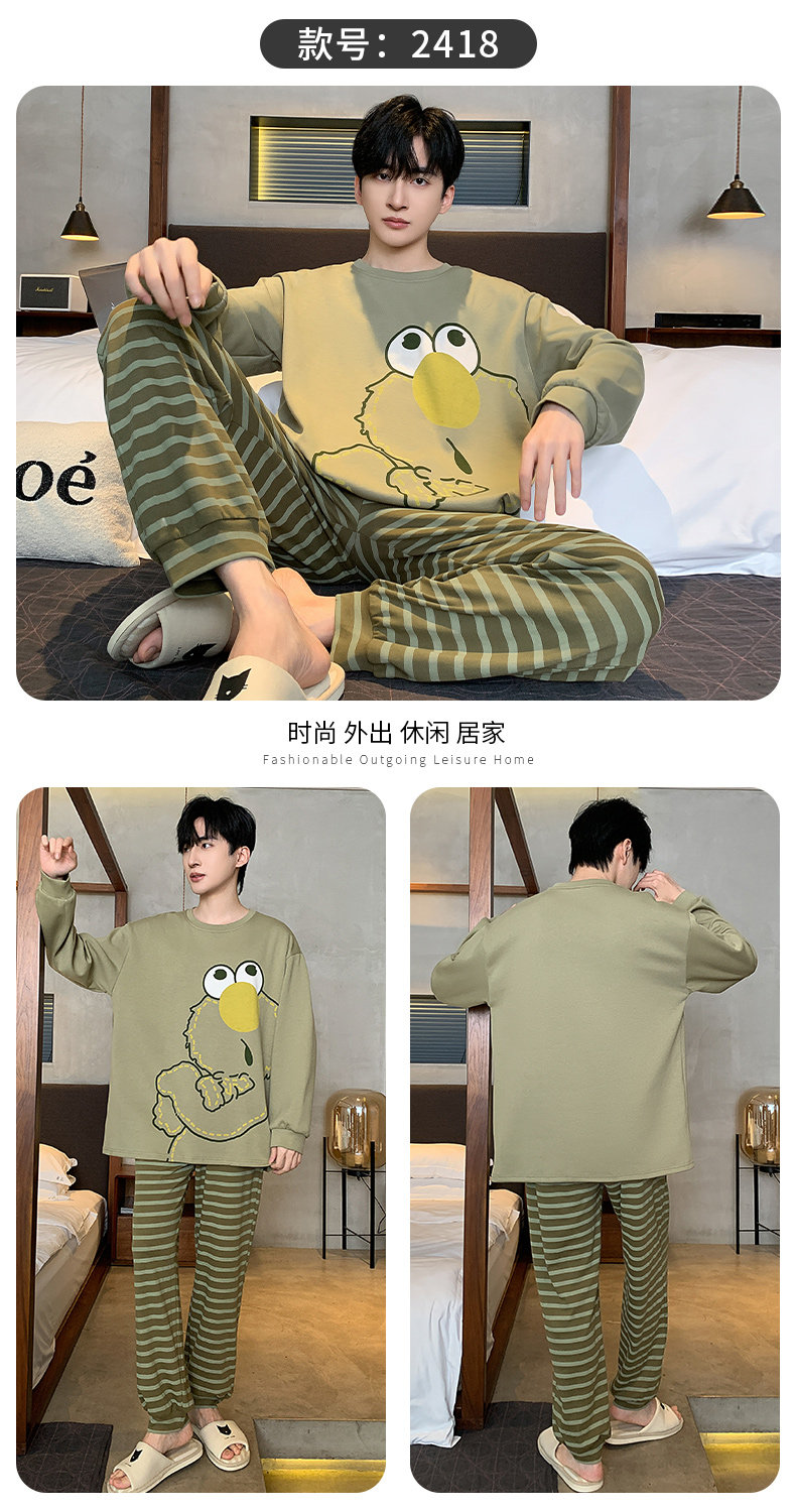 秋冬季男士純棉長袖睡衣青少年加肥加大碼卡通學生中大童兩件套裝