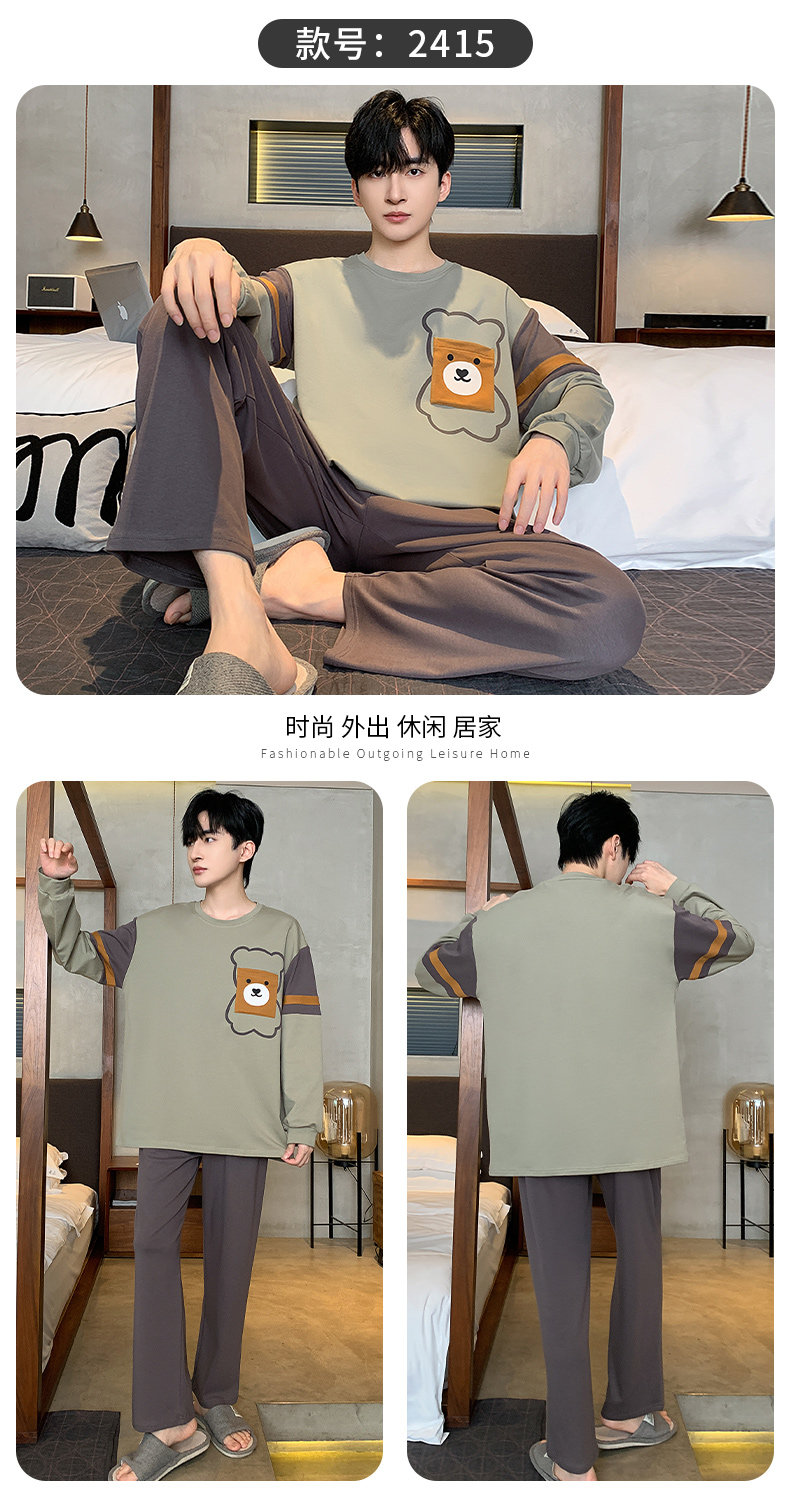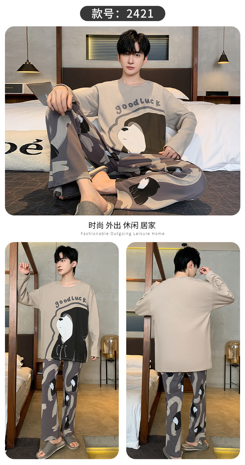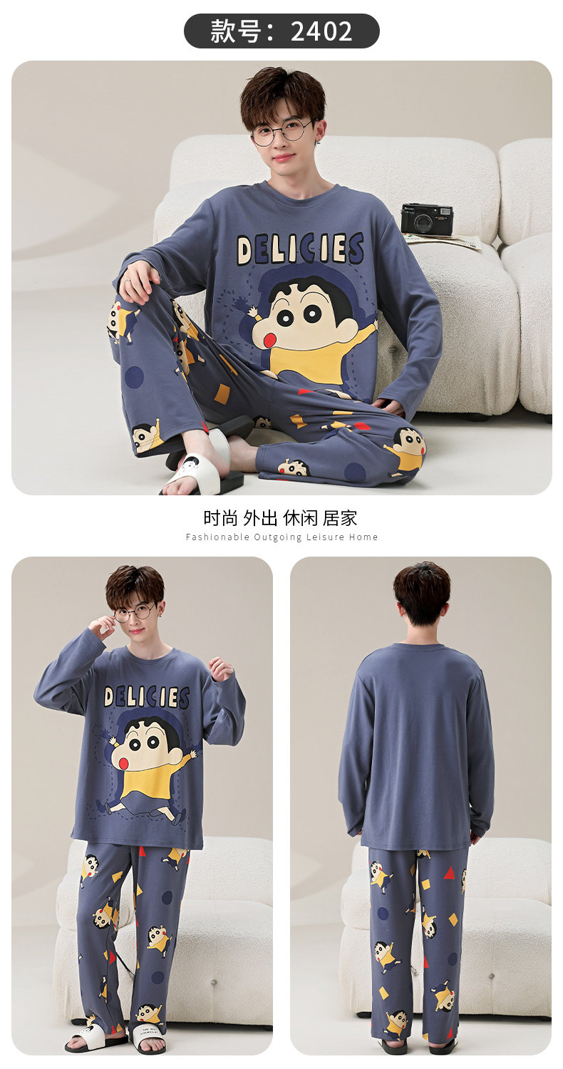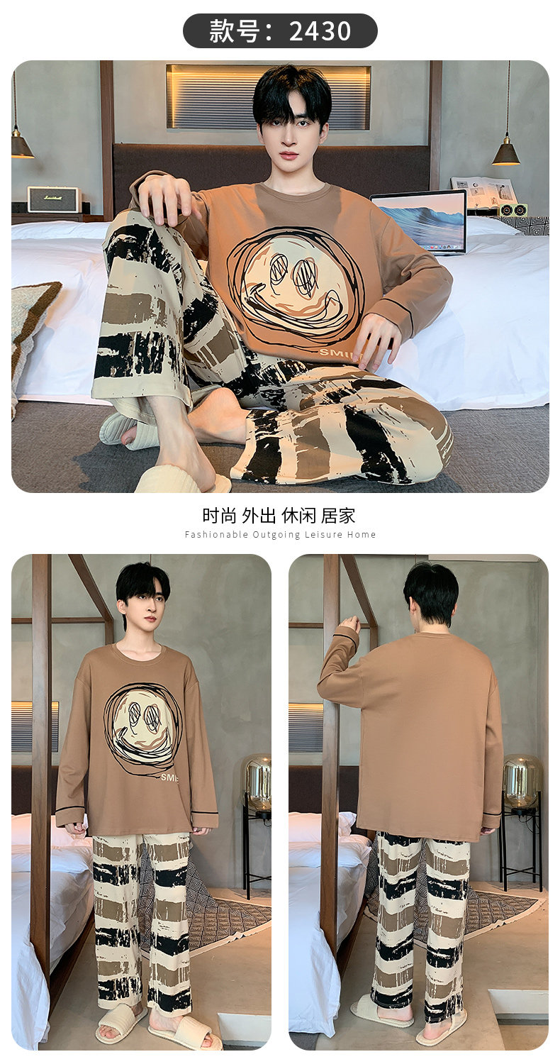 秋冬季男士純棉長袖睡衣青少年加肥加大碼卡通學生中大童兩件套裝
