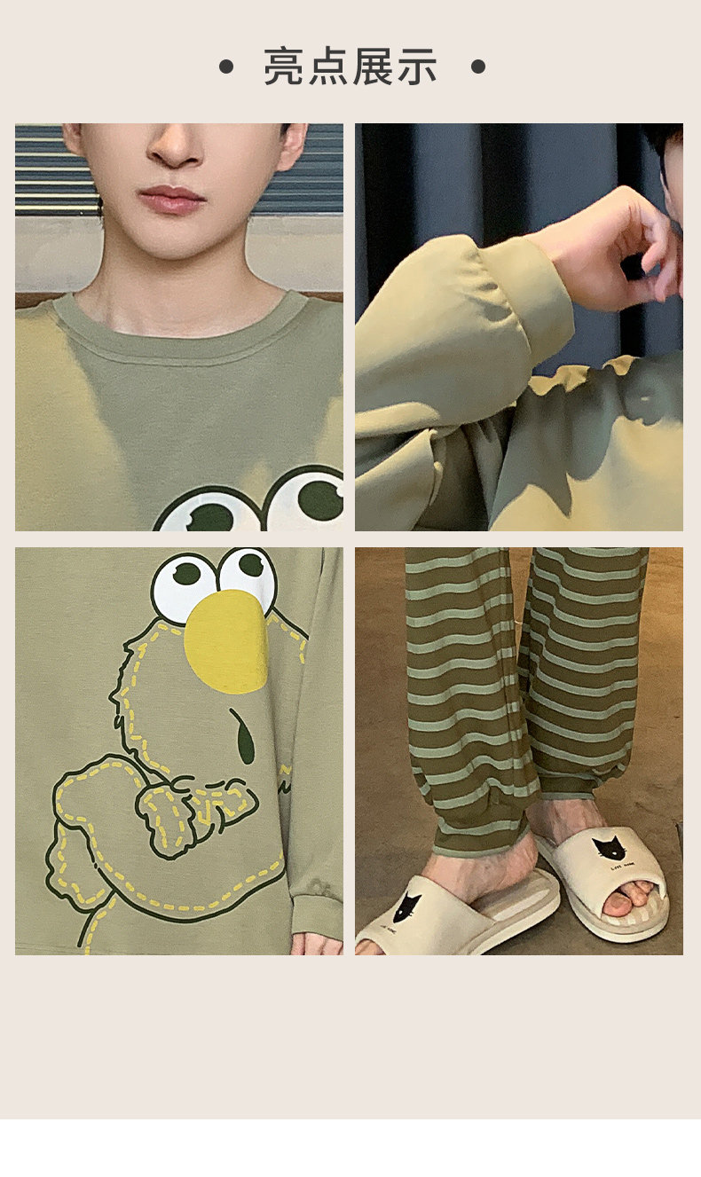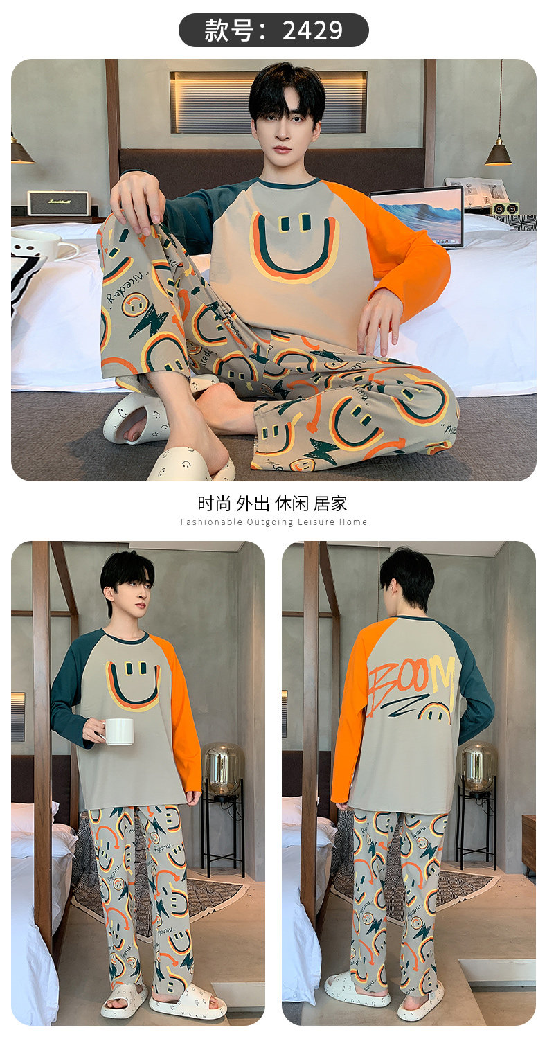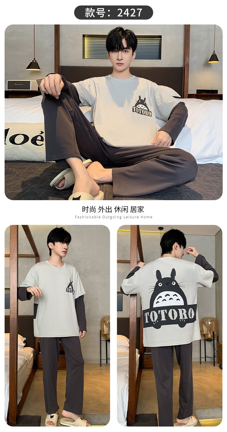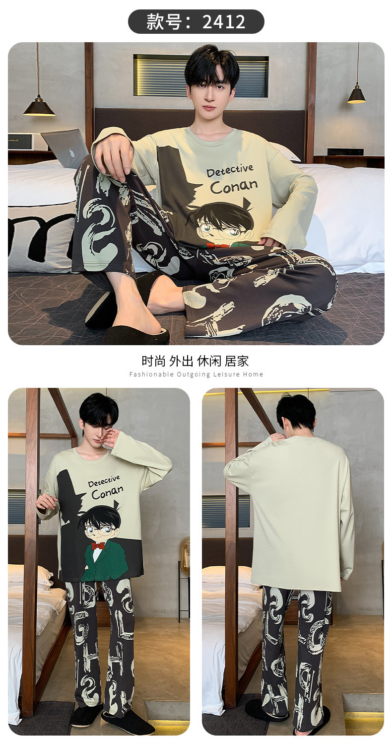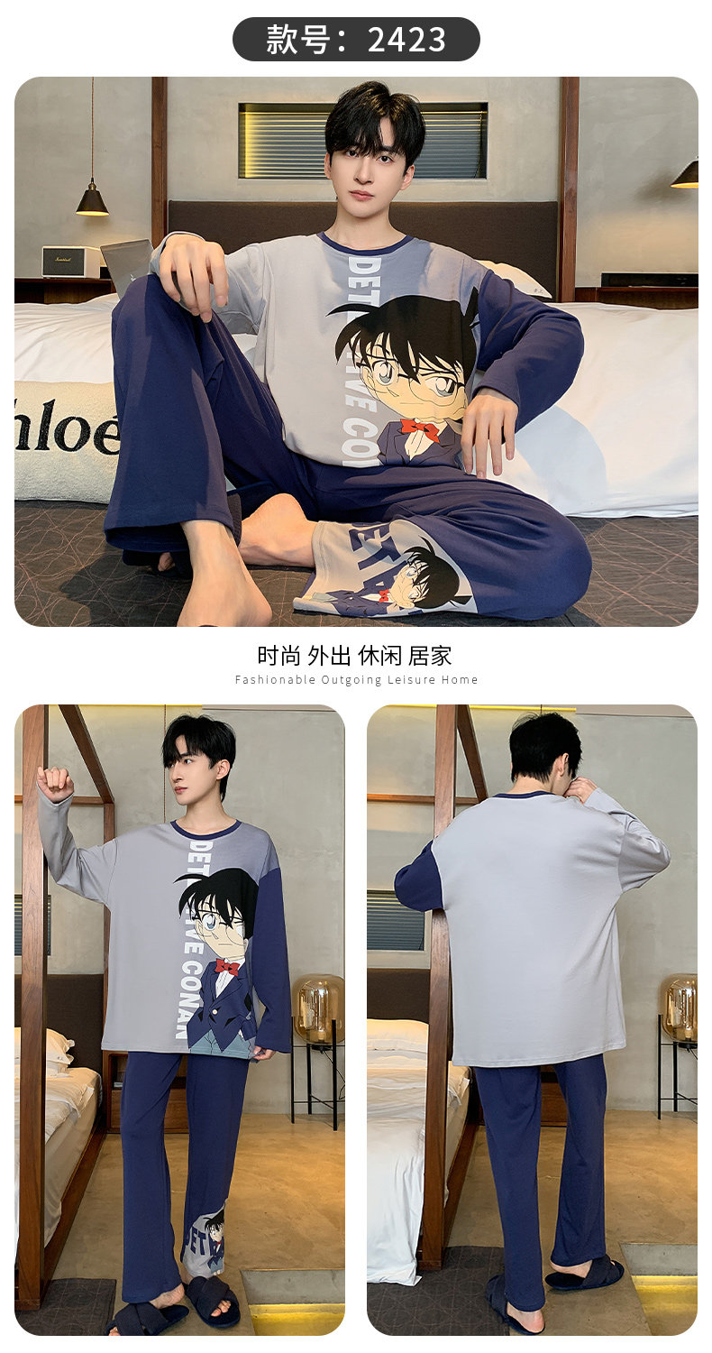 秋冬季男士純棉長袖睡衣青少年加肥加大碼卡通學生中大童兩件套裝