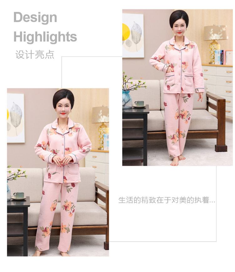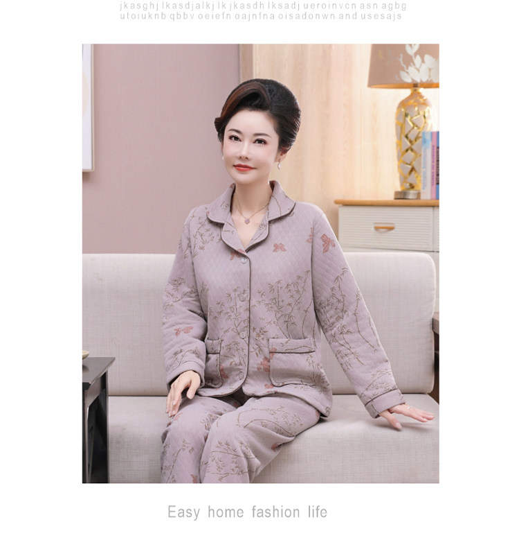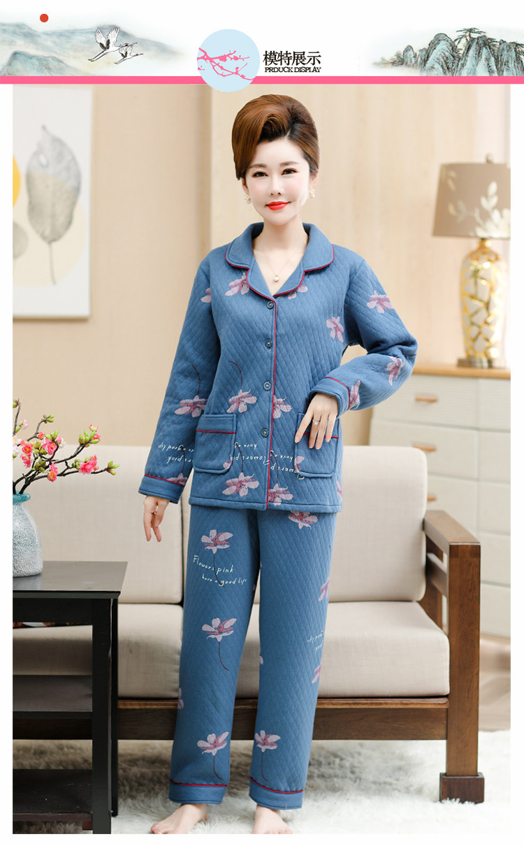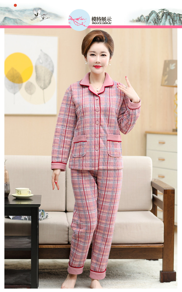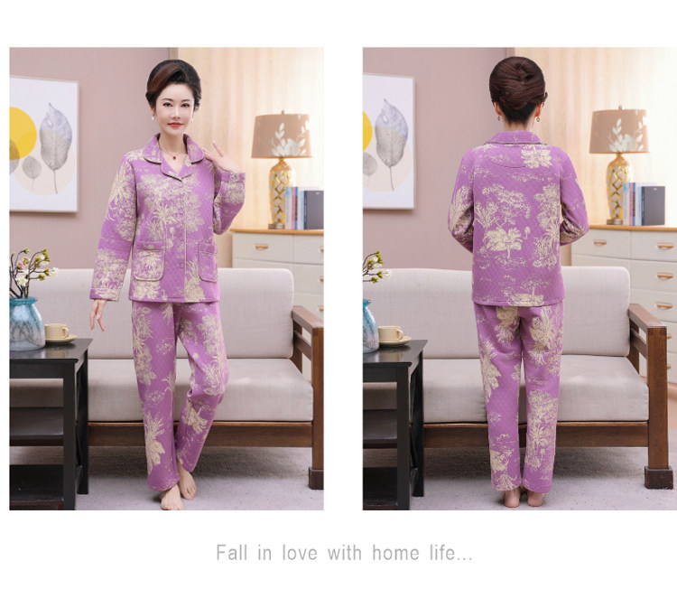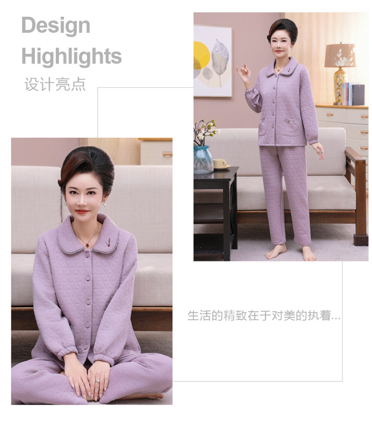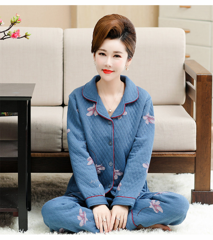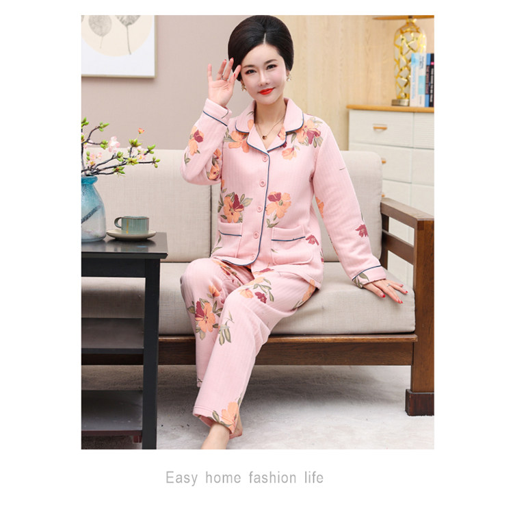 秋冬季夾層睡衣女士純棉加厚薄夾棉胖mm加大碼空氣棉家居服中年女