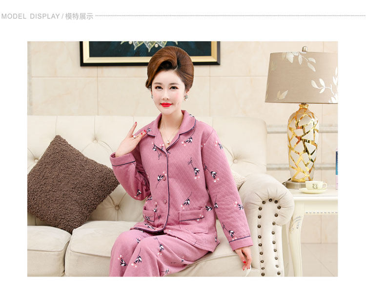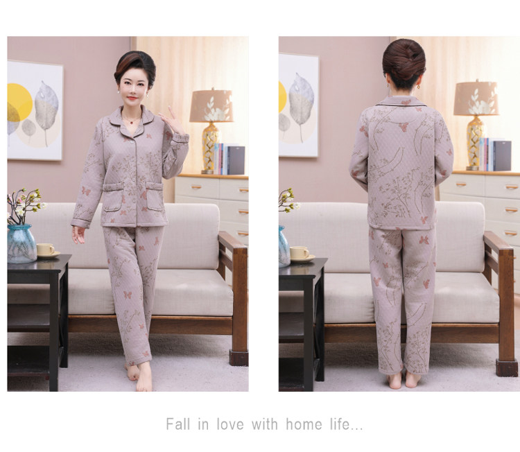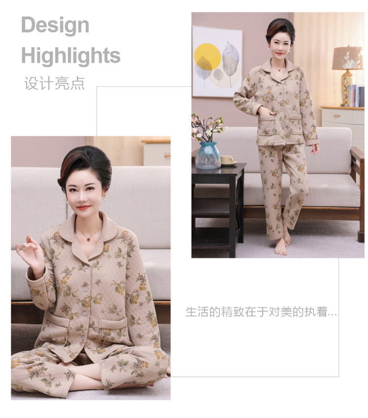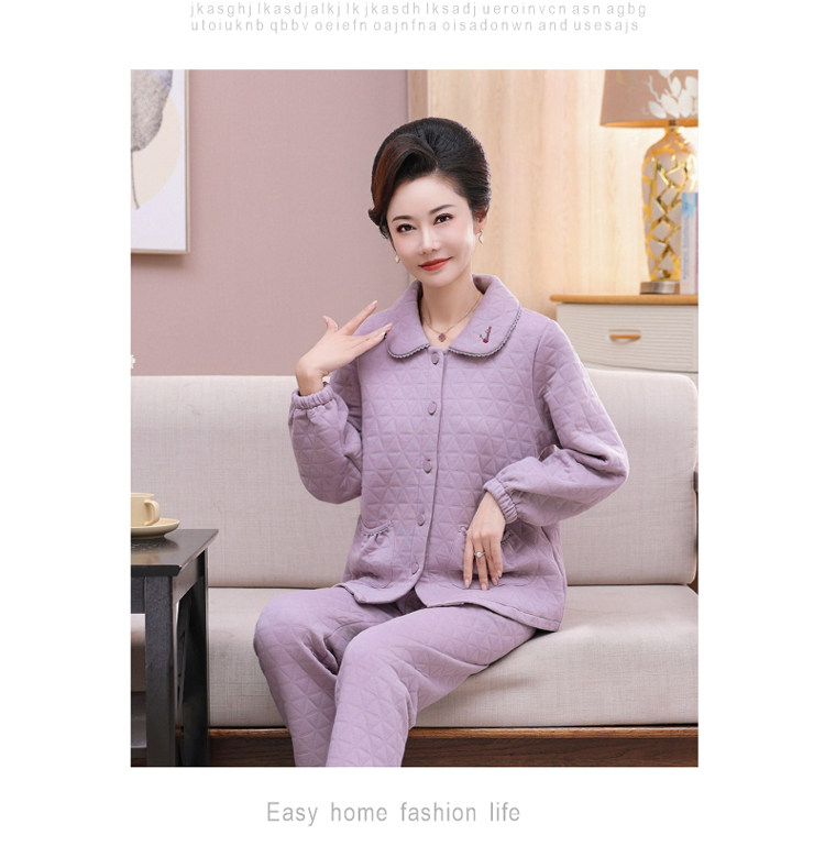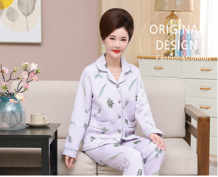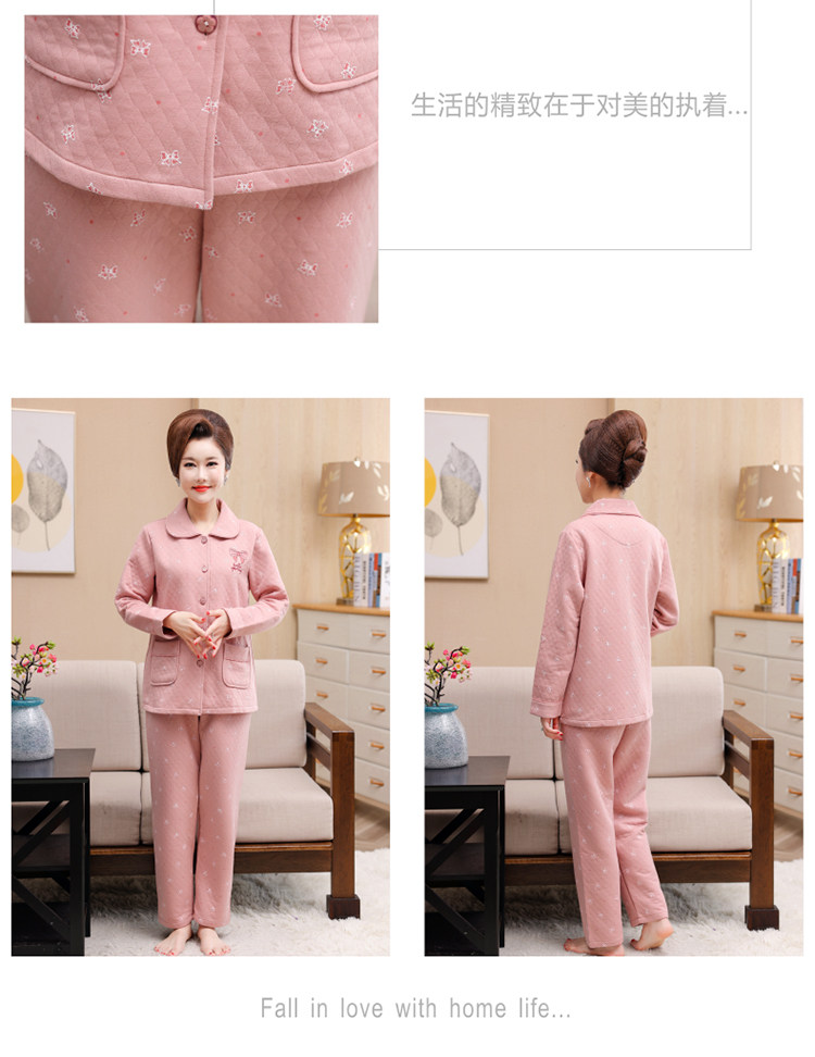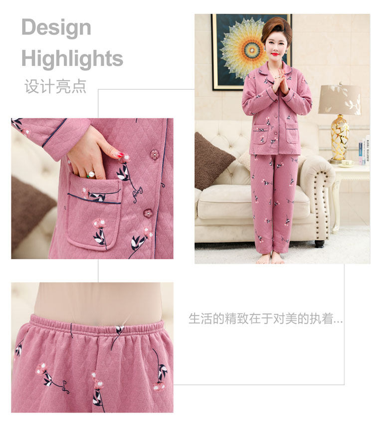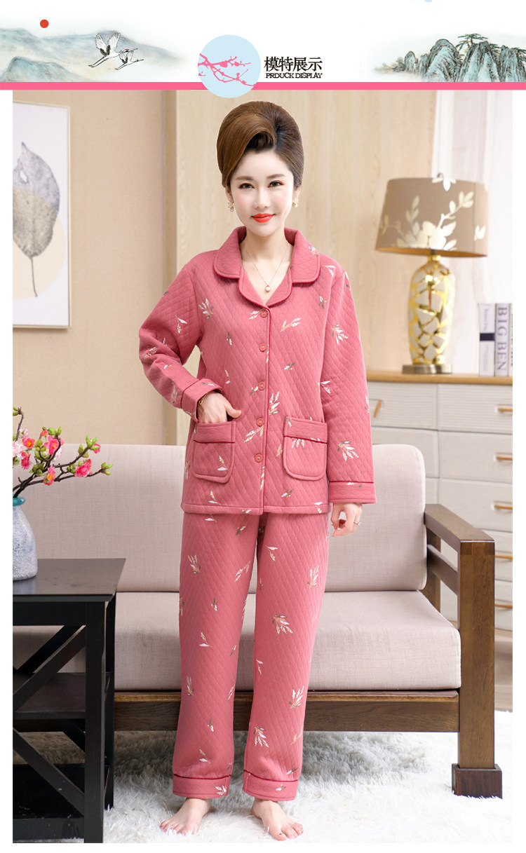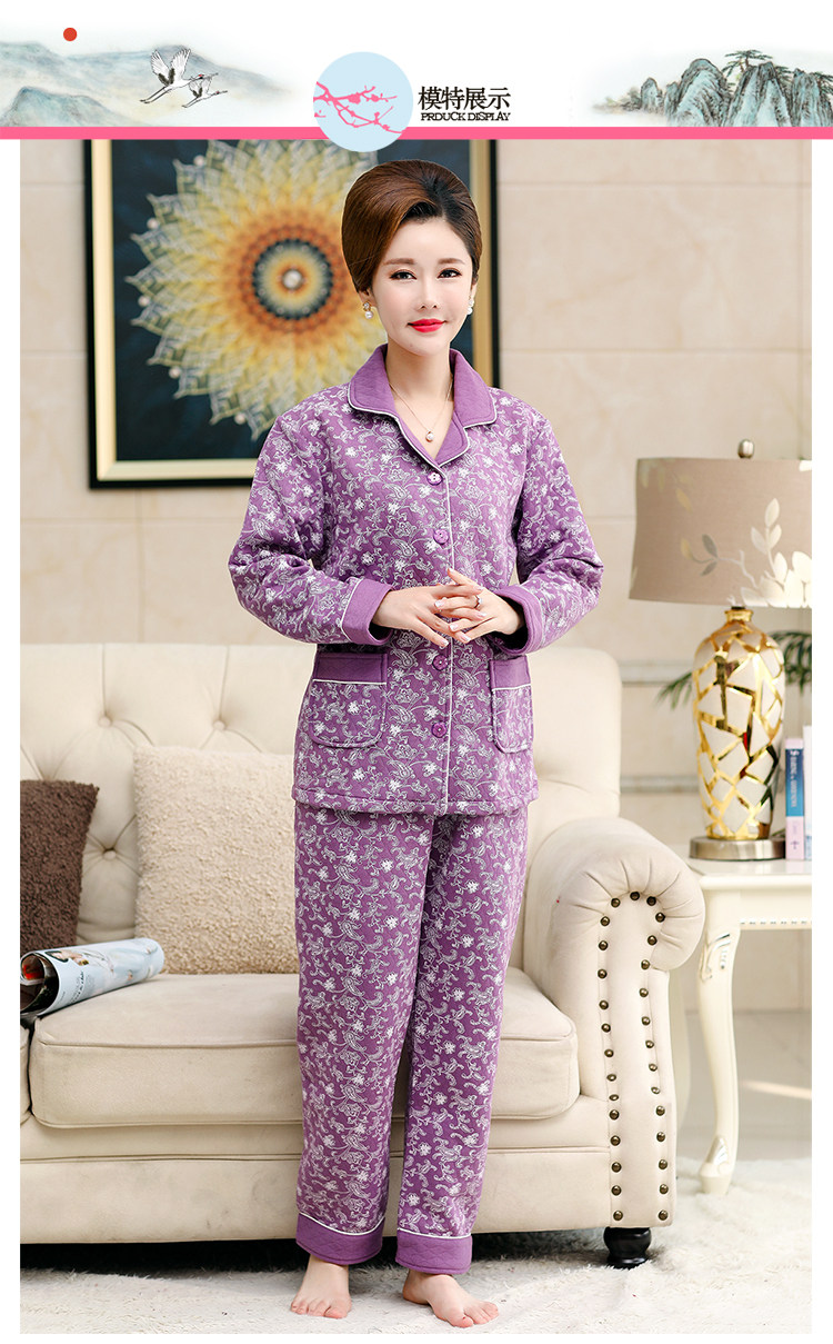 秋冬季夾層睡衣女士純棉加厚薄夾棉胖mm加大碼空氣棉家居服中年女
