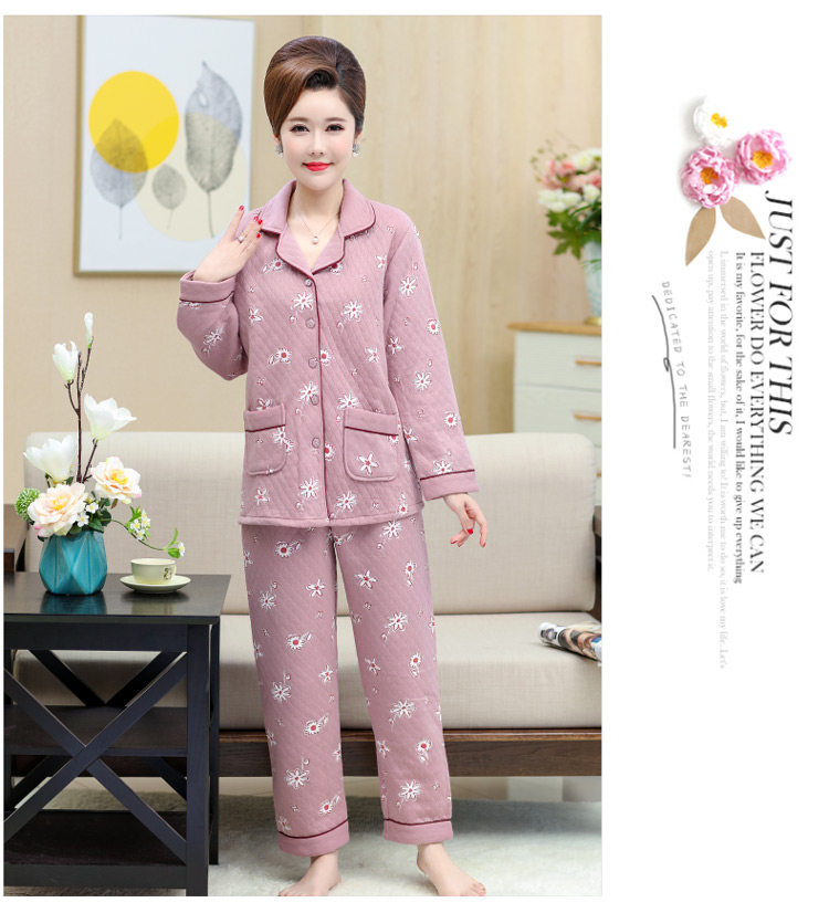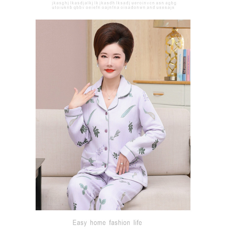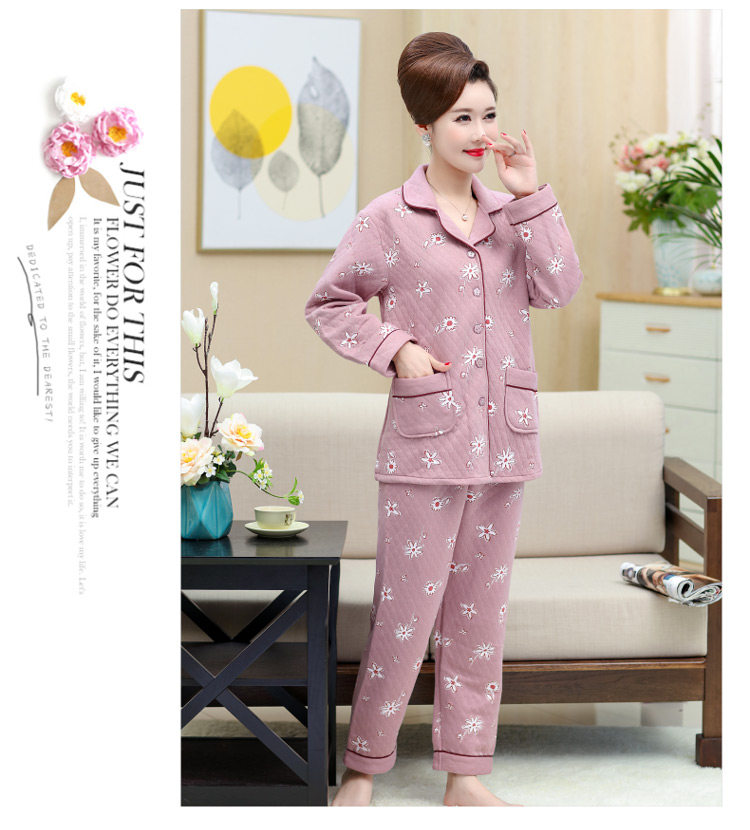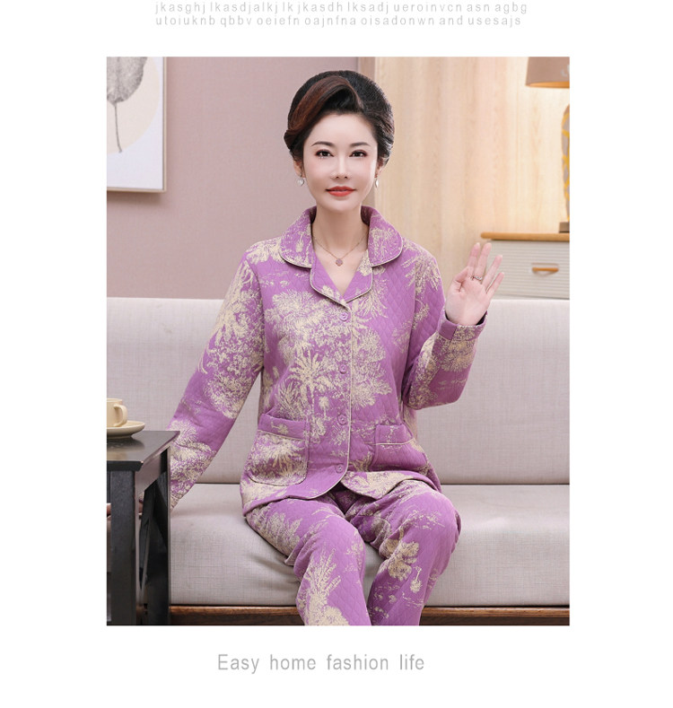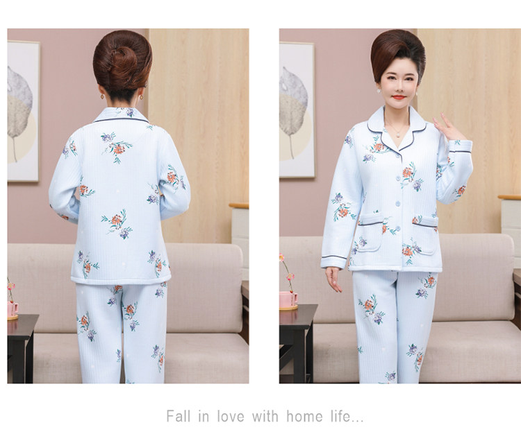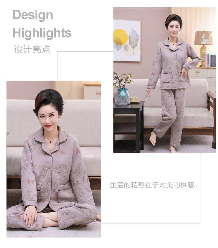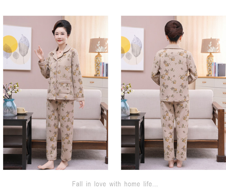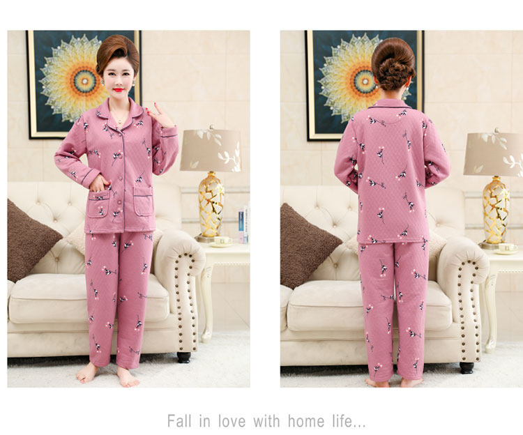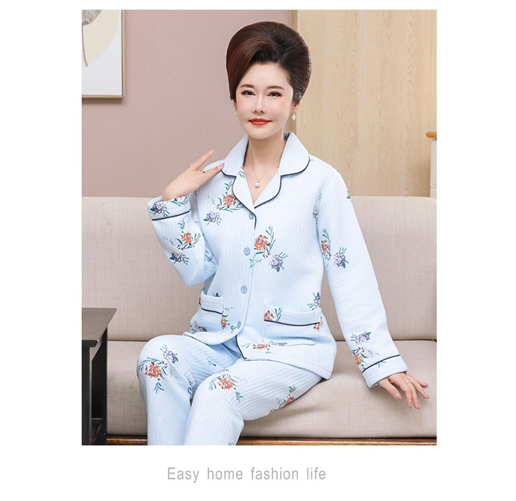 秋冬季夾層睡衣女士純棉加厚薄夾棉胖mm加大碼空氣棉家居服中年女