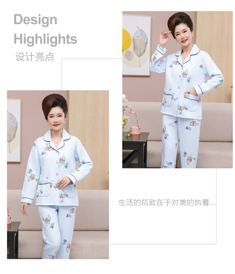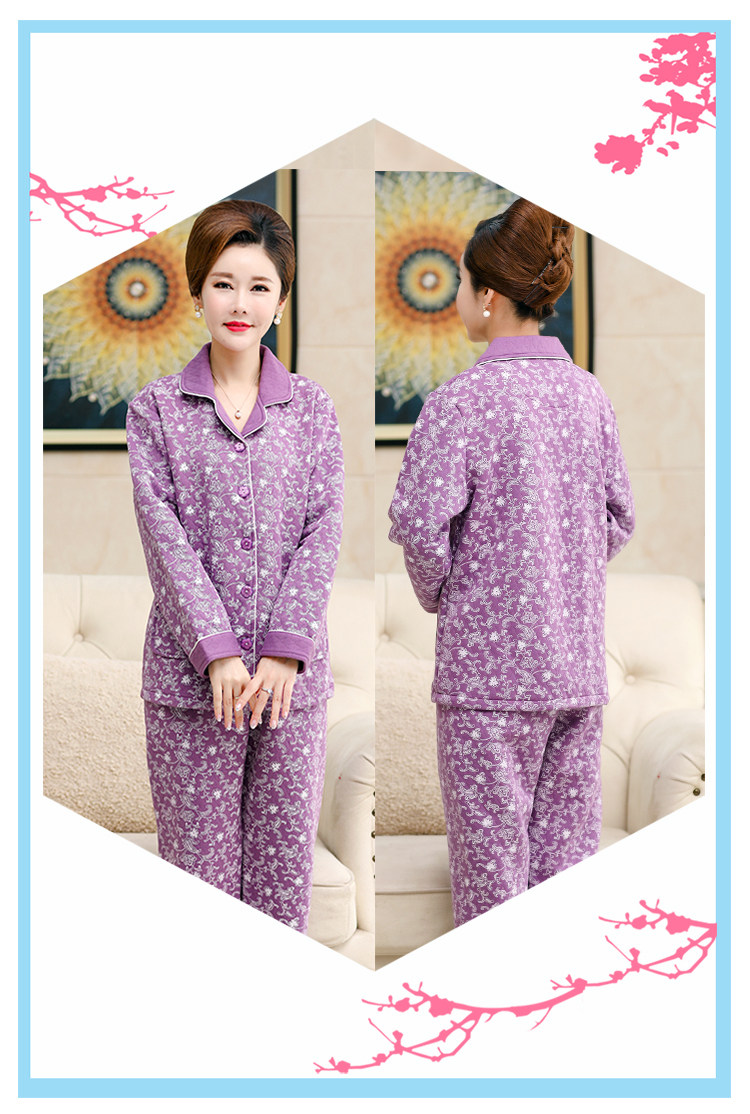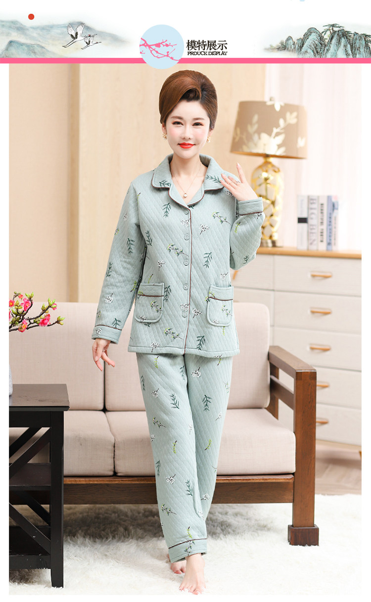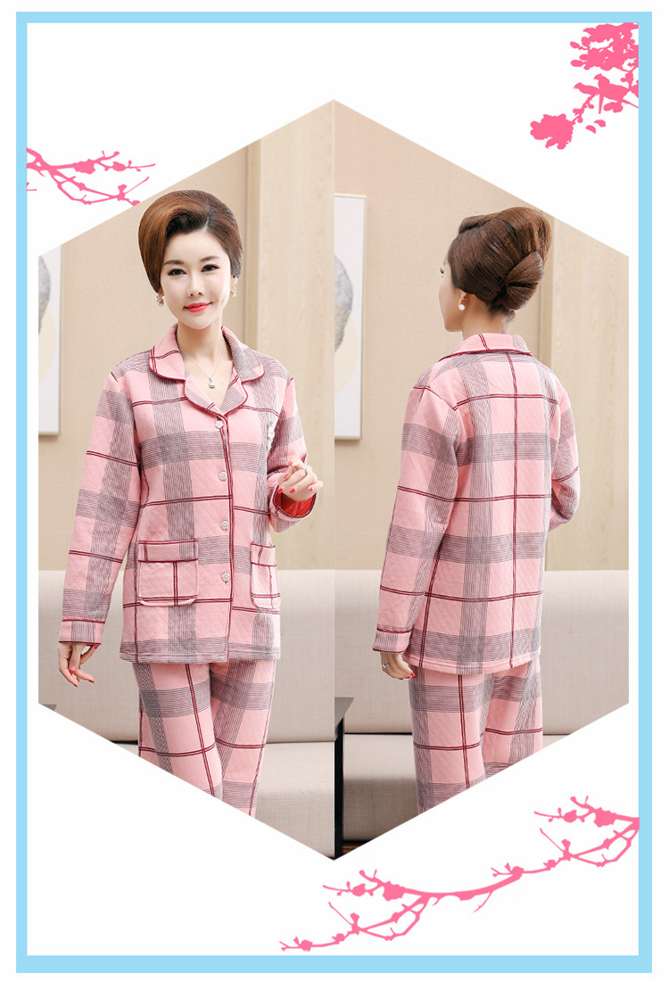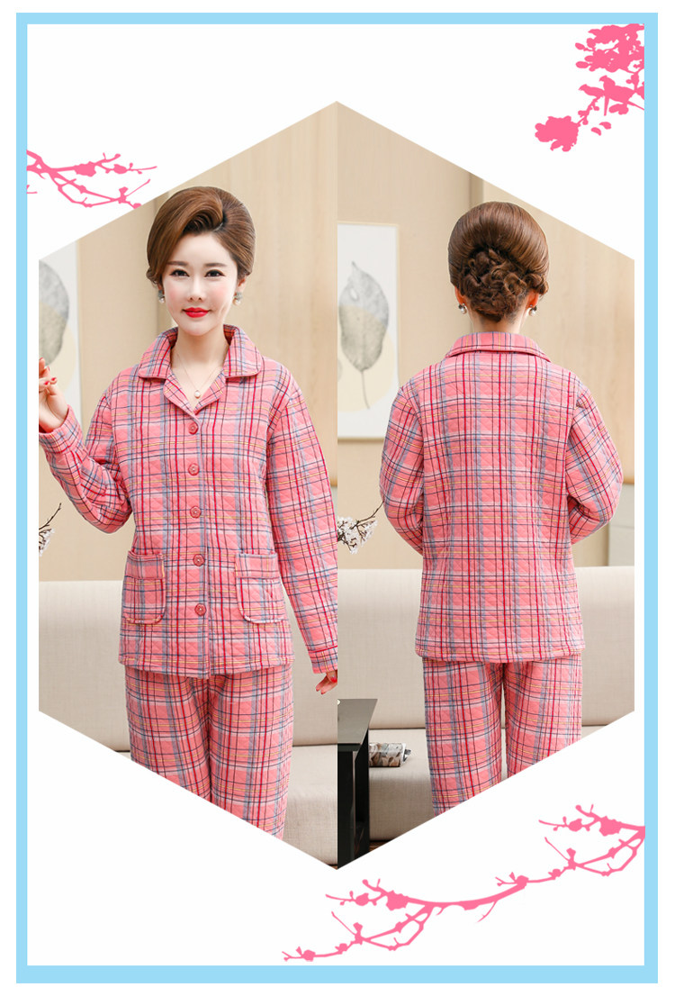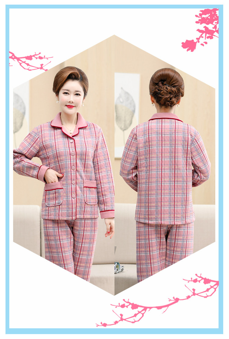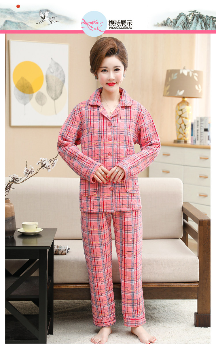 秋冬季夾層睡衣女士純棉加厚薄夾棉胖mm加大碼空氣棉家居服中年女