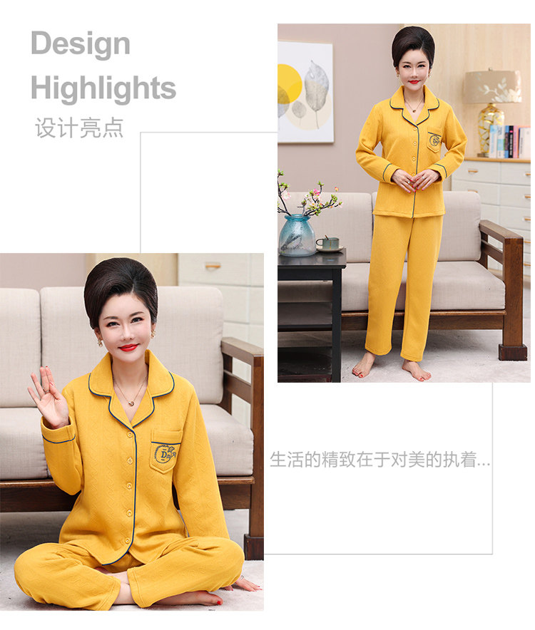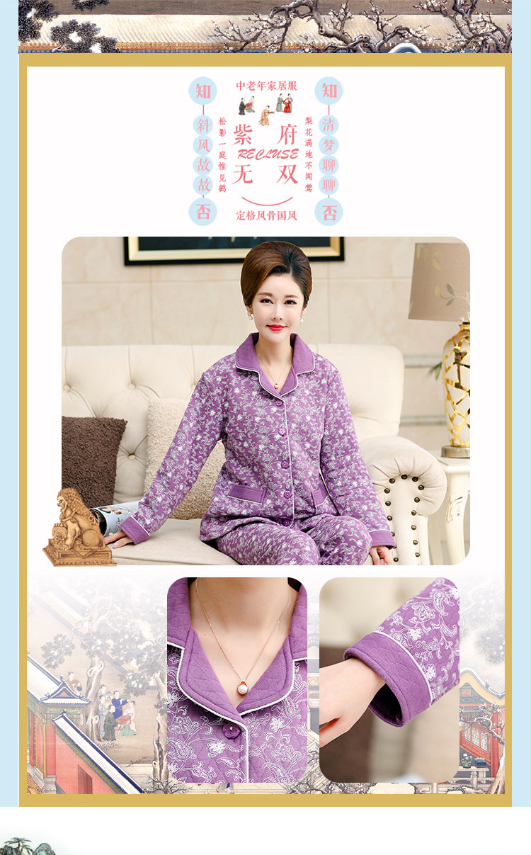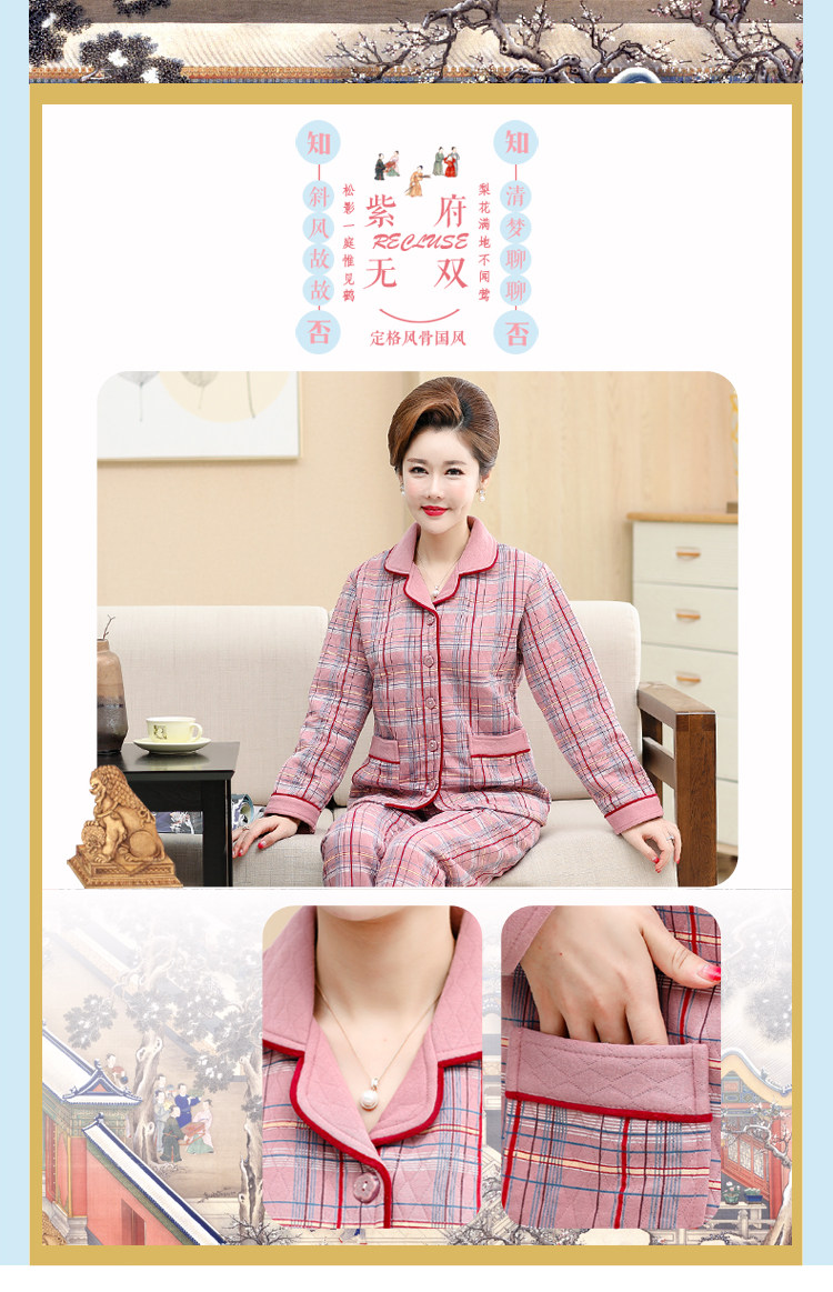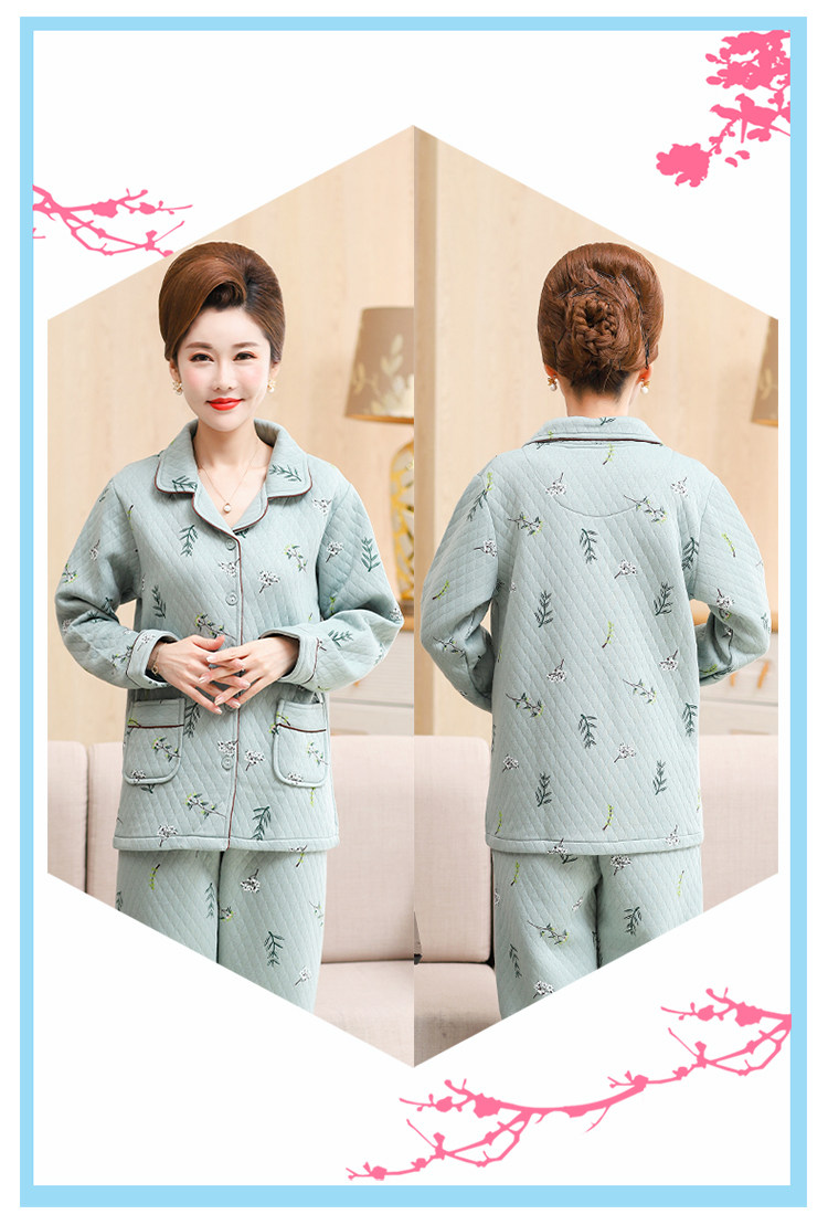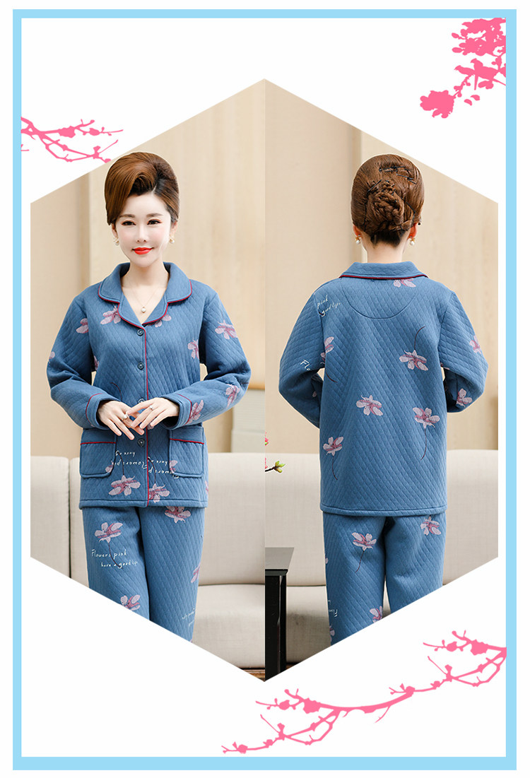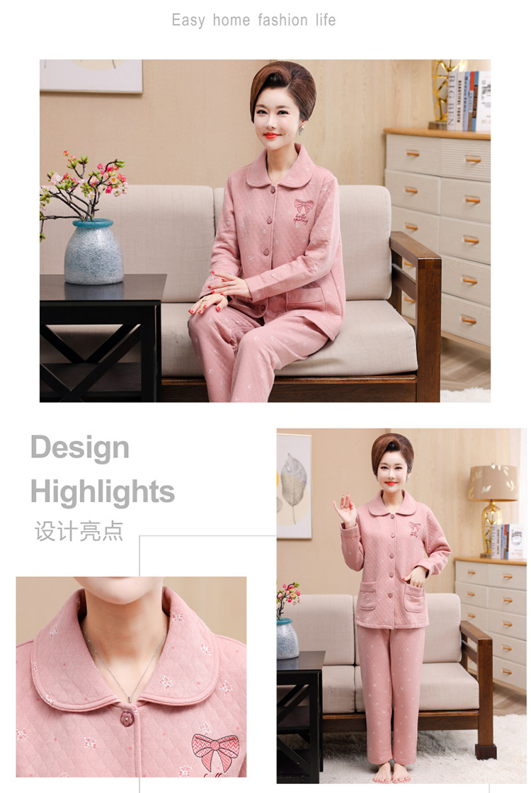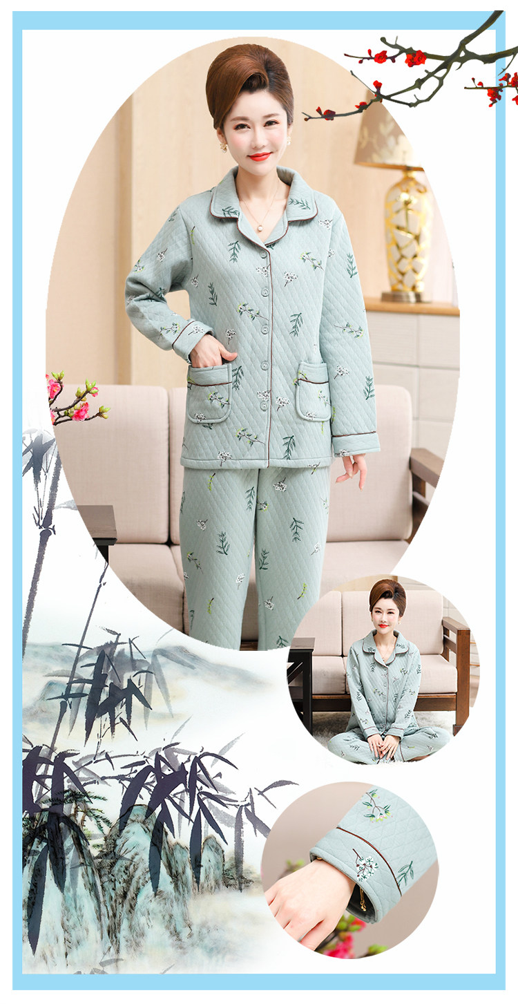 秋冬季夾層睡衣女士純棉加厚薄夾棉胖mm加大碼空氣棉家居服中年女