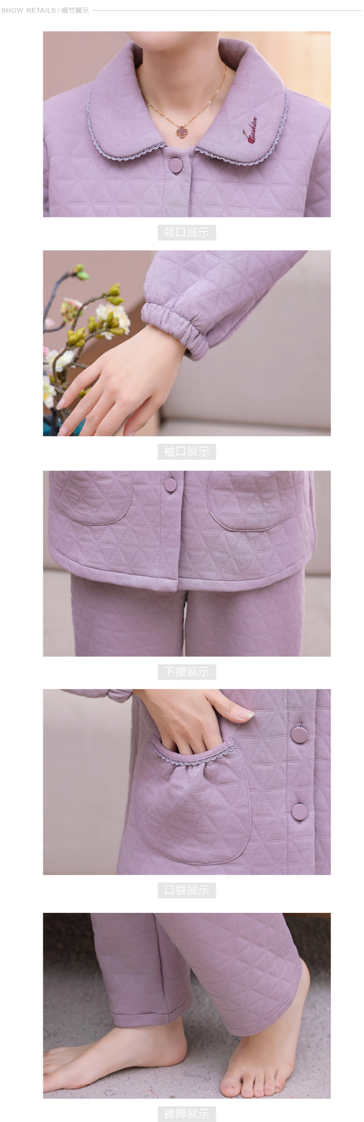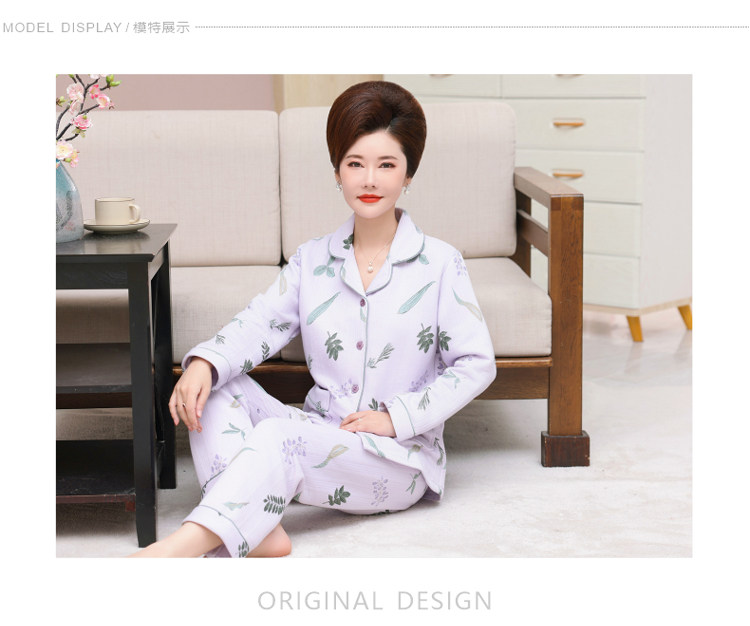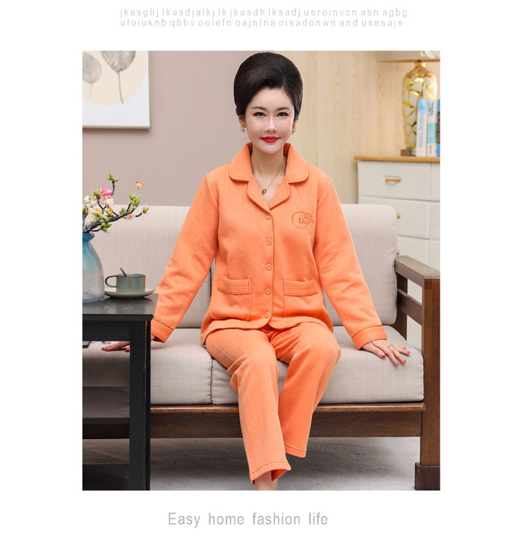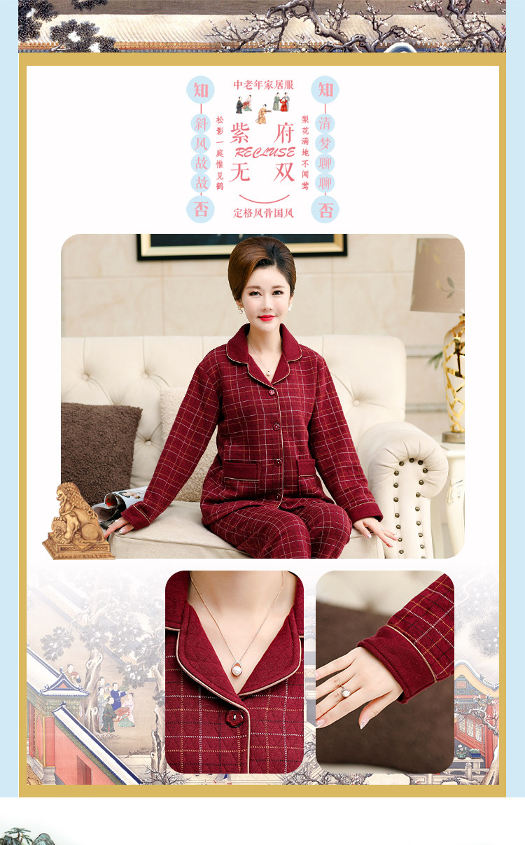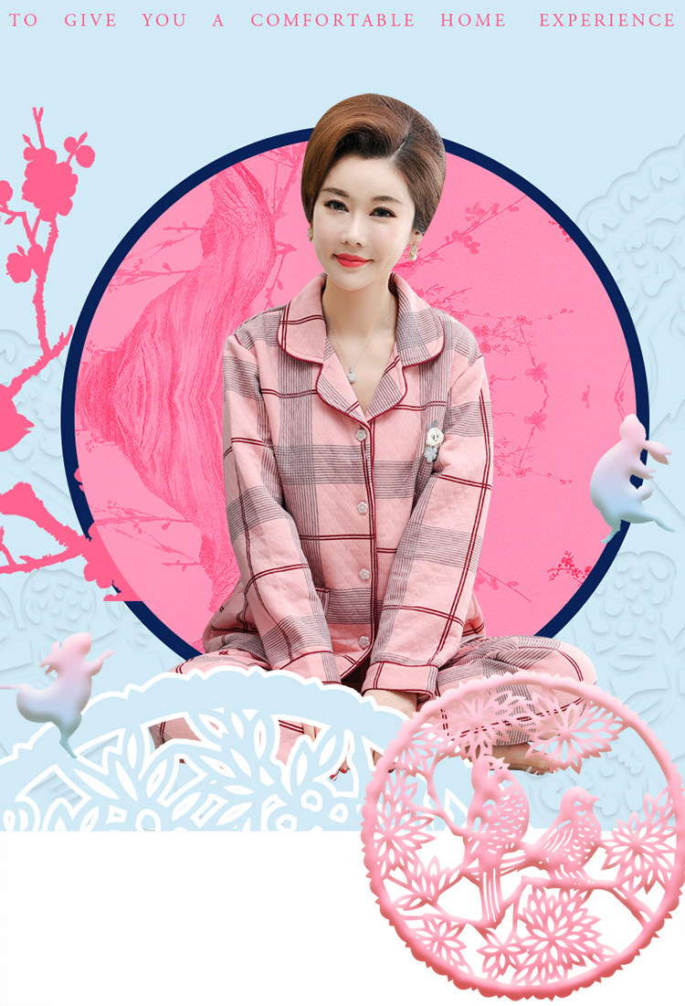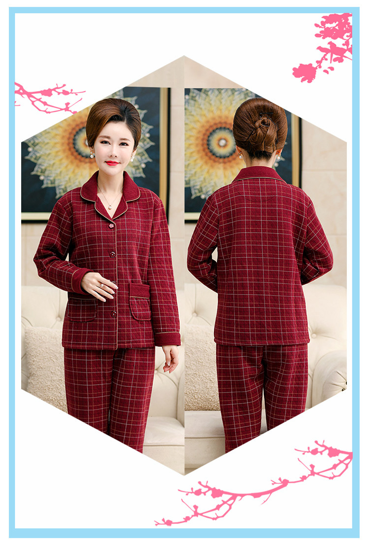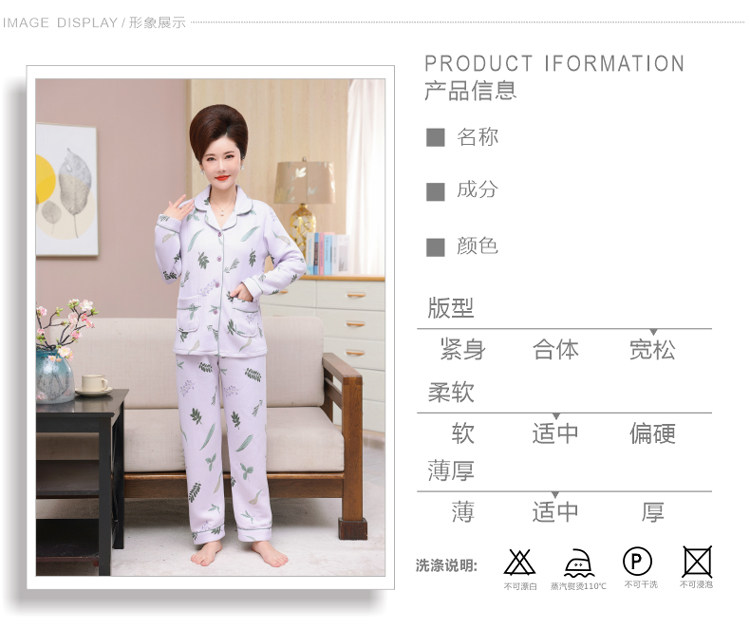 秋冬季夾層睡衣女士純棉加厚薄夾棉胖mm加大碼空氣棉家居服中年女