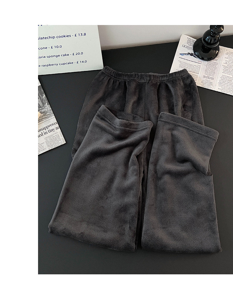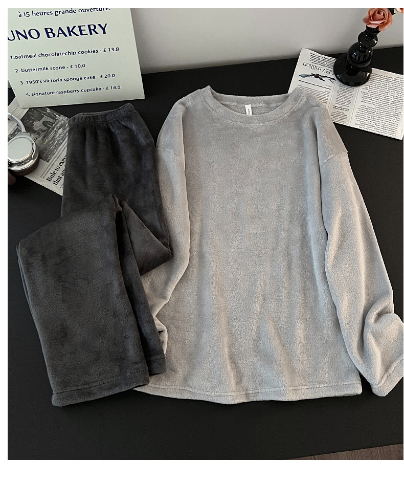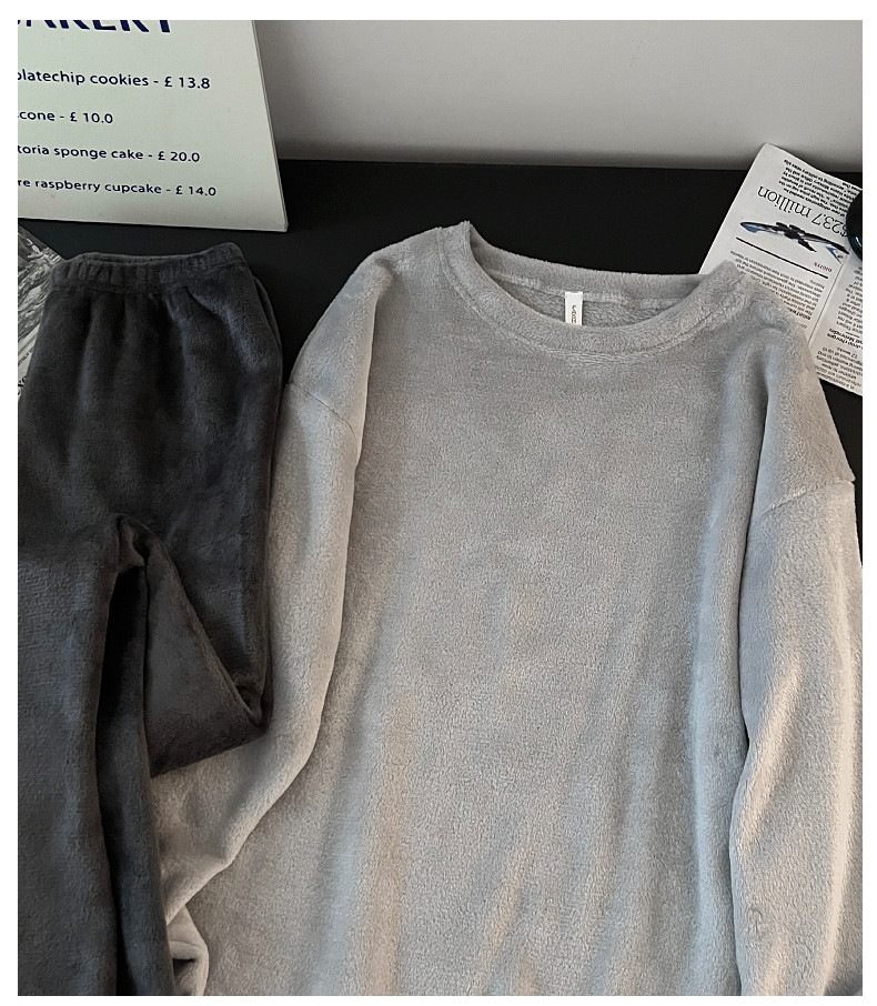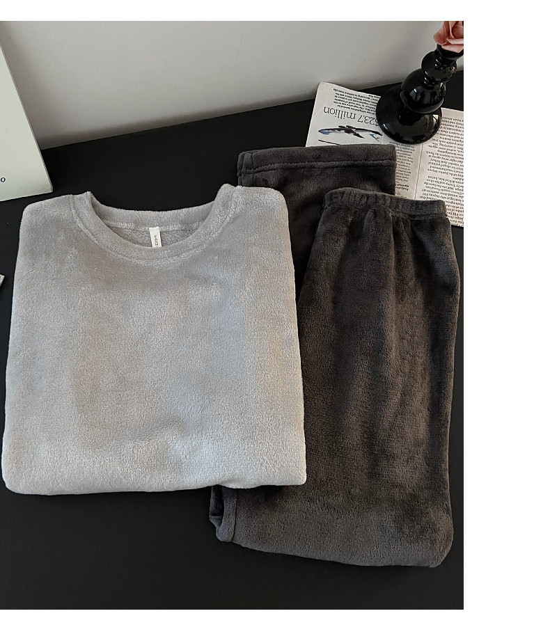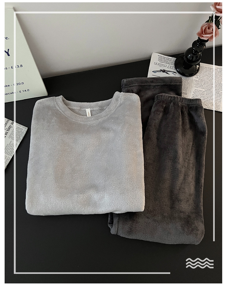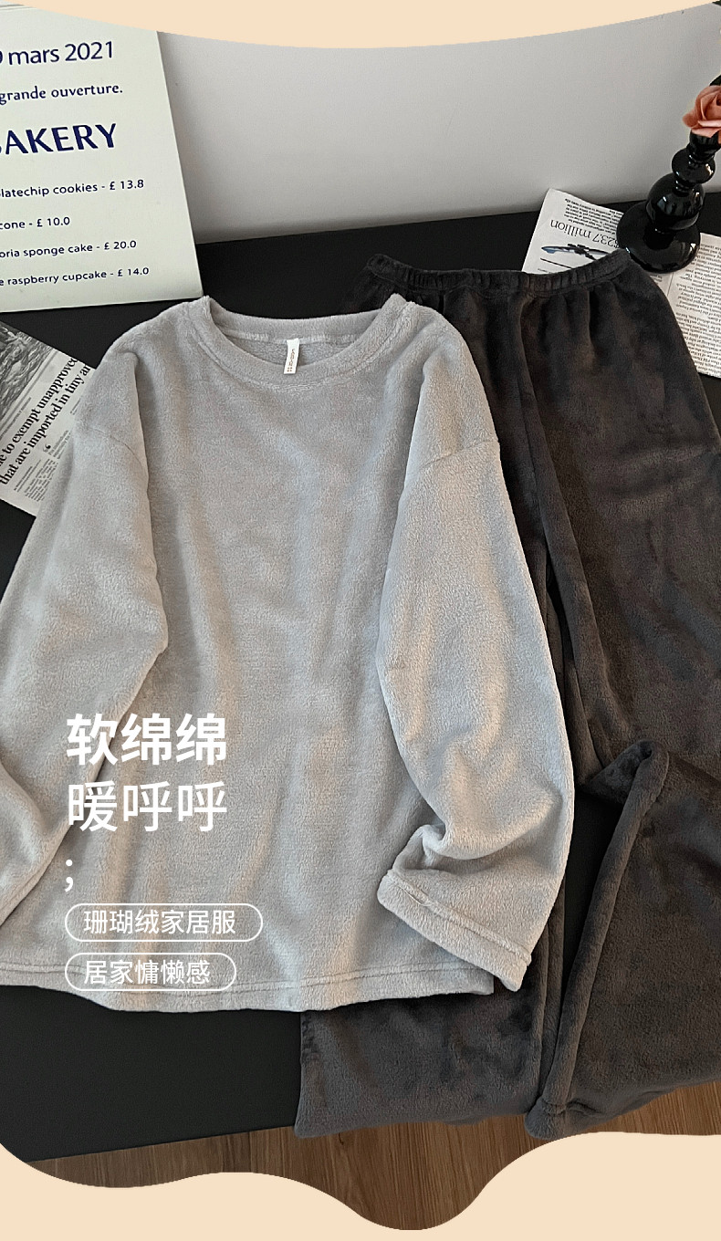 珊瑚絨情侶睡衣男女士加絨保暖法蘭絨秋冬款純色可外穿家居服套裝