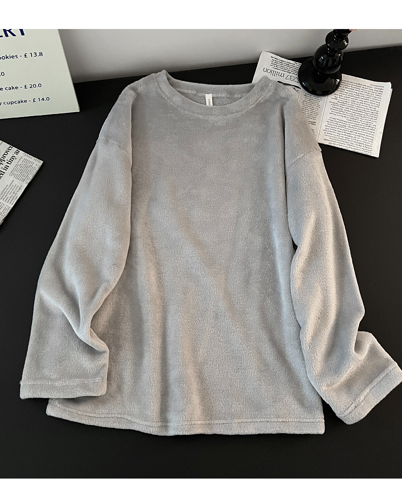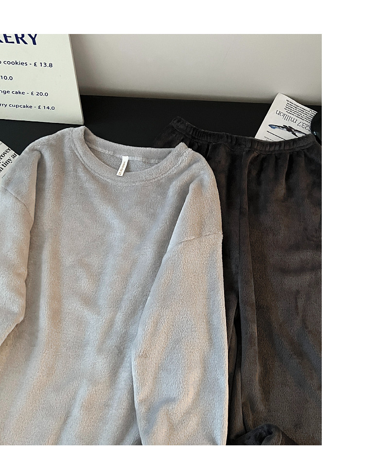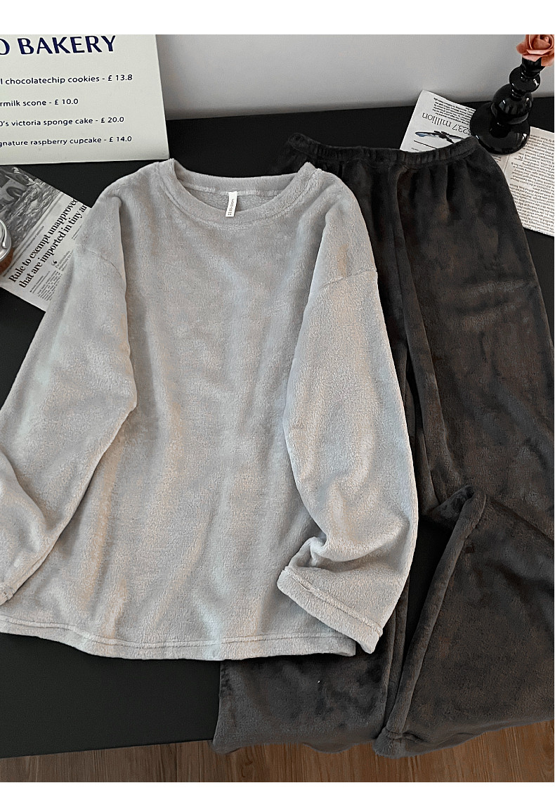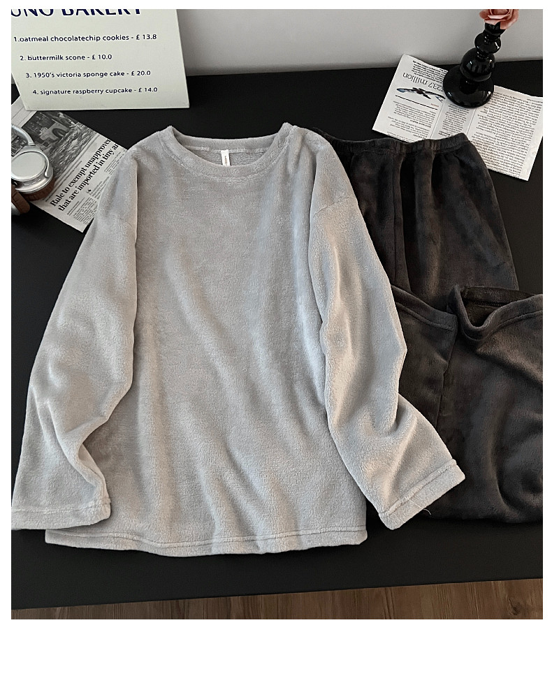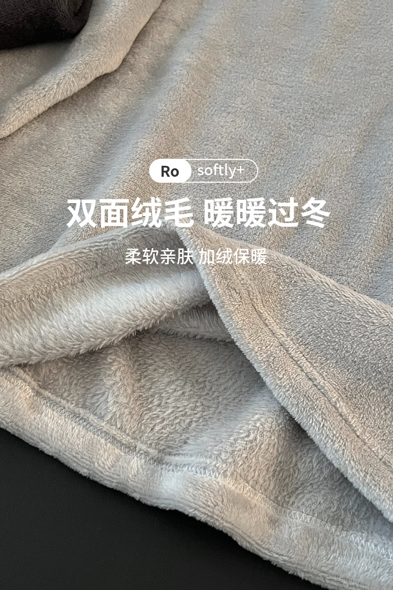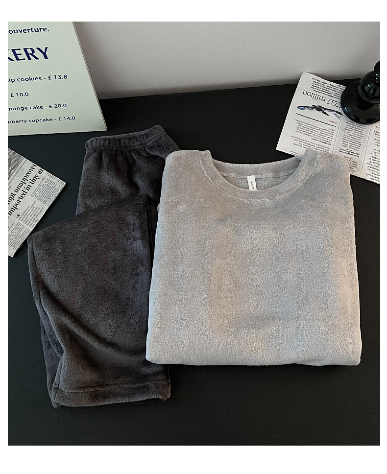 珊瑚絨情侶睡衣男女士加絨保暖法蘭絨秋冬款純色可外穿家居服套裝
