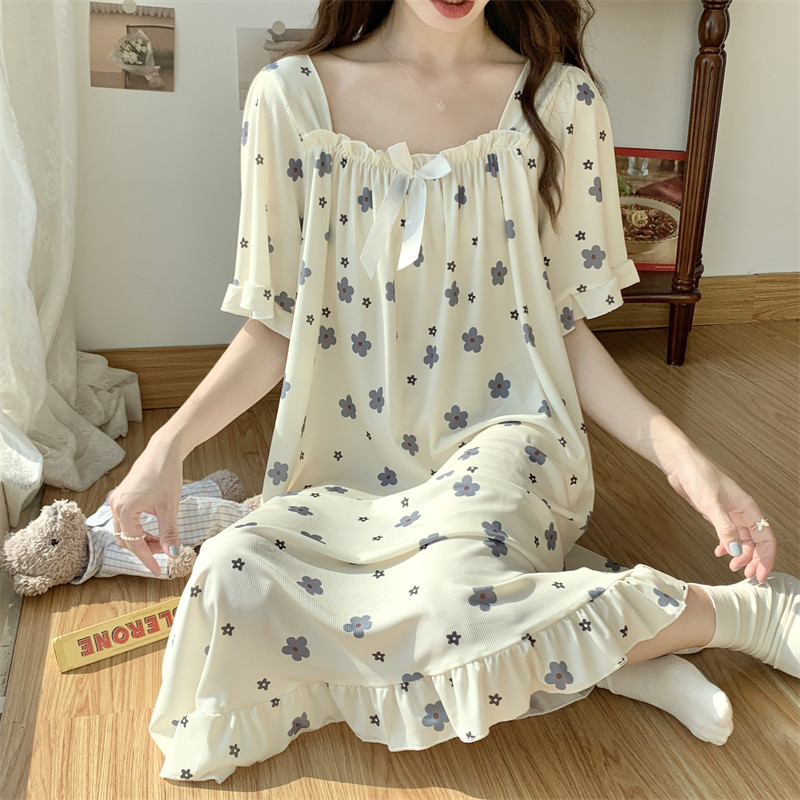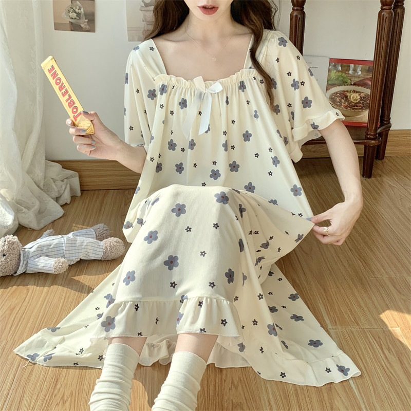 睡衣女夏網紅風冰絲夏季薄款甜美日系睡裙大碼200斤胖女孩睡衣裙