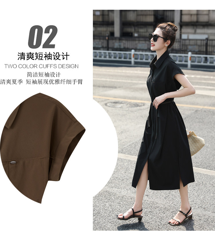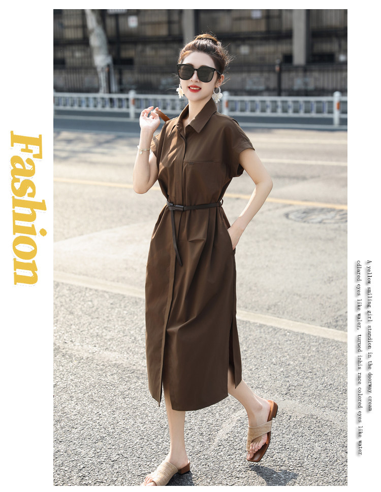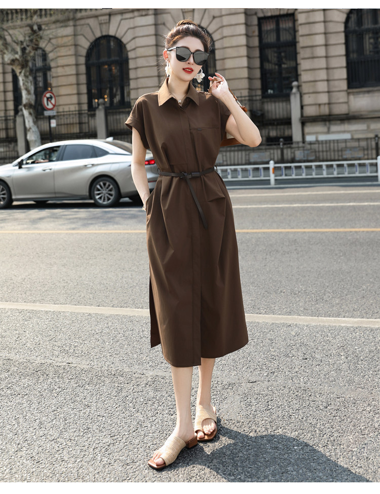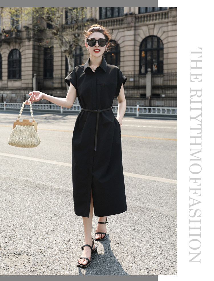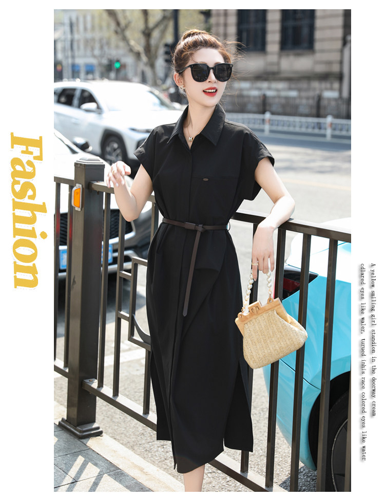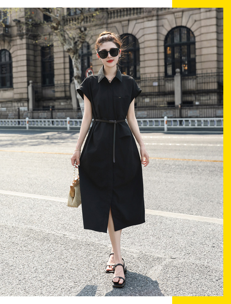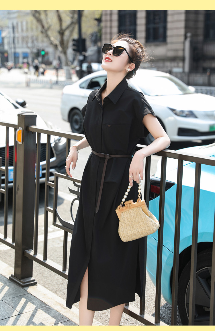歐貨赫本風連衣裙女2026夏季新款氣質休閒OL收腰顯瘦開叉襯衫裙子