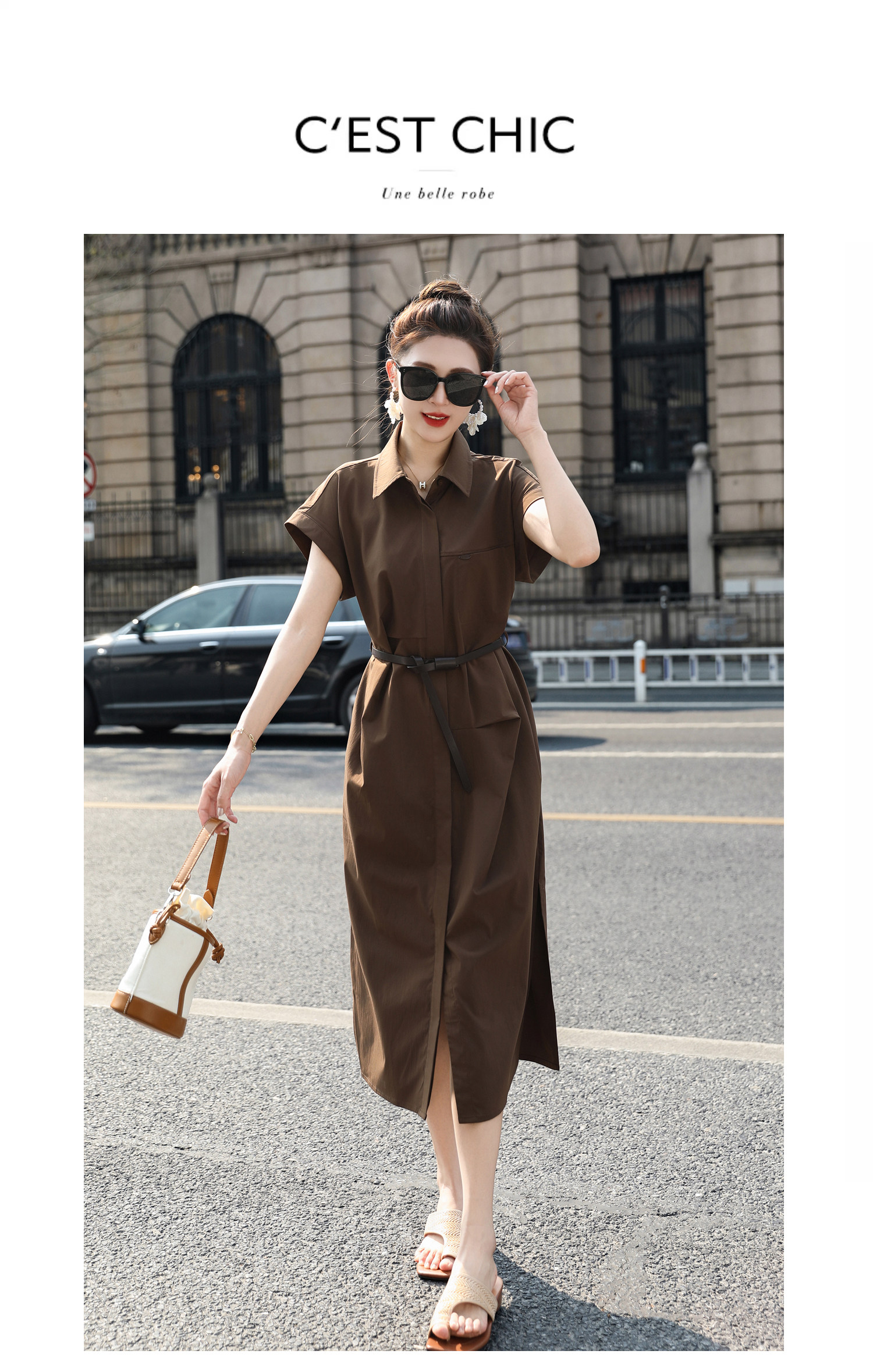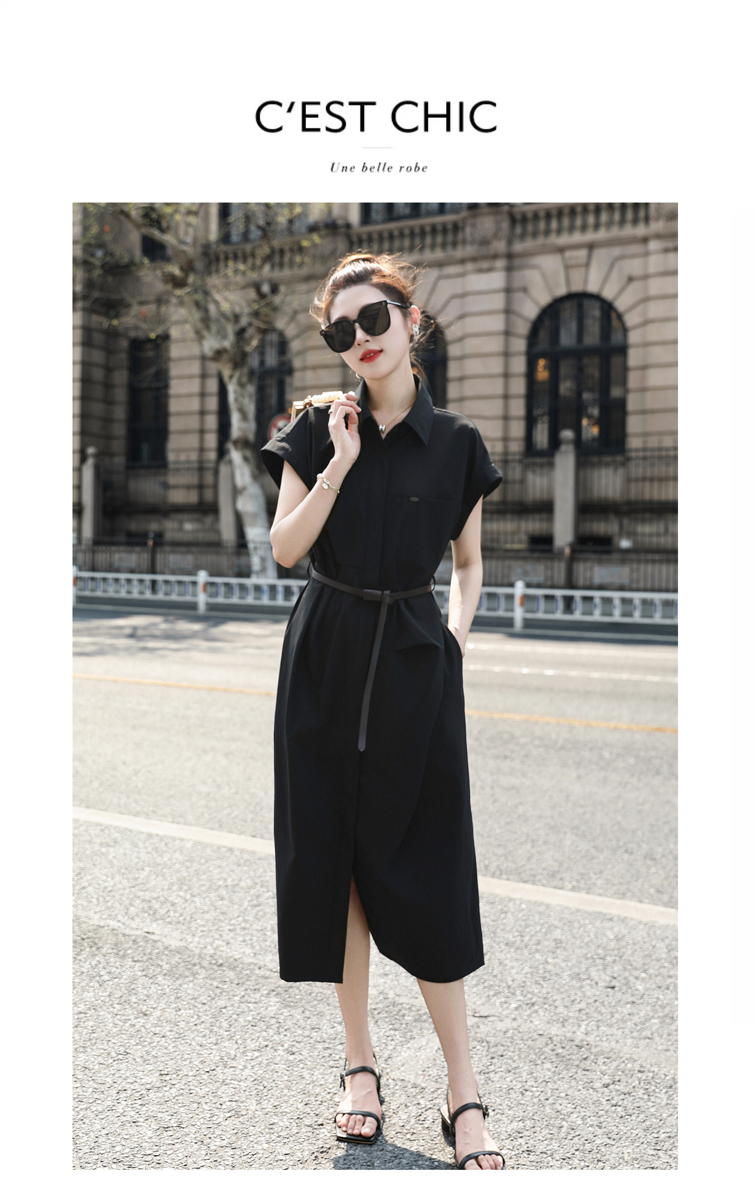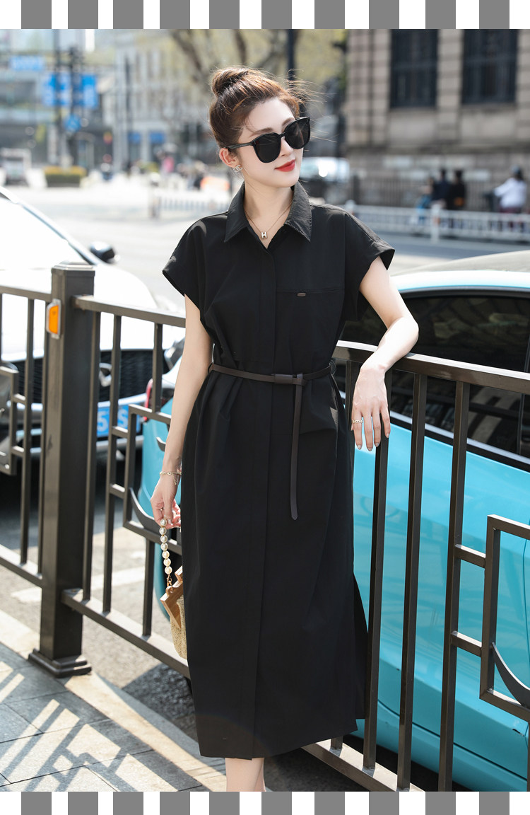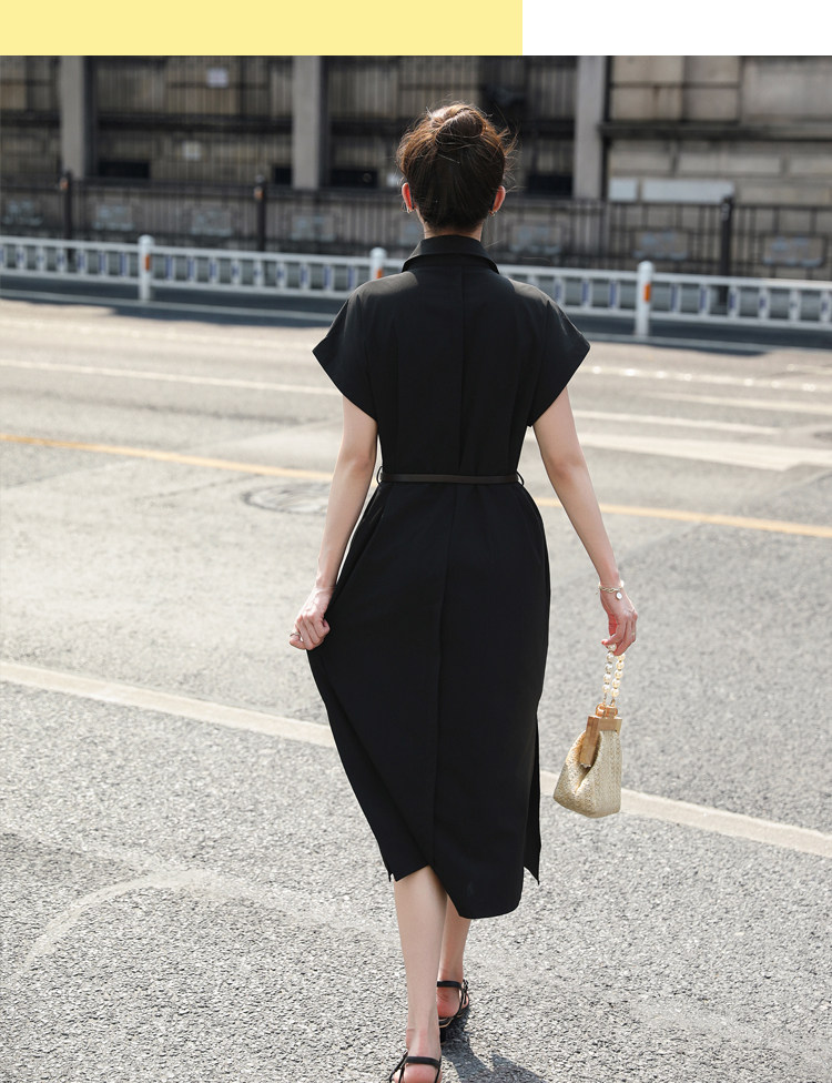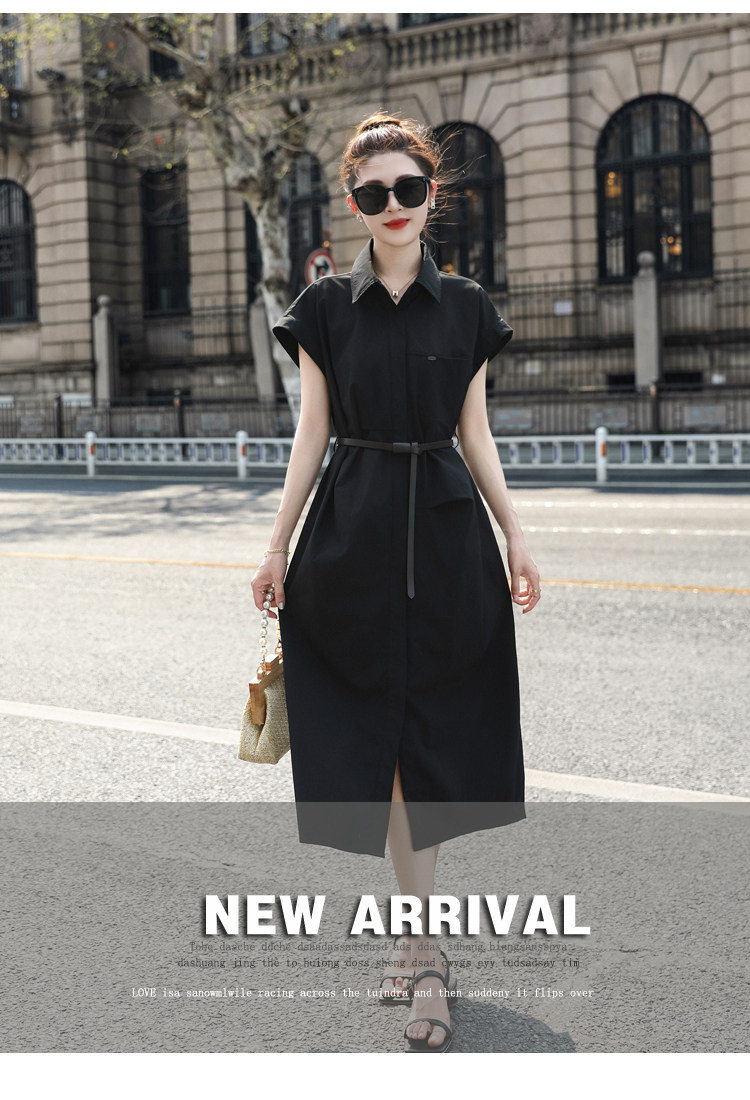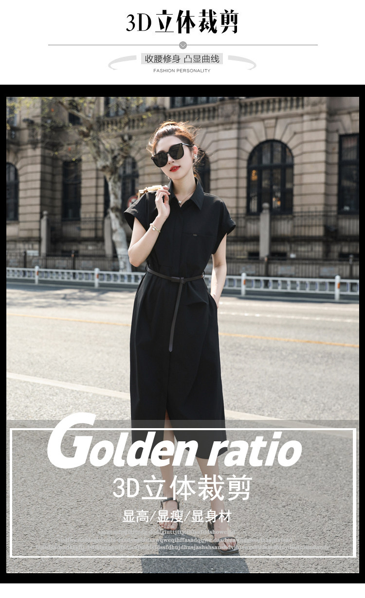 歐貨赫本風連衣裙女2026夏季新款氣質休閒OL收腰顯瘦開叉襯衫裙子