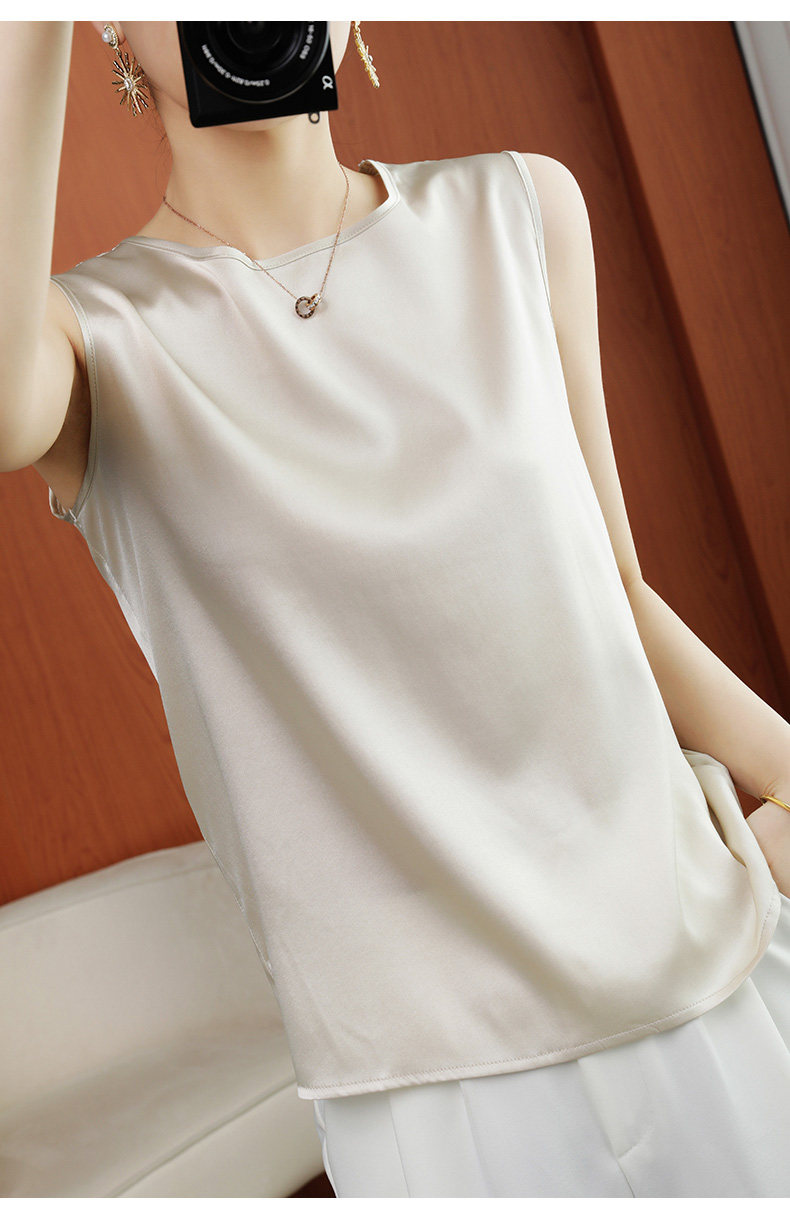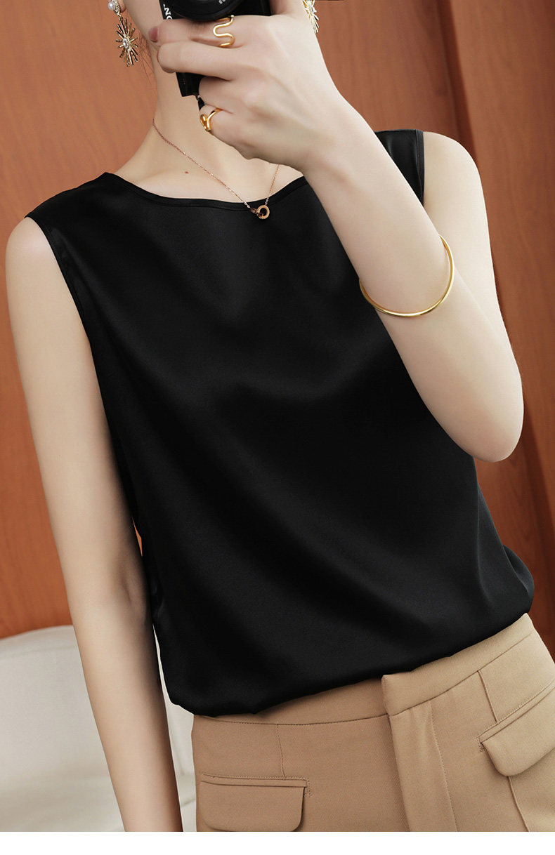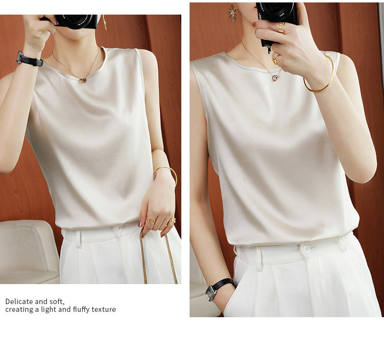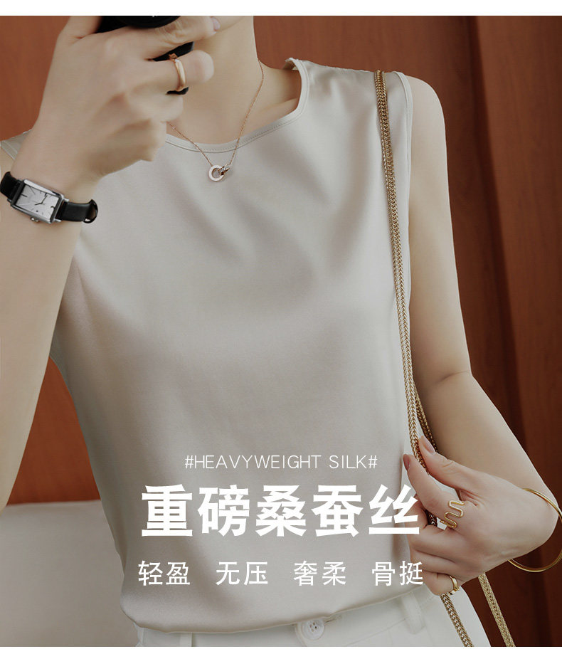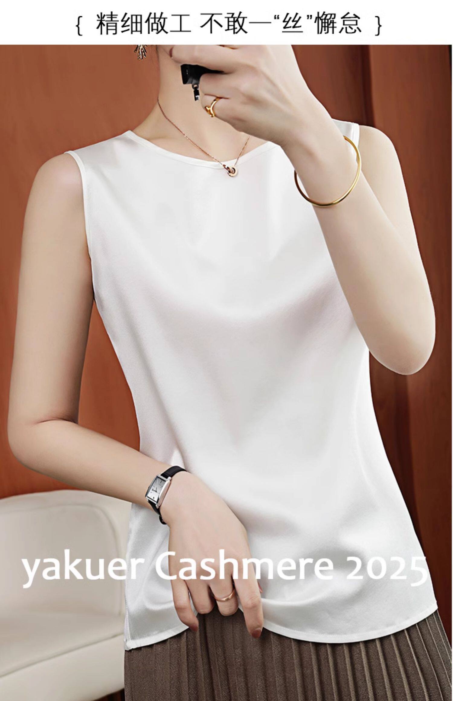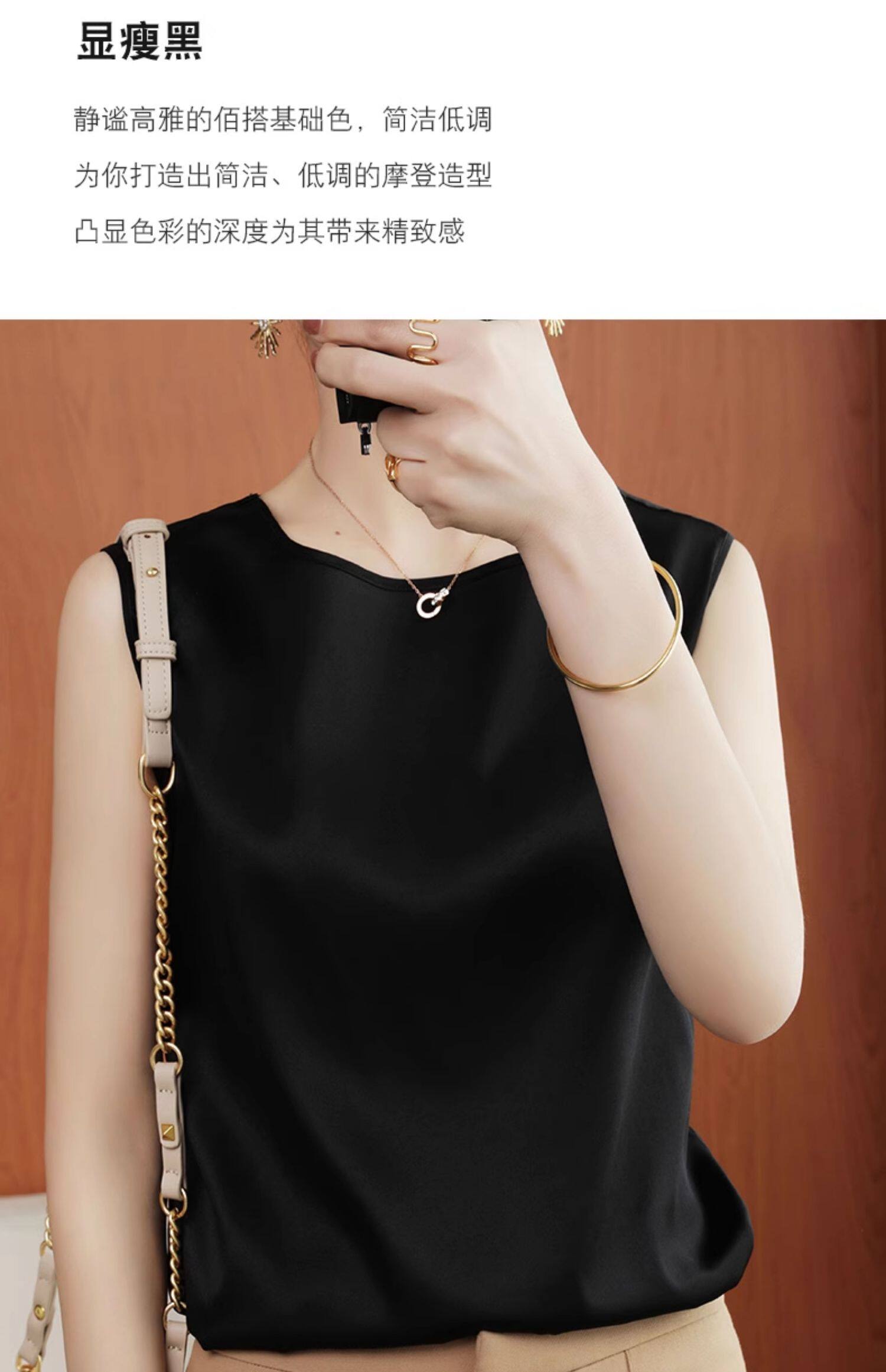19姆米無袖真絲上衣女2025春夏100%桑蠶絲小背心西裝內搭打底衫