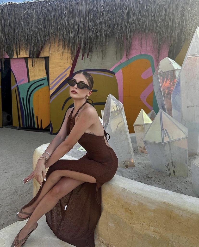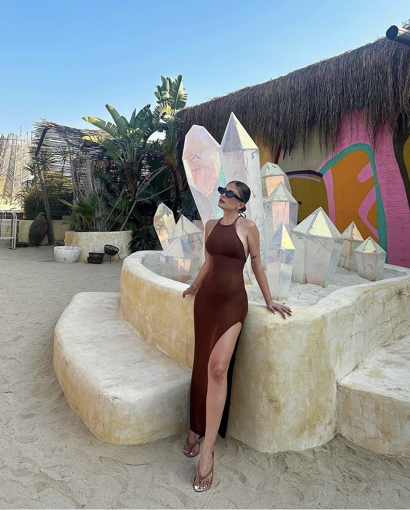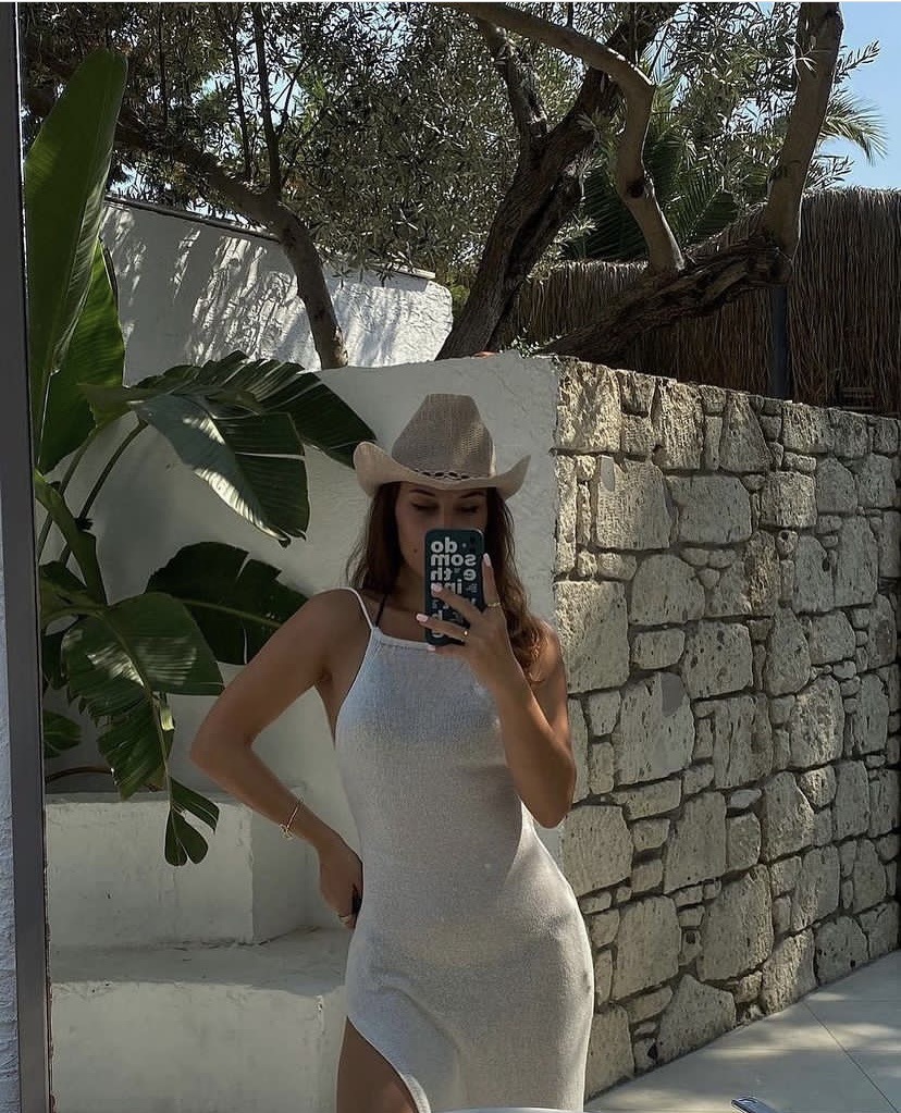 2024新款爆款雙側高開叉吊帶美背針織連衣裙沙灘度假風連