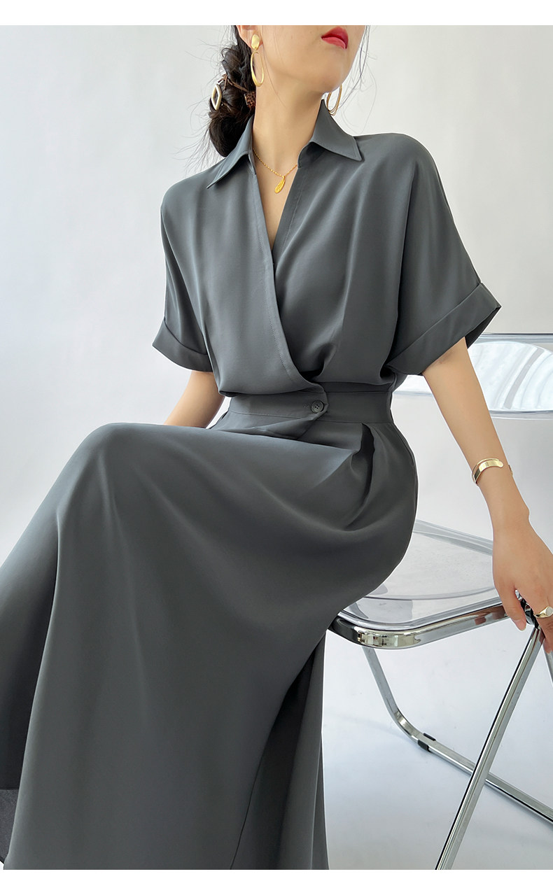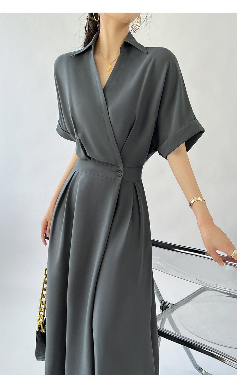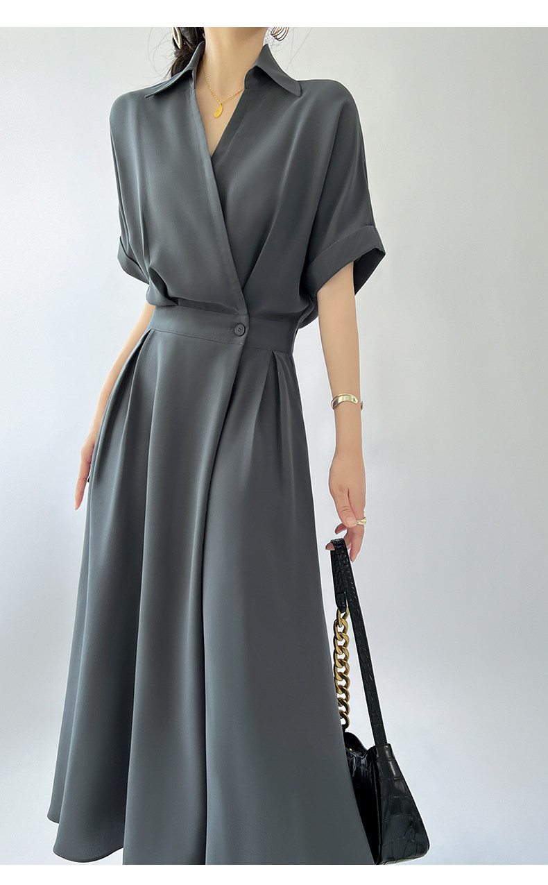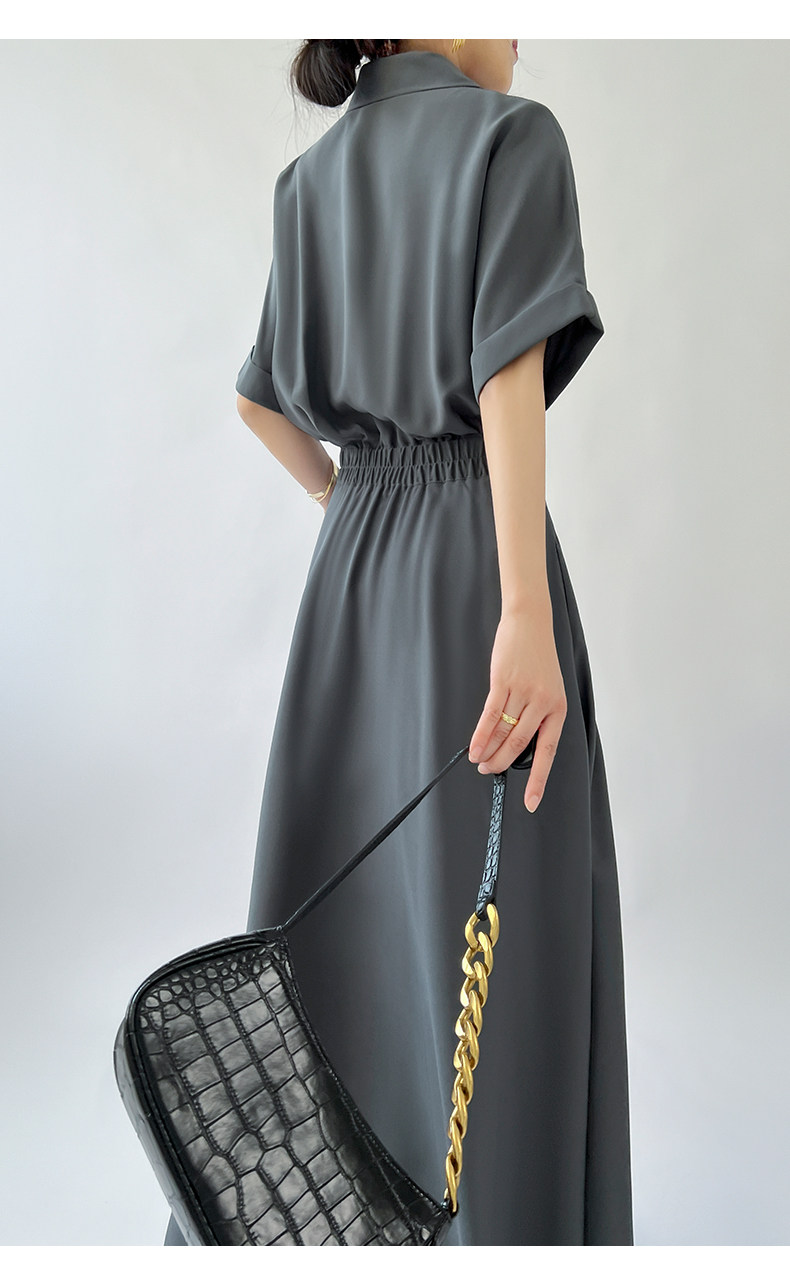 冰感抗皺襯衫連衣裙女夏新款收腰顯瘦長裙氣質通勤高級感灰色裙子