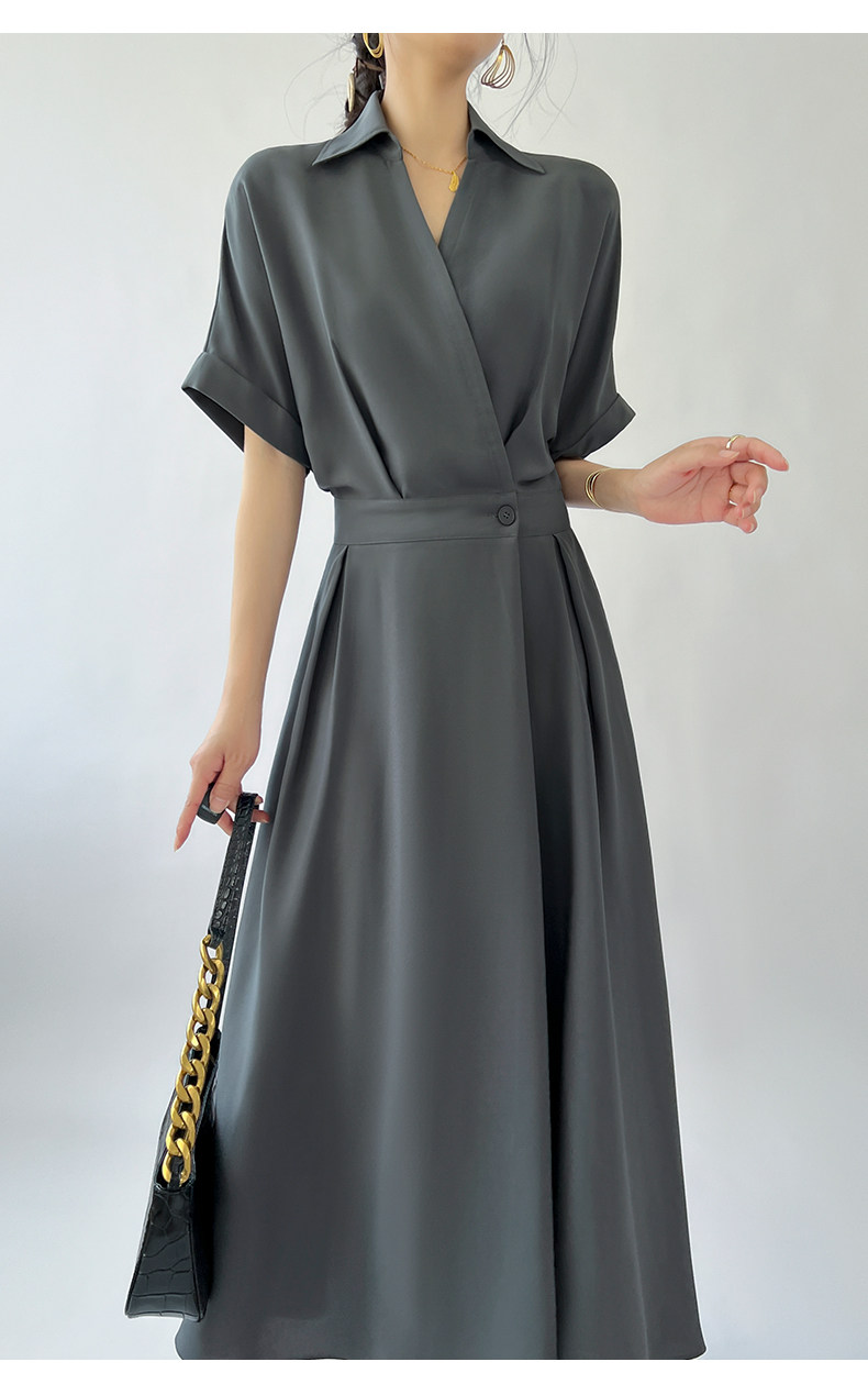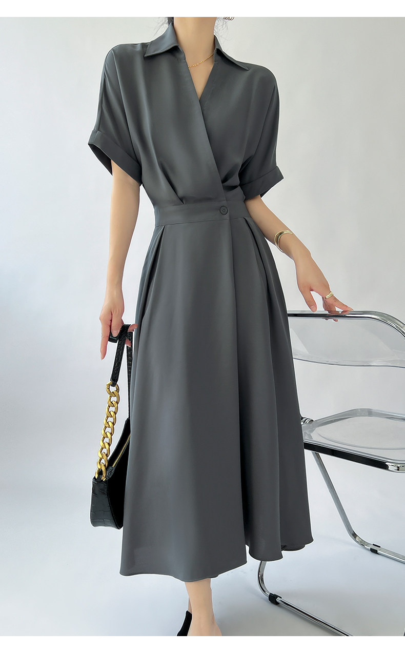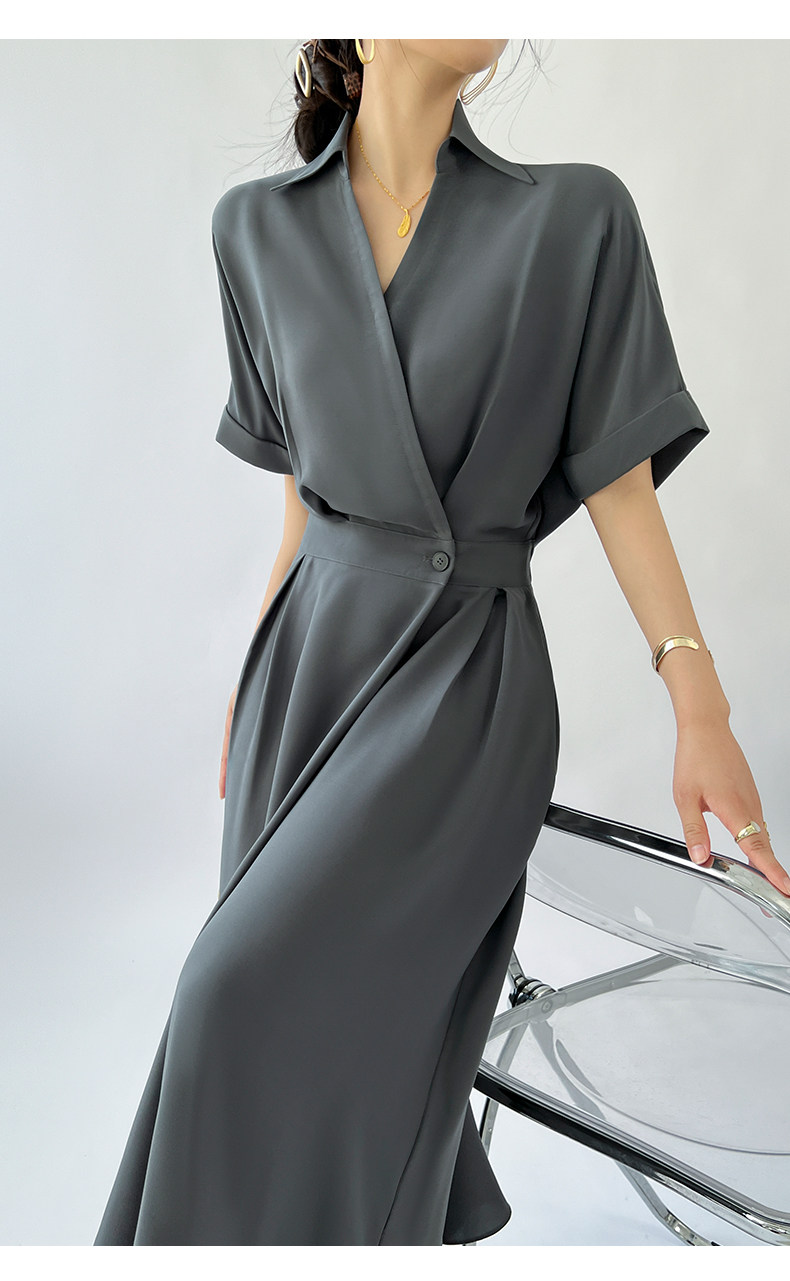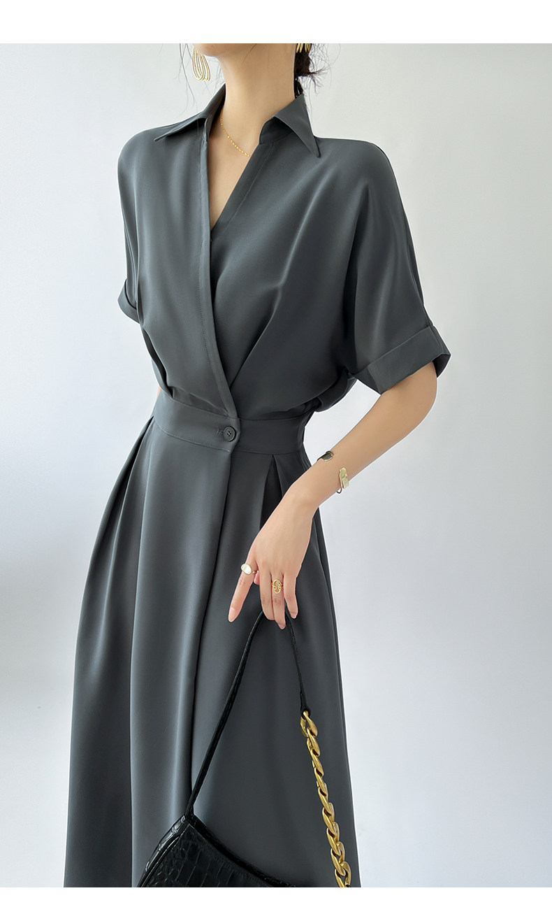 冰感抗皺襯衫連衣裙女夏新款收腰顯瘦長裙氣質通勤高級感灰色裙子