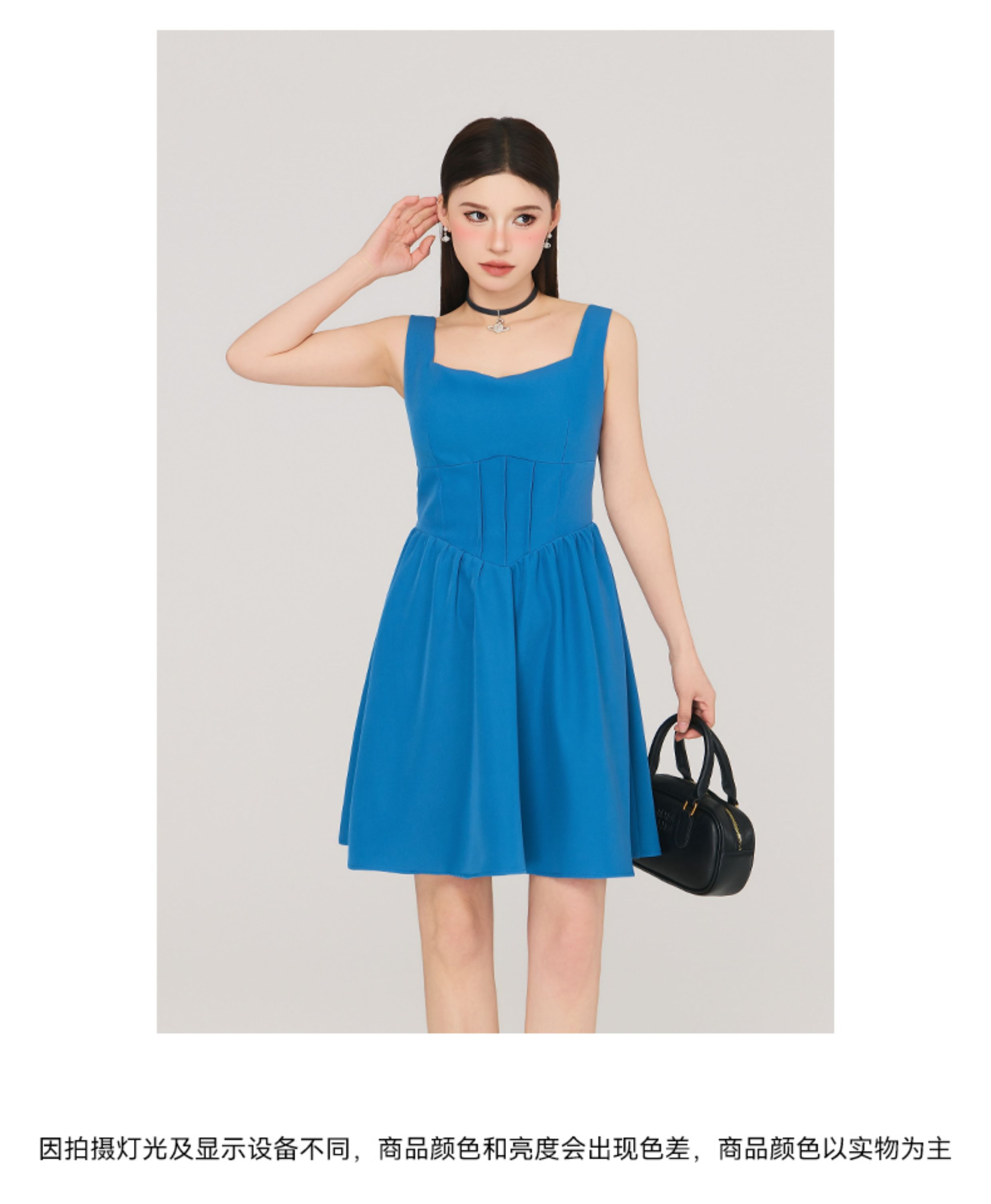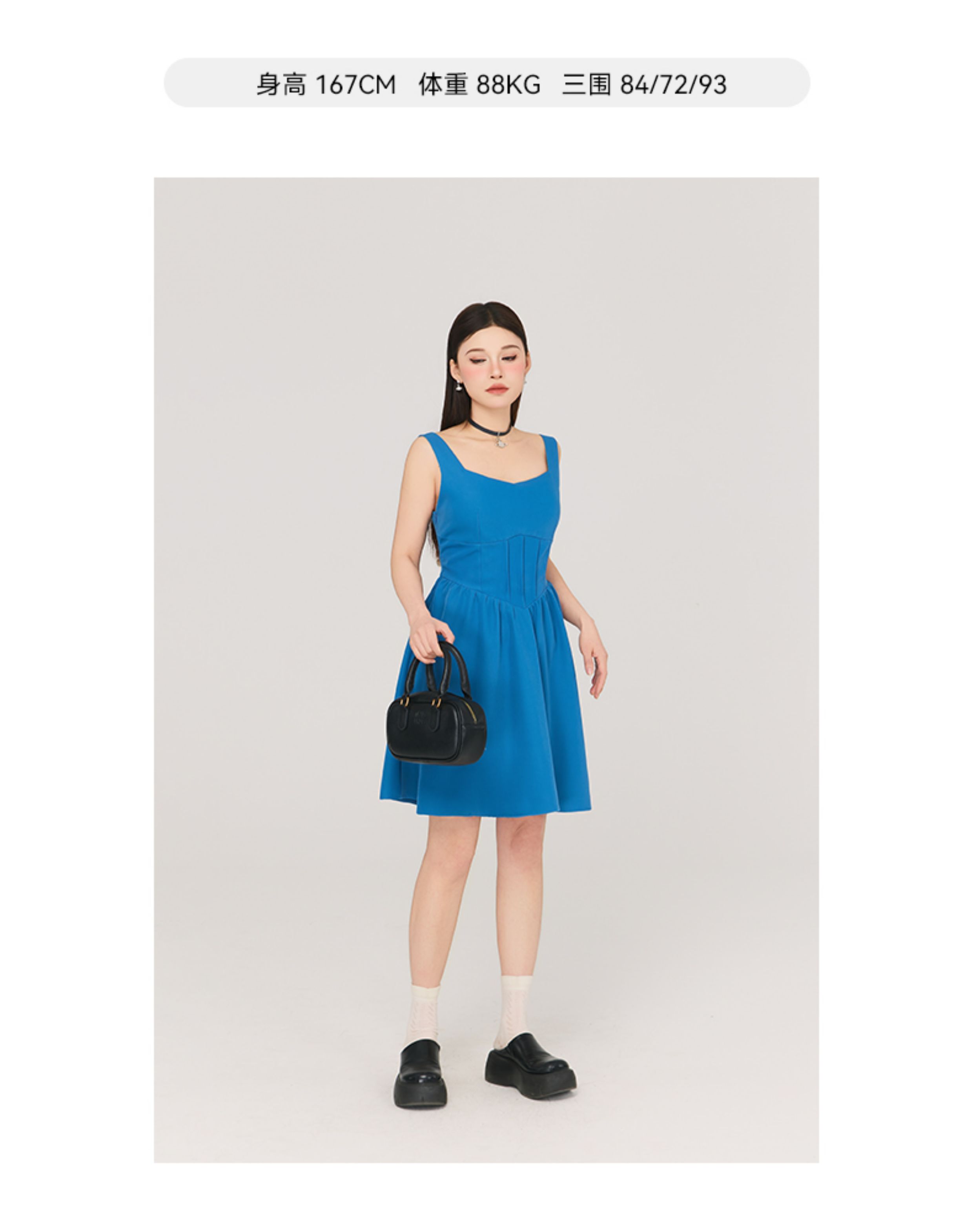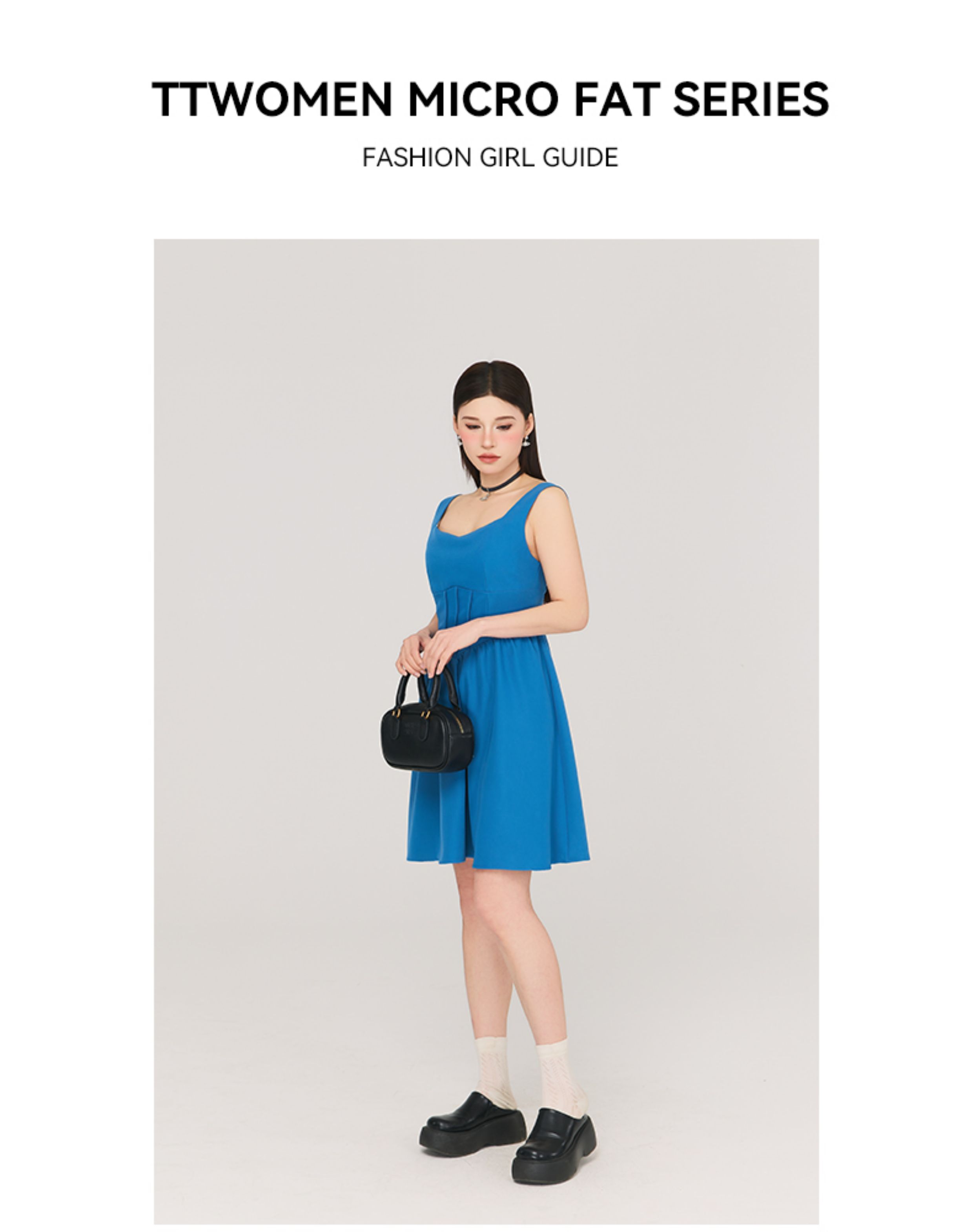 吊帶連衣裙女夏2025新款大碼胖mm藍色收腰巨顯瘦a字小個子吊帶裙