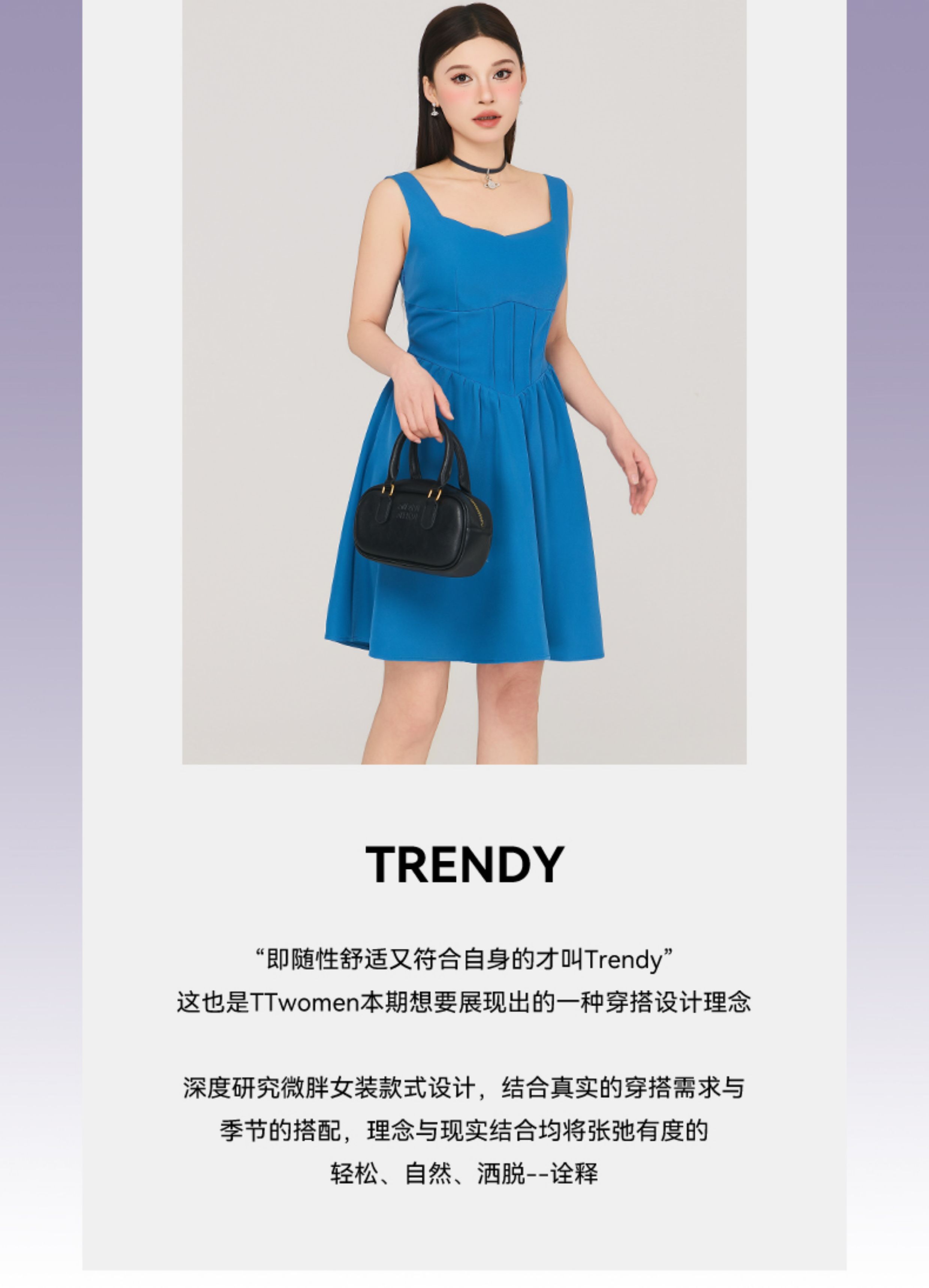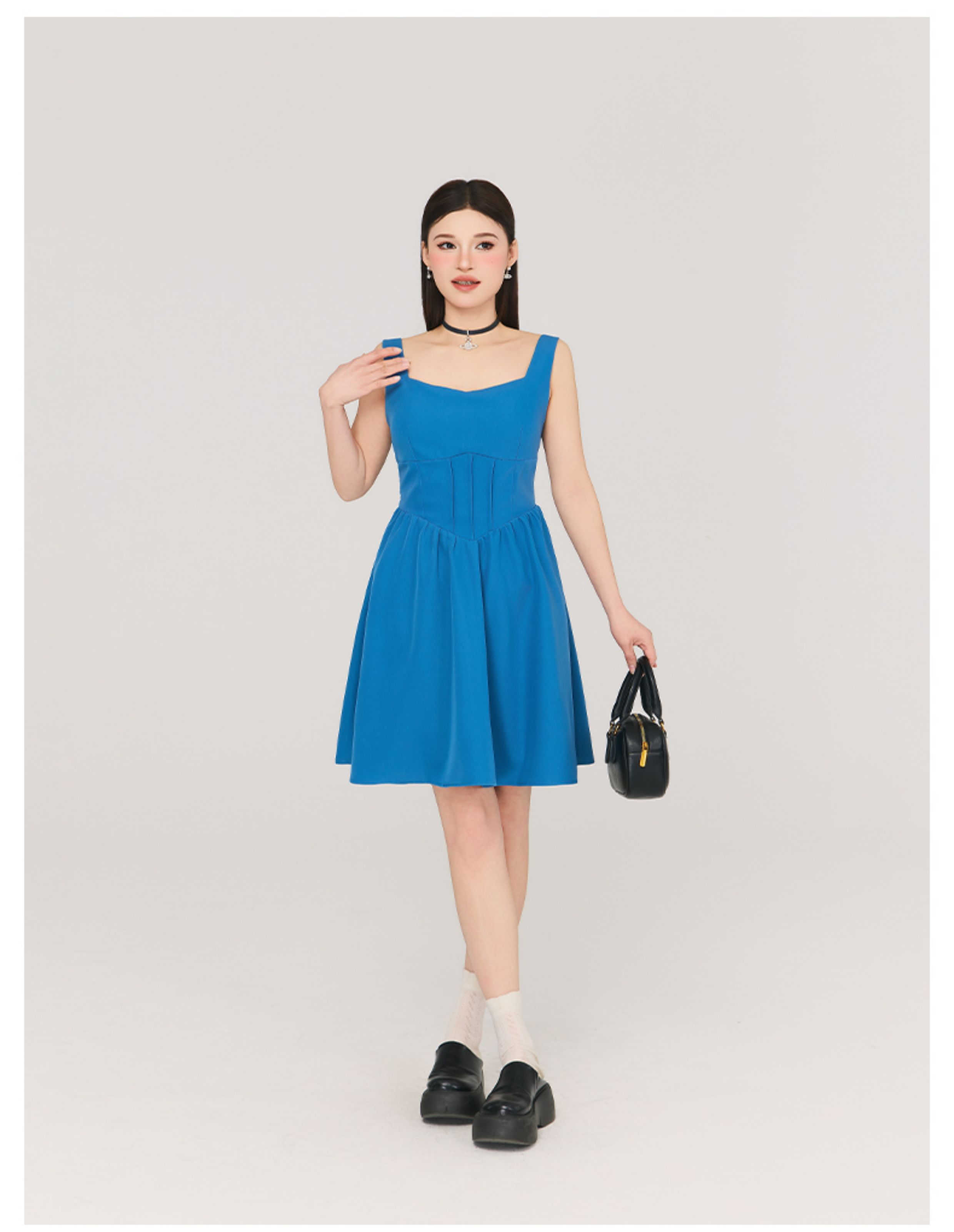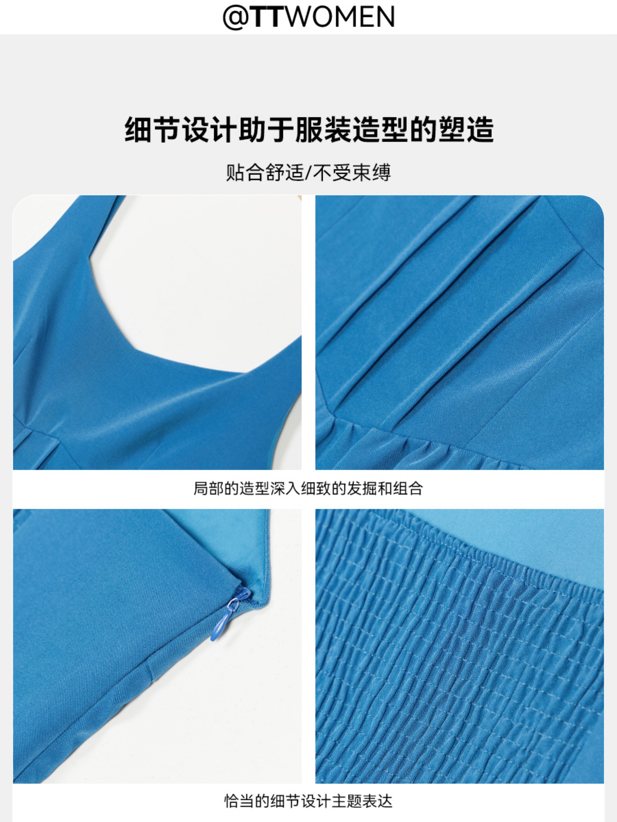 吊帶連衣裙女夏2025新款大碼胖mm藍色收腰巨顯瘦a字小個子吊帶裙