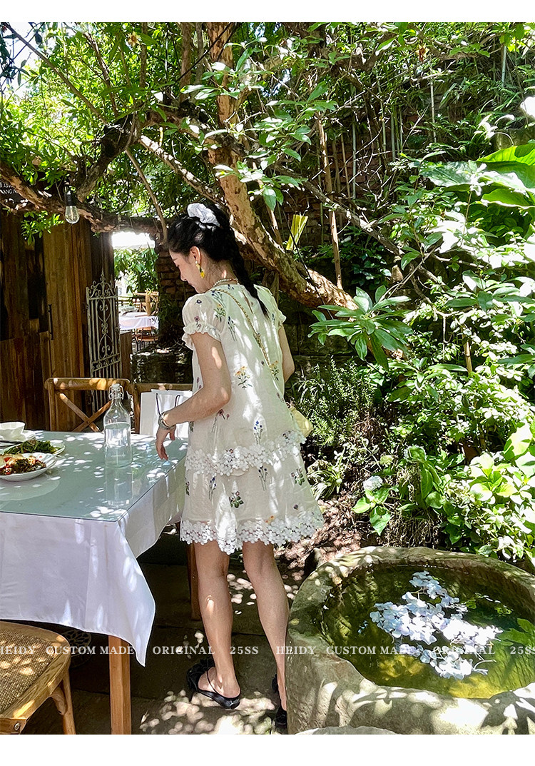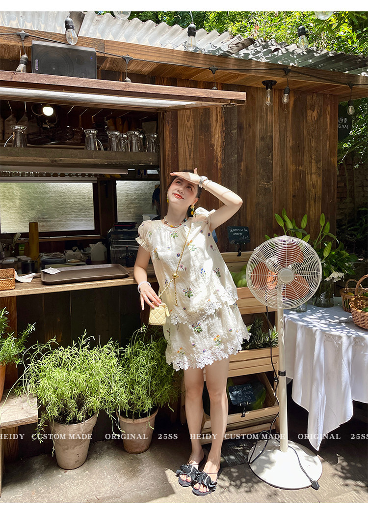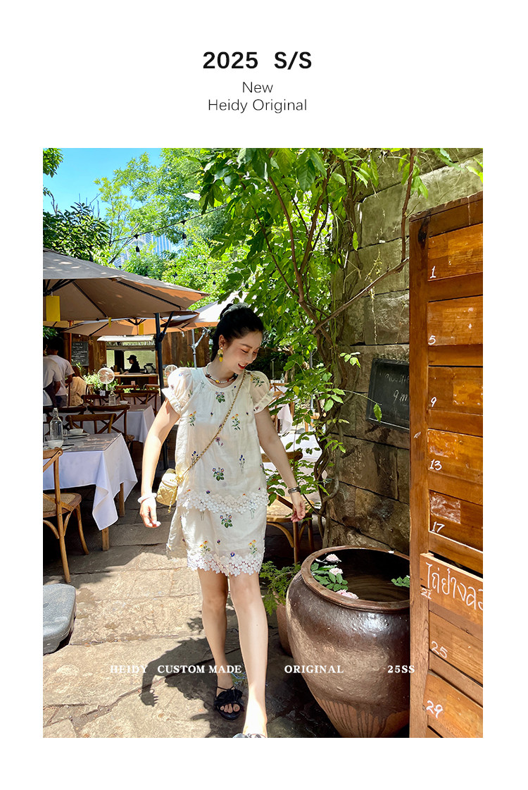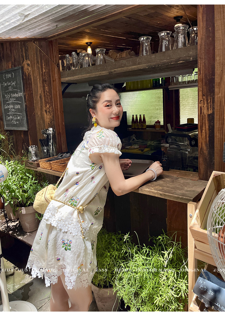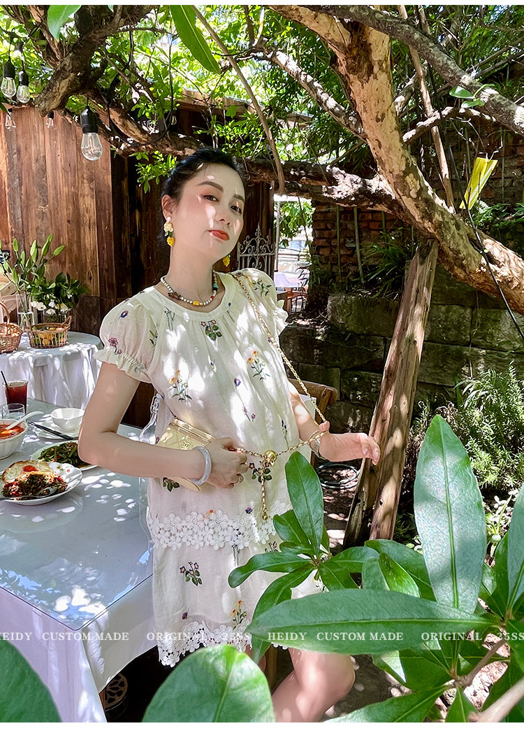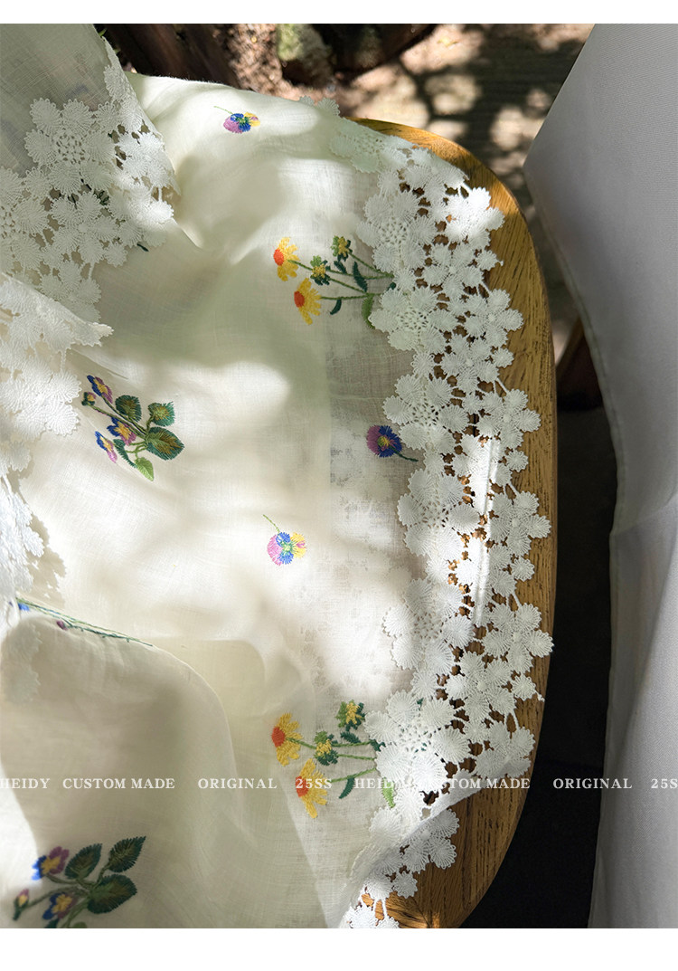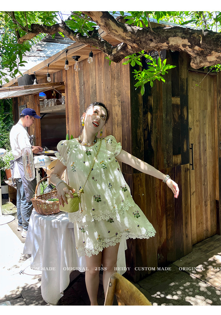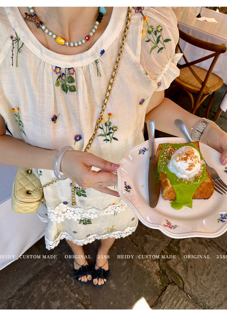 heidy海蒂 100苧麻10000針多色刺綉假兩件雙層連衣裙夏季娃娃裙