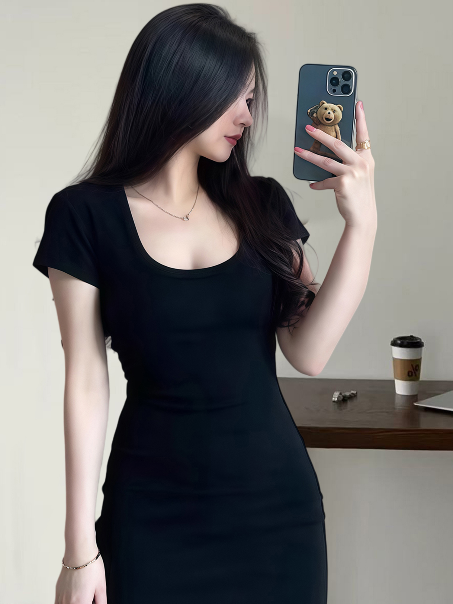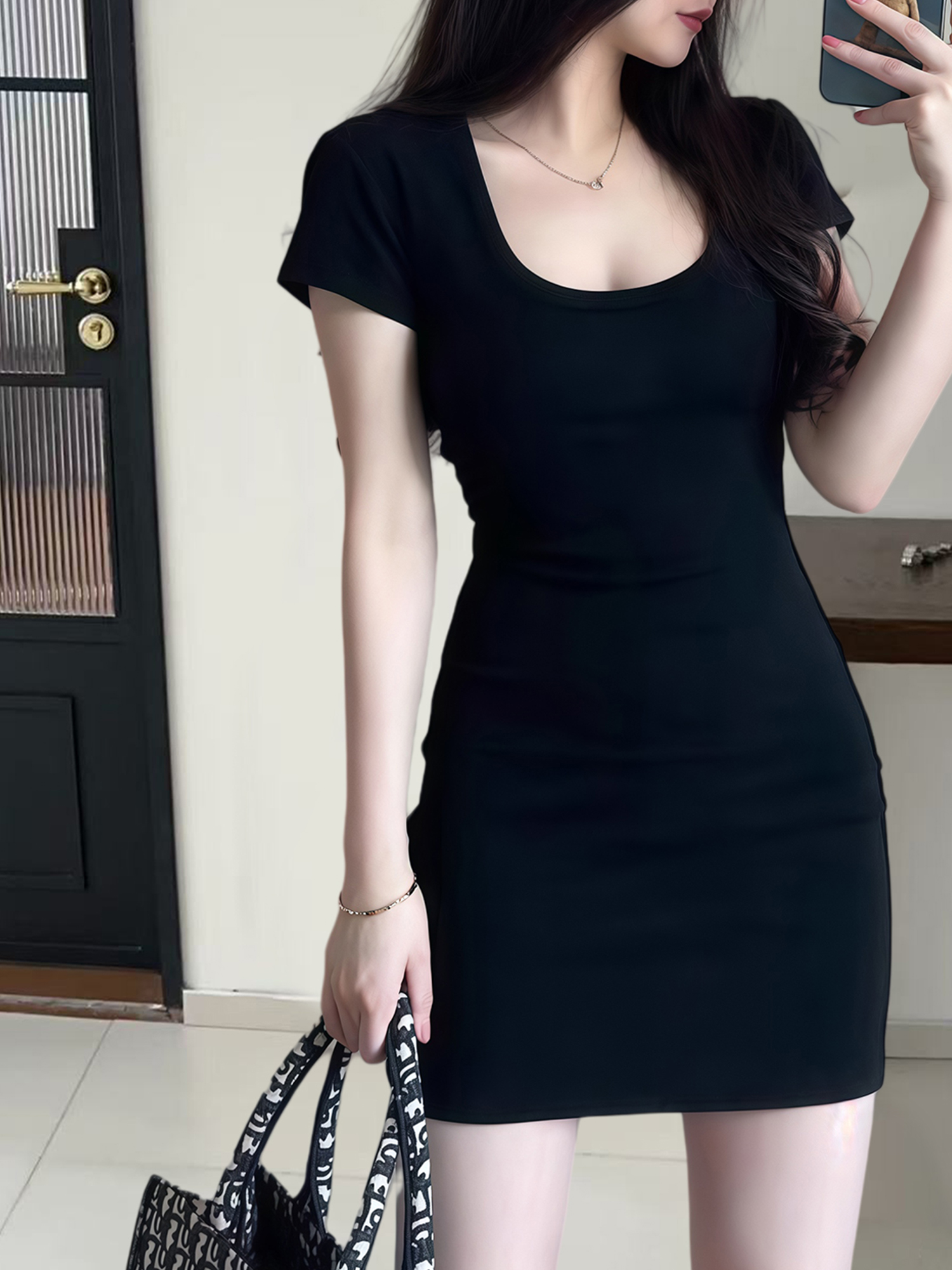 Basic House/百家好純欲風修身包臀連衣裙女2025夏季新款純棉短裙