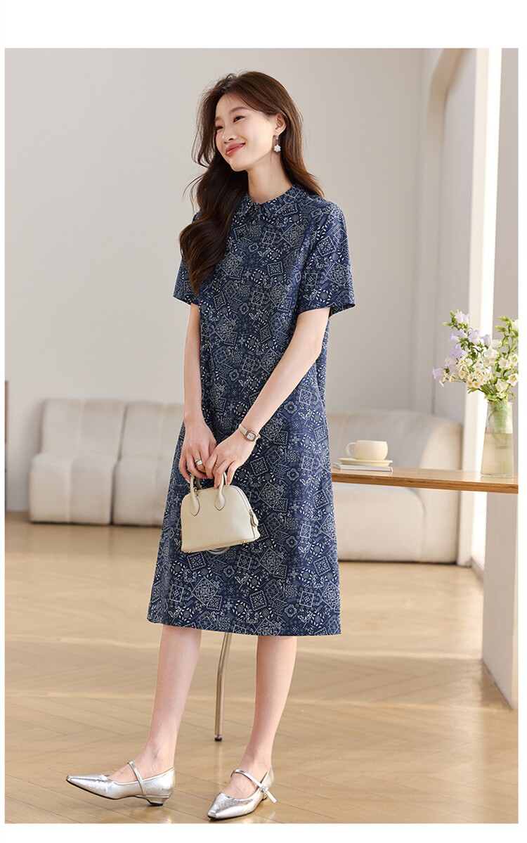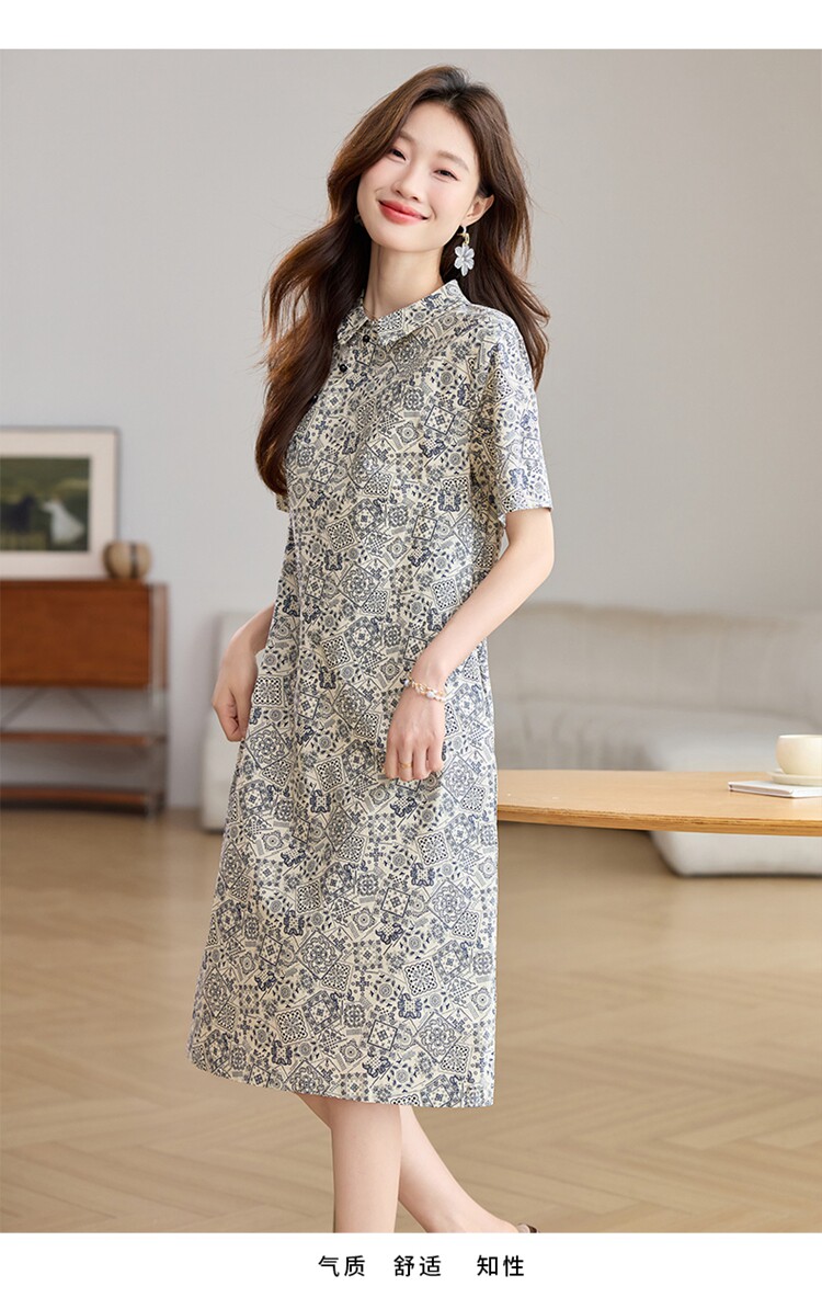 夏季純棉連衣裙2026新款今年流行爆款媽媽遮肚顯瘦新中式碎花裙子