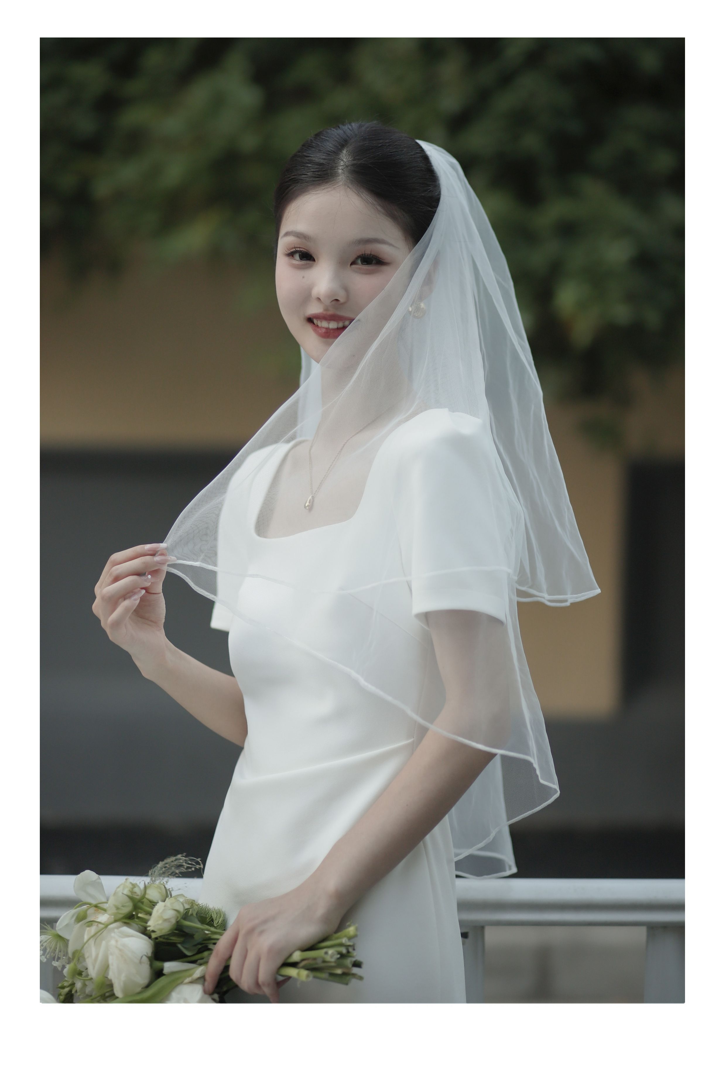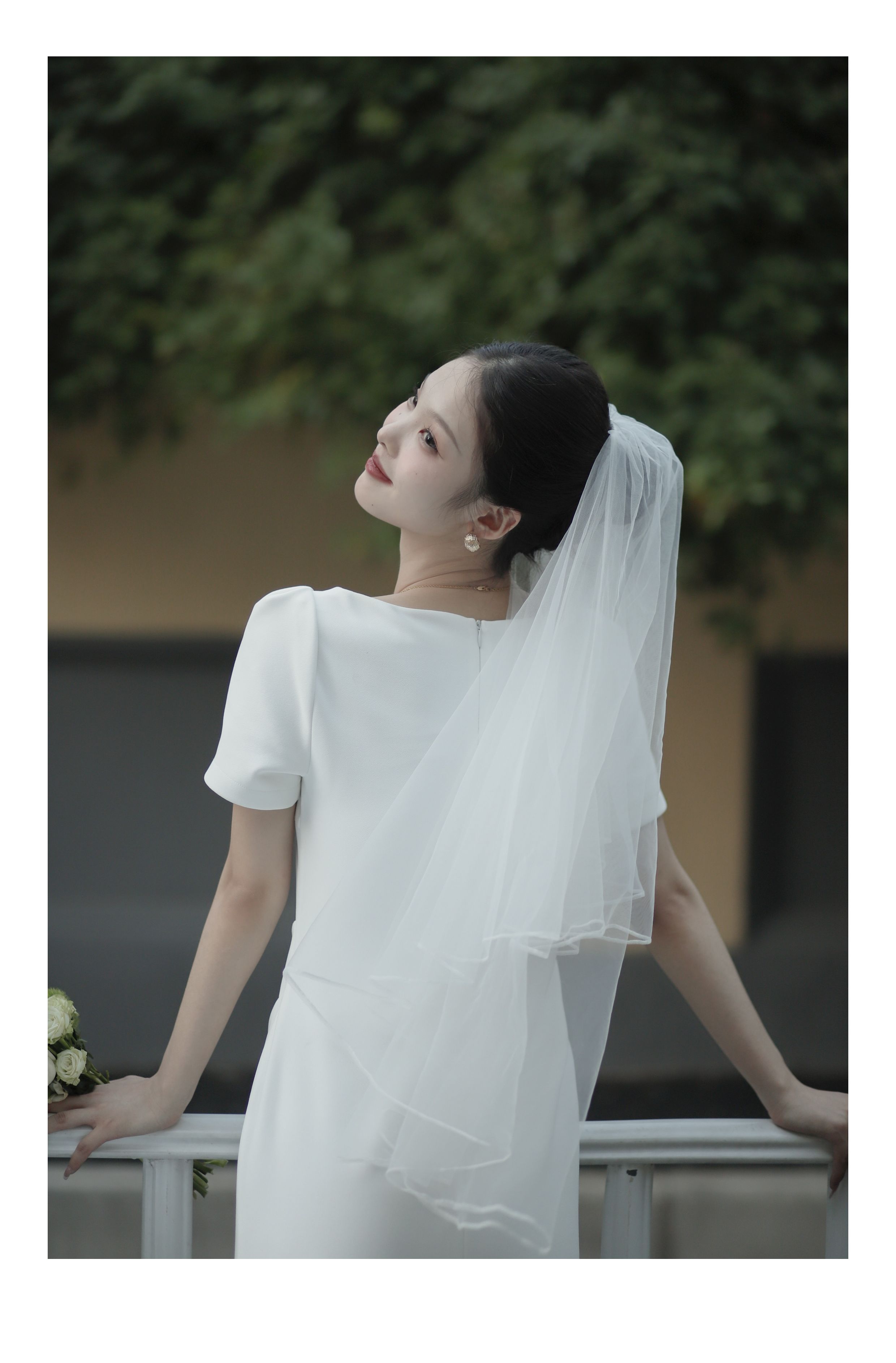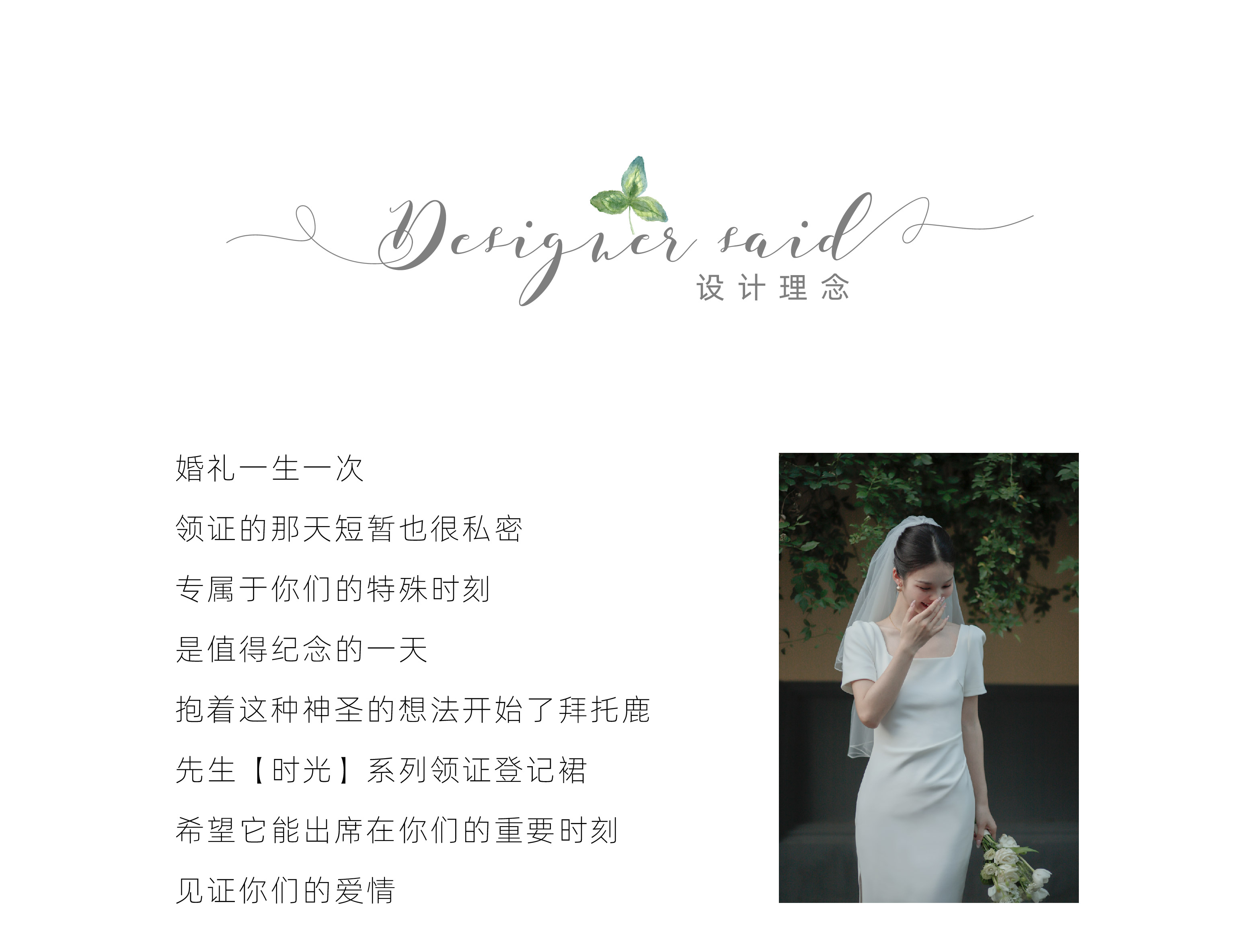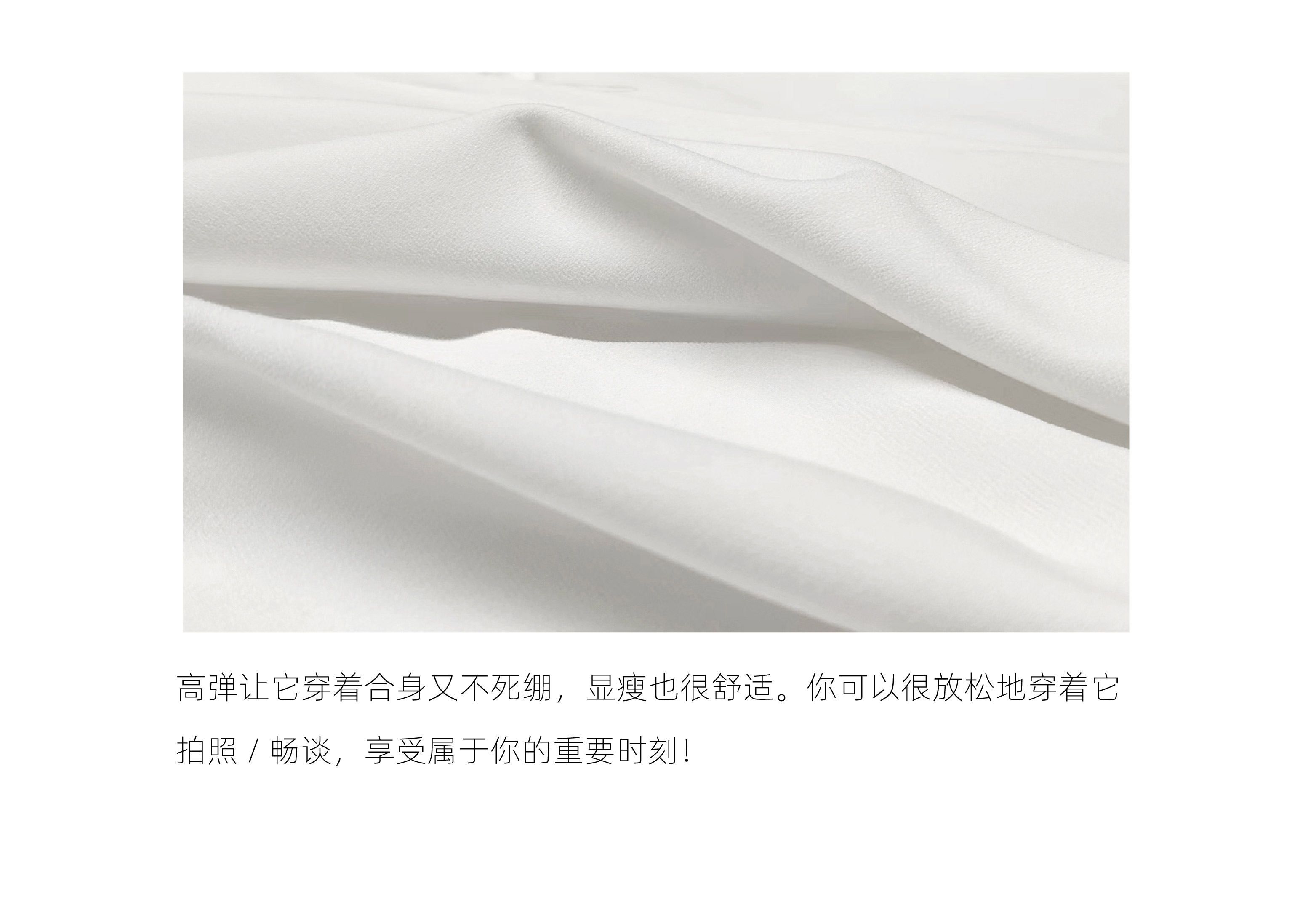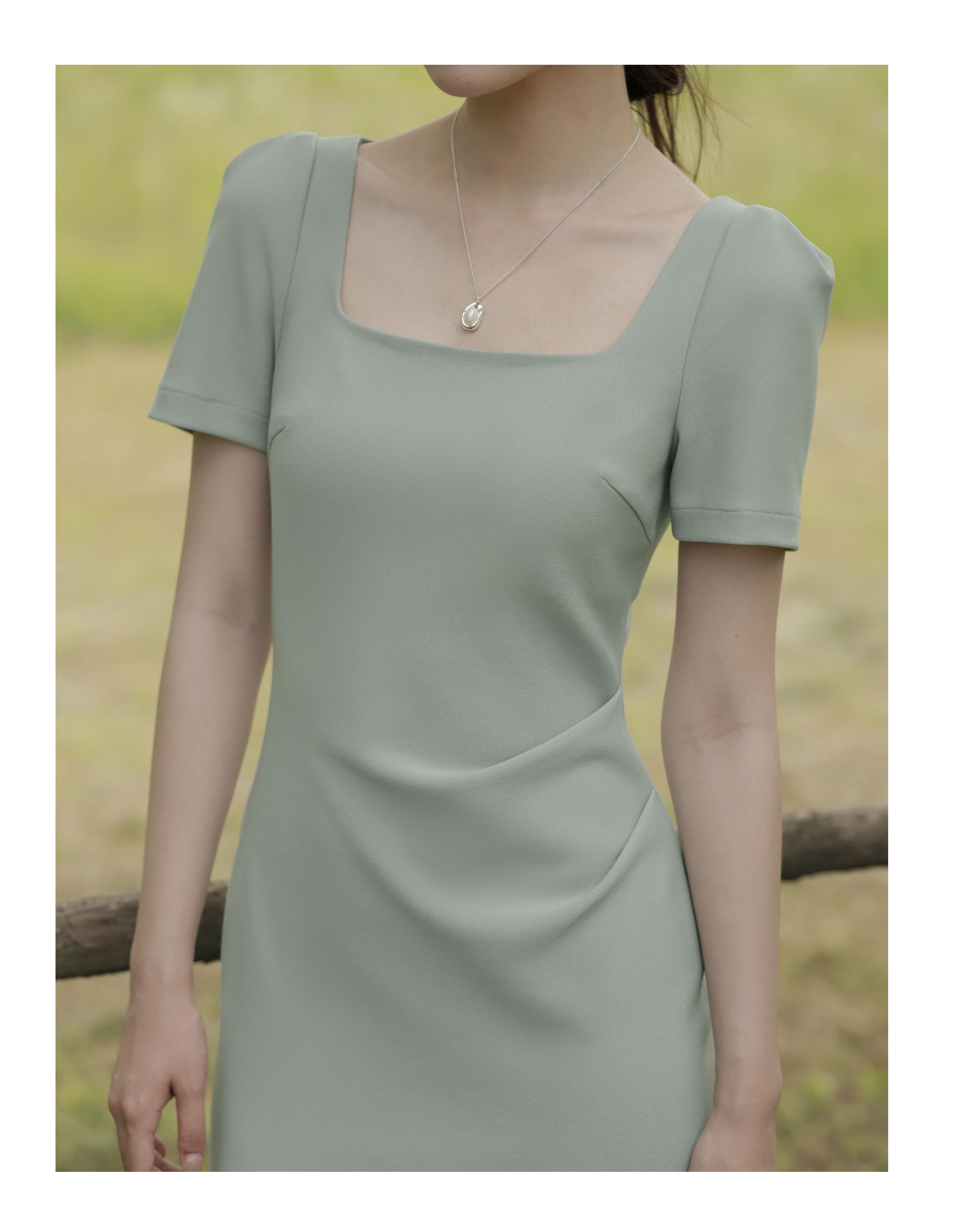 白月|拜托鹿先生法式方領短袖修身彈力長款領証訂婚小禮服連衣裙