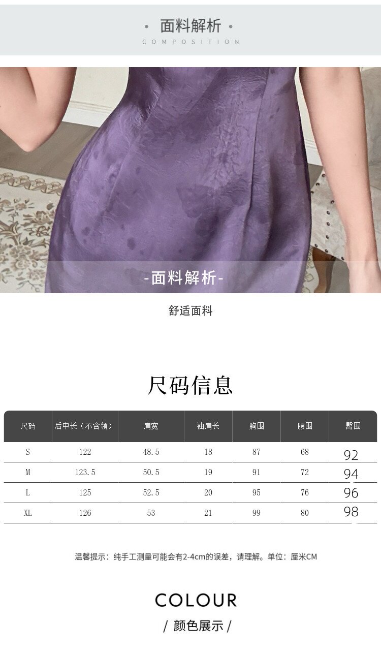紫色緞面改良旗袍女夏季新中式蝴蝶連衣裙子2026新款今年流行爆款